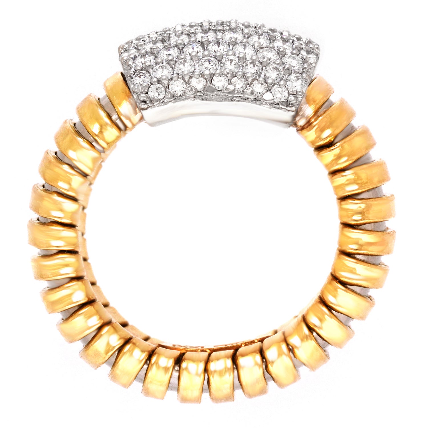 Circa 2000s, 18k, by Micheletto, Italy. This chic tubogas ring features 1.0 carat of brilliant diamonds (G color, VS clarity) set in eighteen karat yellow gold. Tubogas is timeless jewelry design, bold and clean, it has been made famous and perfected by Italian goldsmiths. Micheletto jewelry is made to the highest standards in Milan where the company was founded over a hundred years ago. Excellent condition.