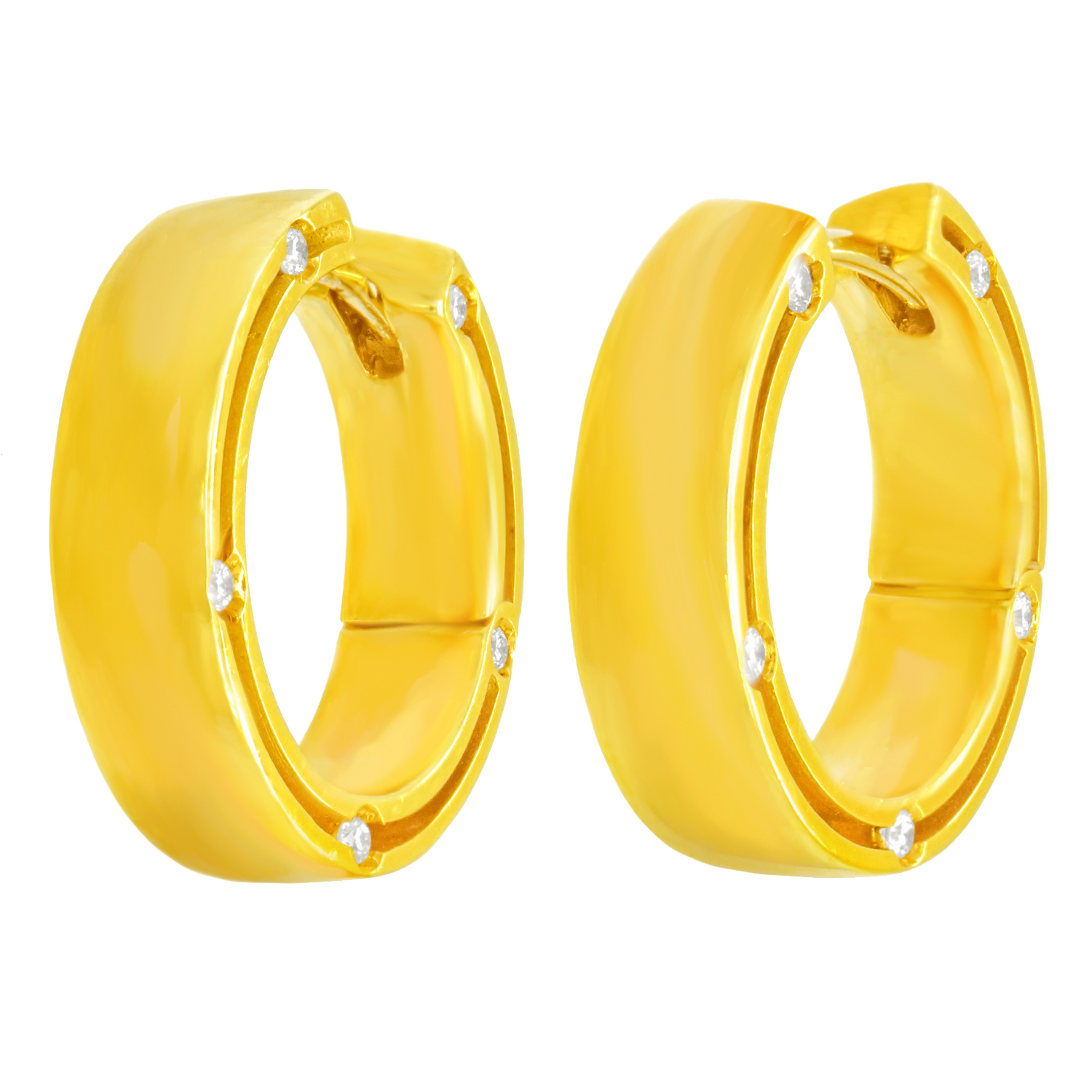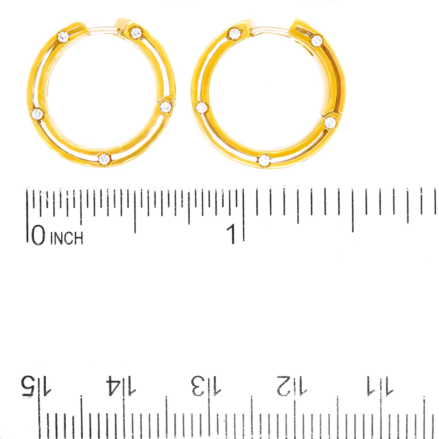 Circa 2000s, 18k, by Damiani, Italy. These sleek hoop earrings are chic contemporary accessories. The size is perfect for everyday. Sublime design, underscored by superb fabrication and brilliant white diamonds - that's the story Damiani is known for. Excellent condition.