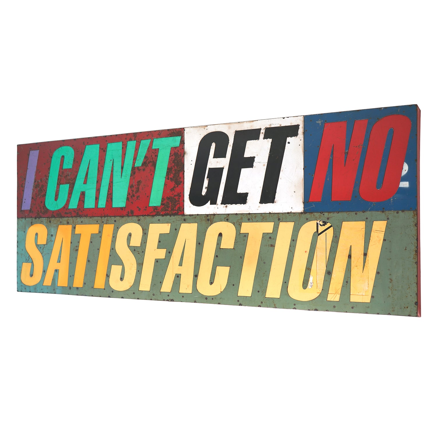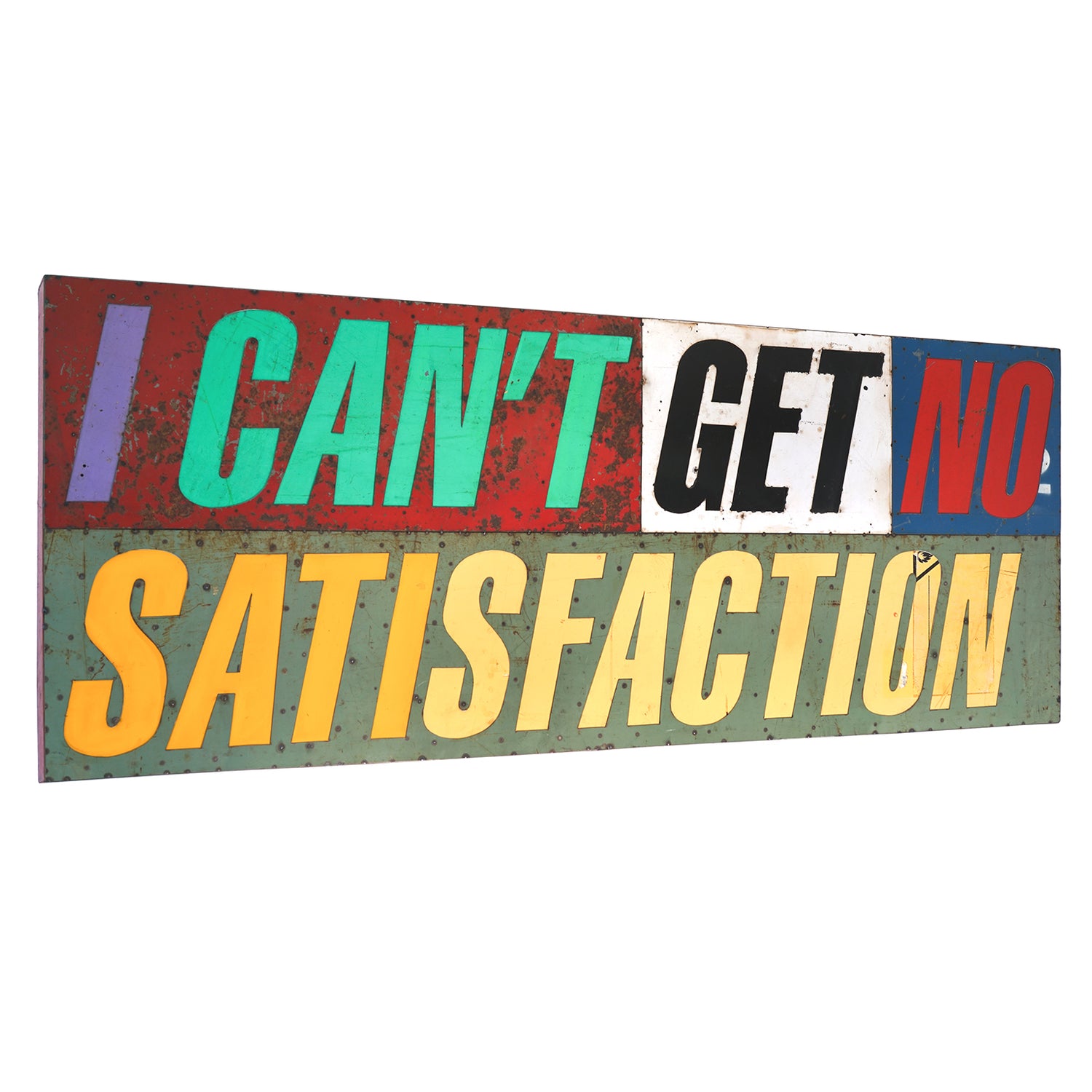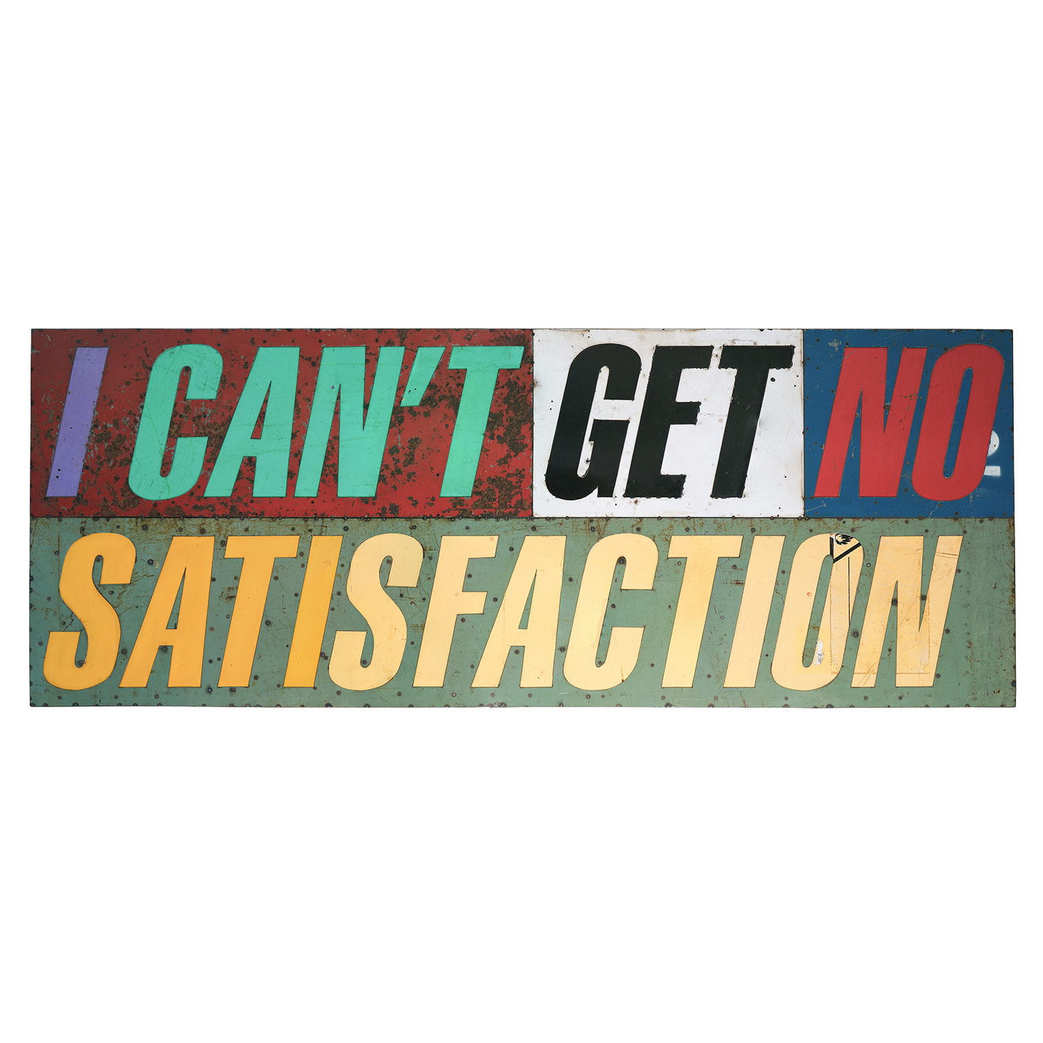 Circa 2011, by David Buckingham, American.  Upcycled painted street sign pieces. From his famed series of sign art featuring song quotes, this is one of his best. The style of the sign is central to his main body of work and the iconic Rolling Stones quote makes it a rare find.  Excellent condition.