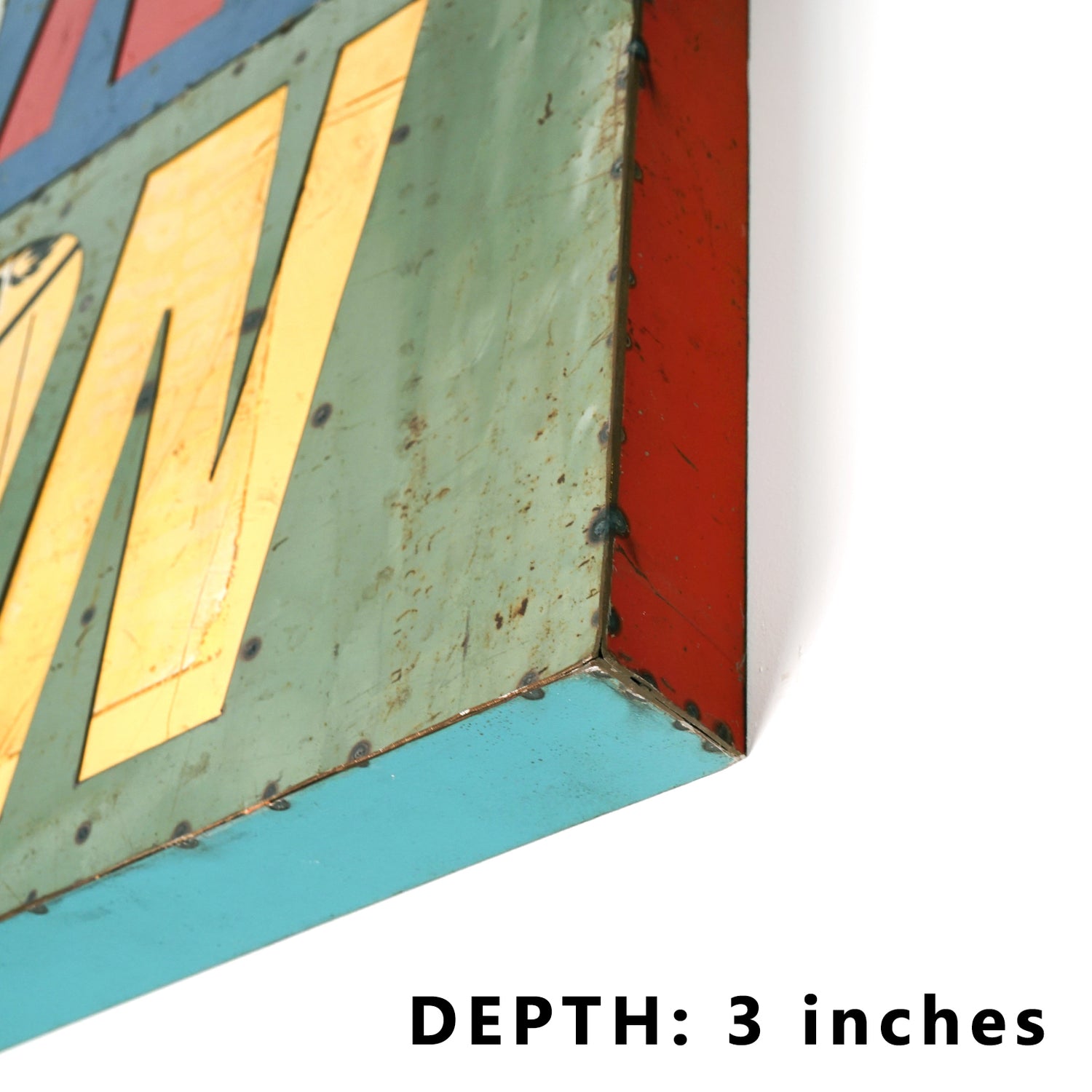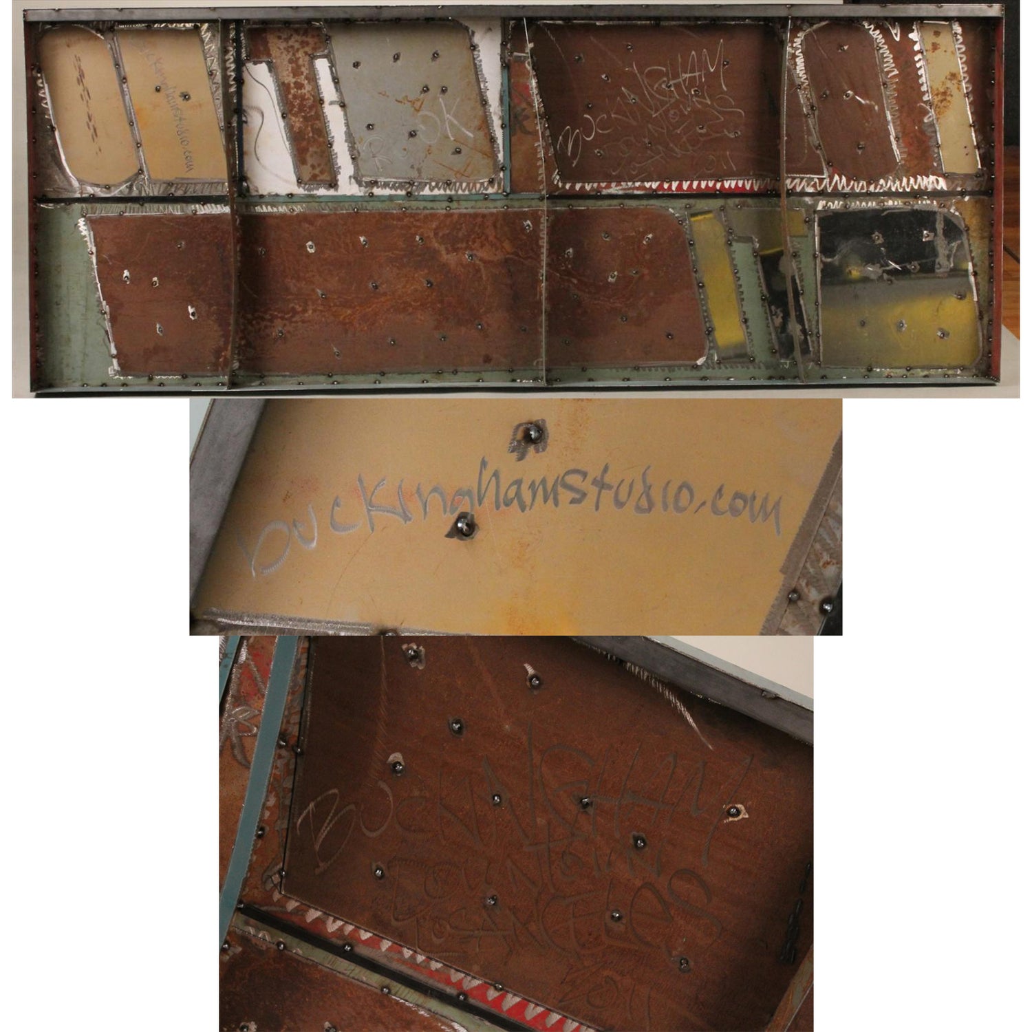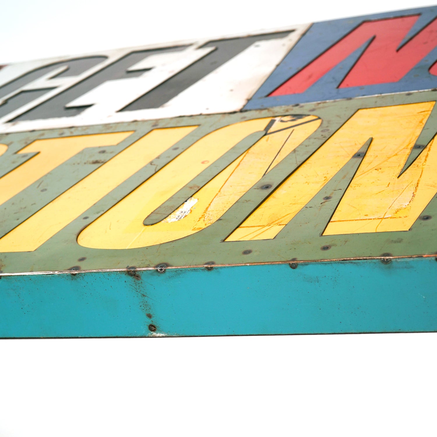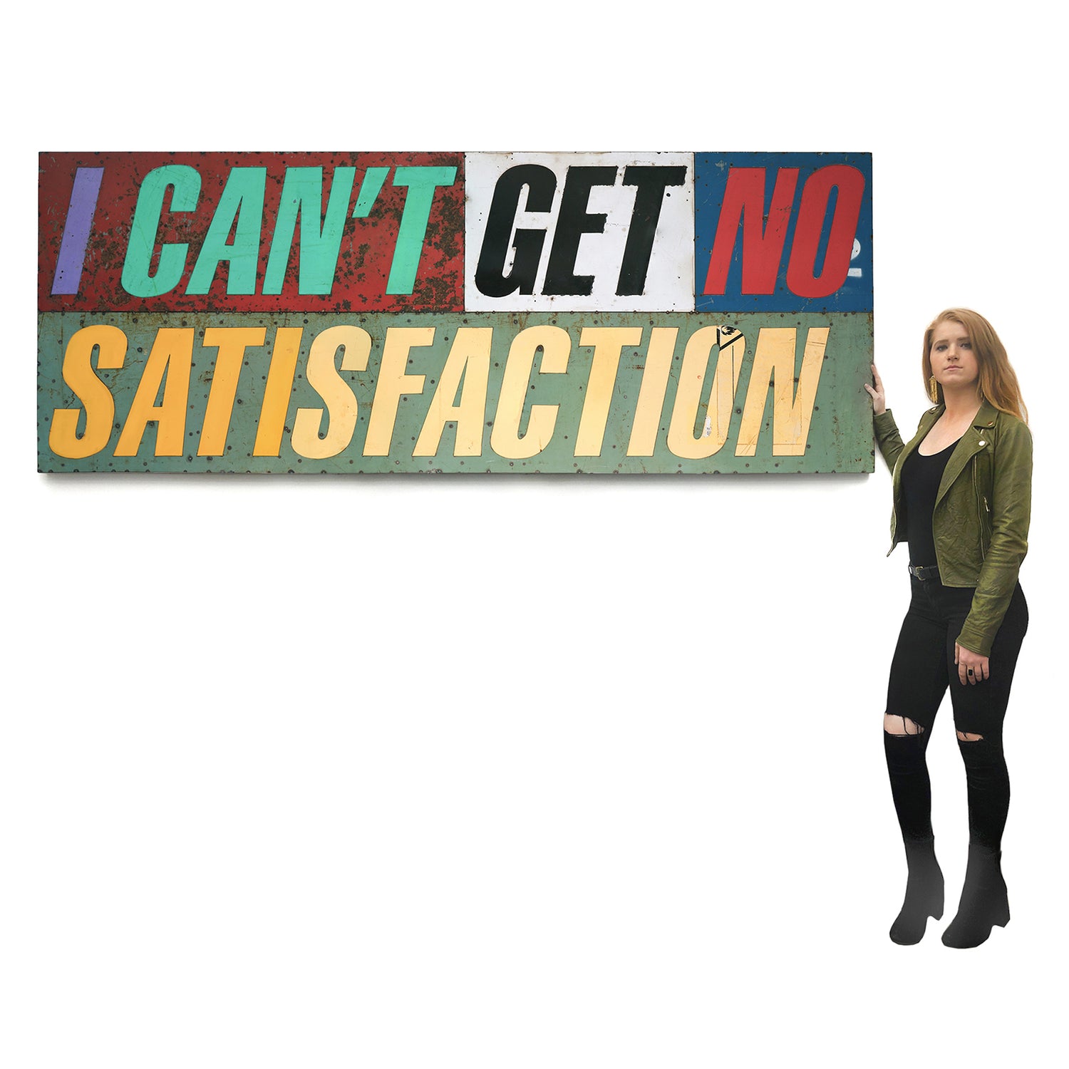 Circa 2011, by David Buckingham, American.  Upcycled painted street sign pieces. From his famed series of sign art featuring song quotes, this is one of his best. The style of the sign is central to his main body of work and the iconic Rolling Stones quote makes it a rare find.  Excellent condition.