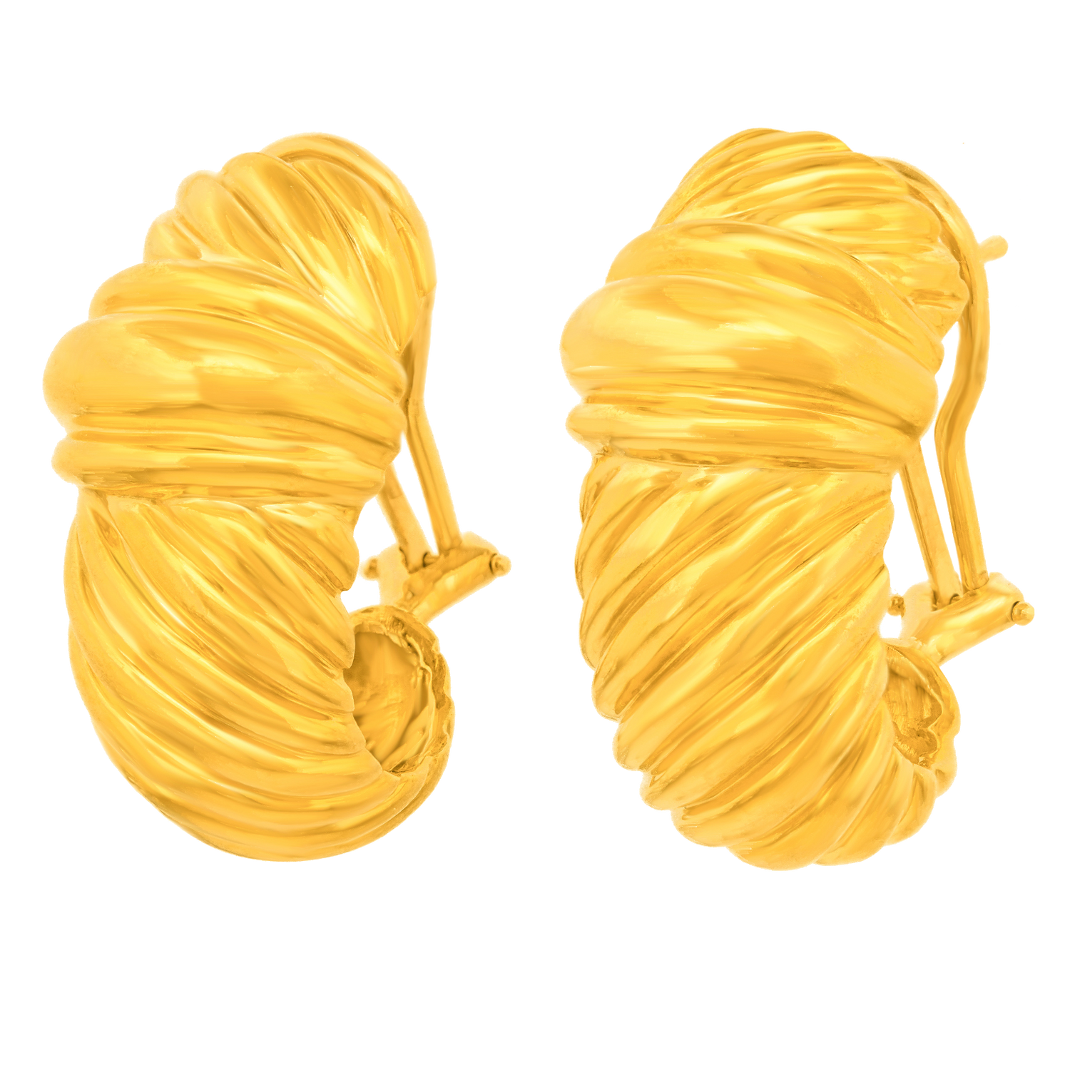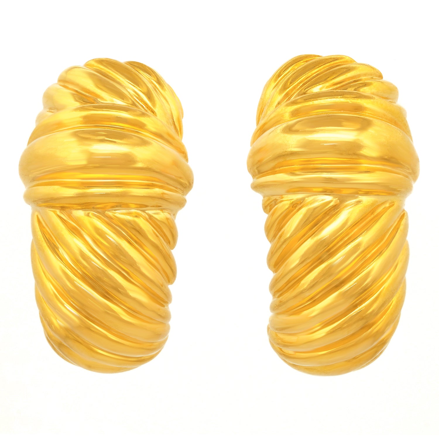 Circa 1990s, 18k, by David Yurman, American. Tasteful and tailored (David Yurman's sweet spot), these are your goes everywhere, does everything yellow gold earrings!  Quality fabrication completes the picture. Excellent condition.