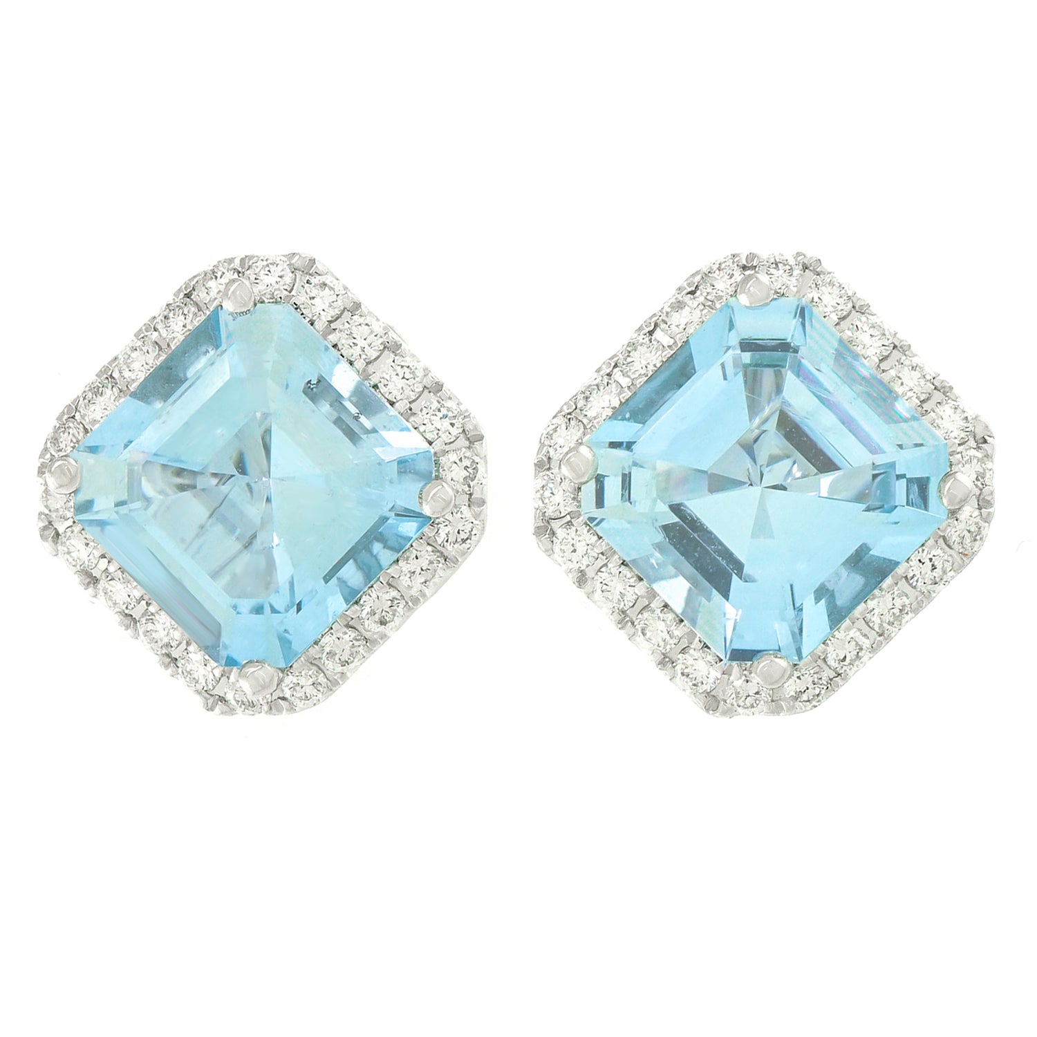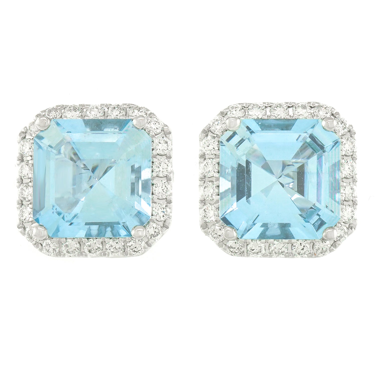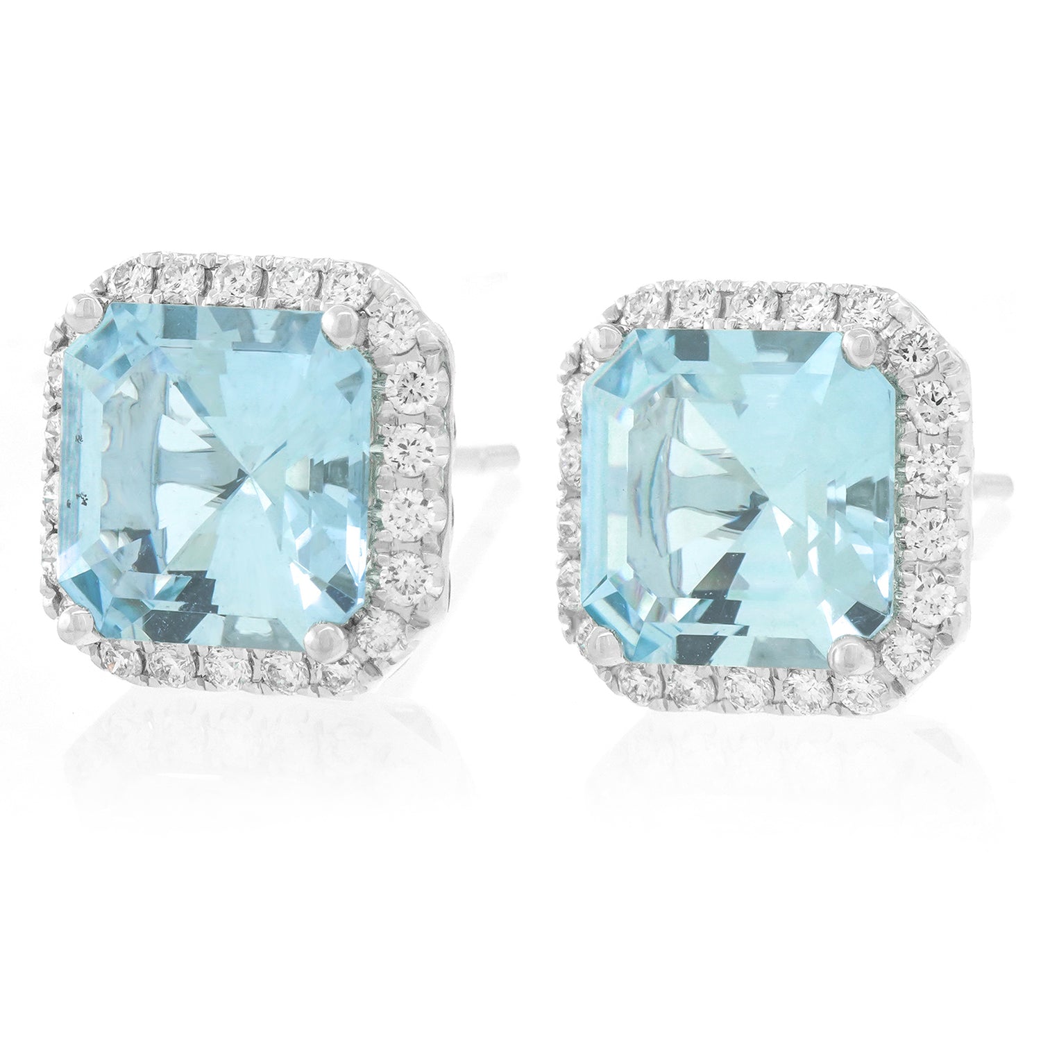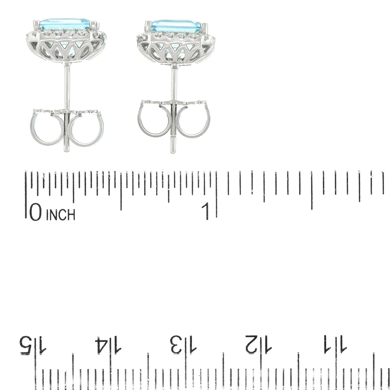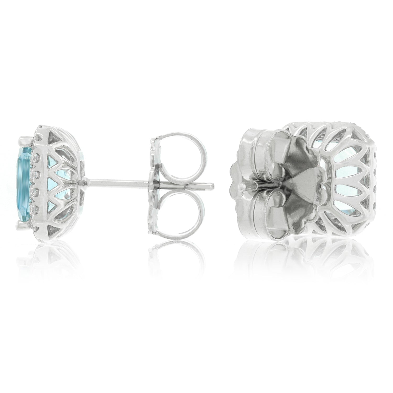 Circa 2000s, 14k, American. Classically elegant, these 14k white gold earrings feature 4.0 carats of vibrant delicately-hued blue aquamarine, perfectly balanced by .50 carats of brilliant white diamonds (G color, VS clarity). Finely fashioned and fabulously versatile, they are in excellent condition.