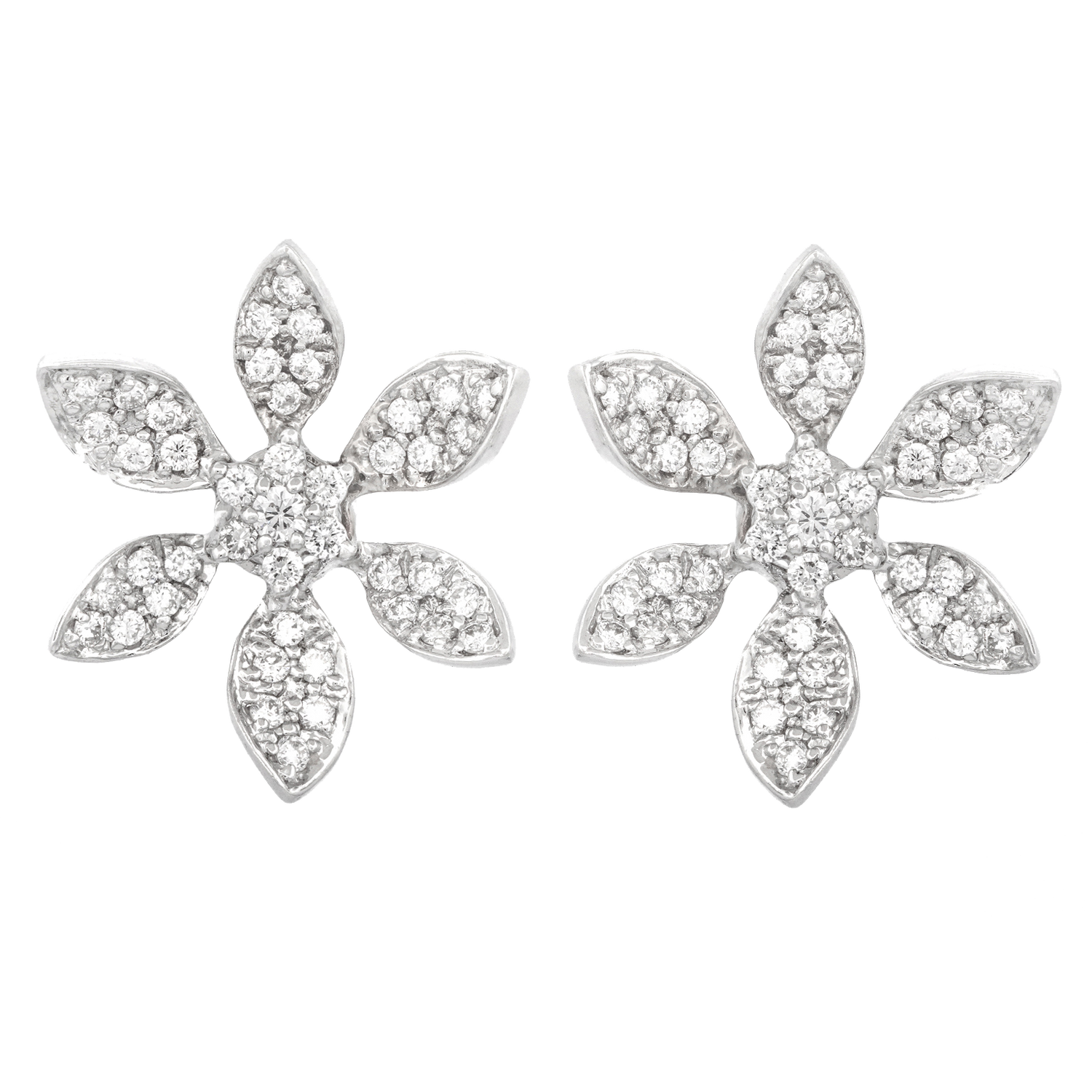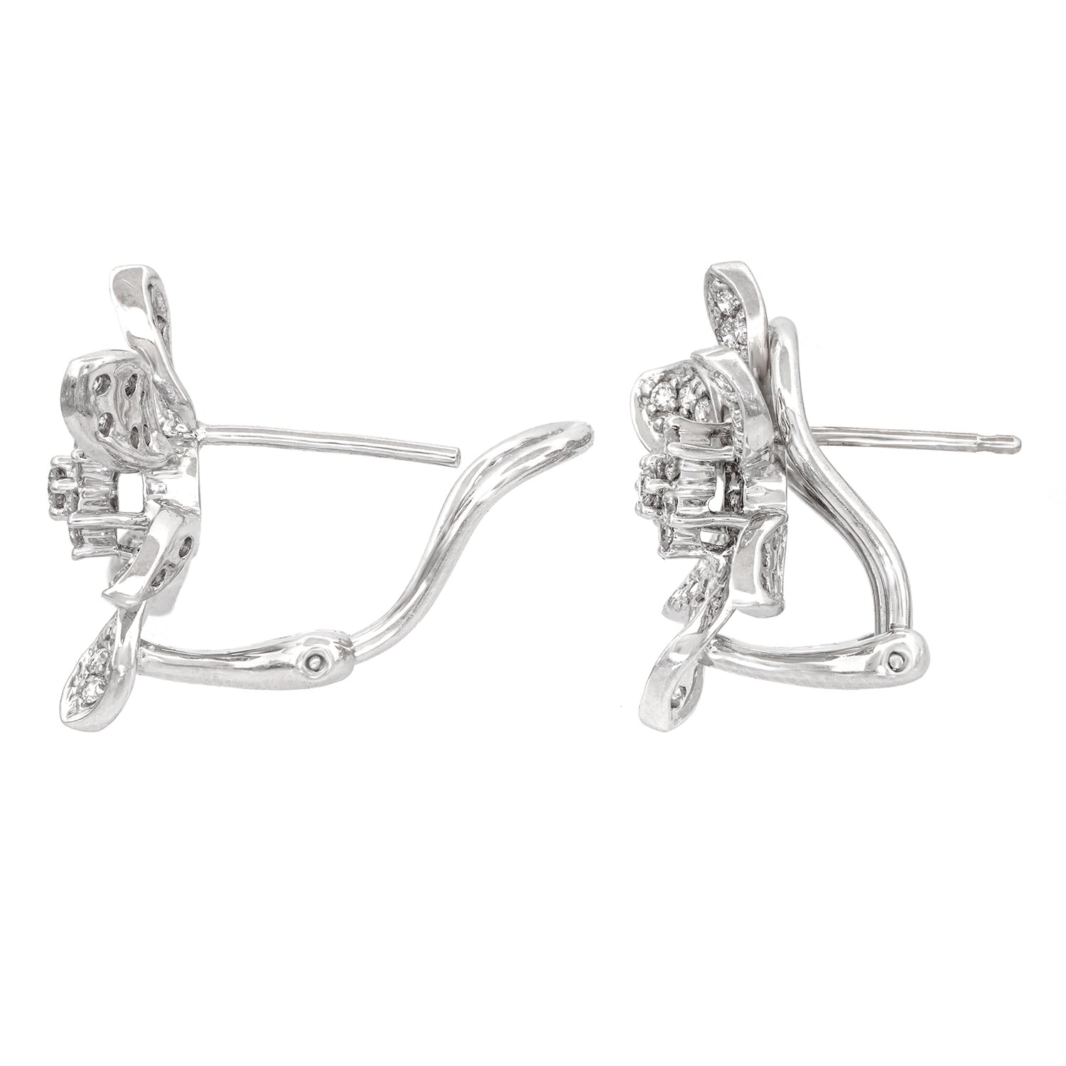 Circa 2000s, 14k. These charming flower earrings are all about the 1.0 carats of fine white extra sparkly diamonds (H color, SI1 clarity). Day or night, the look is playful glamour. Excellent condition.