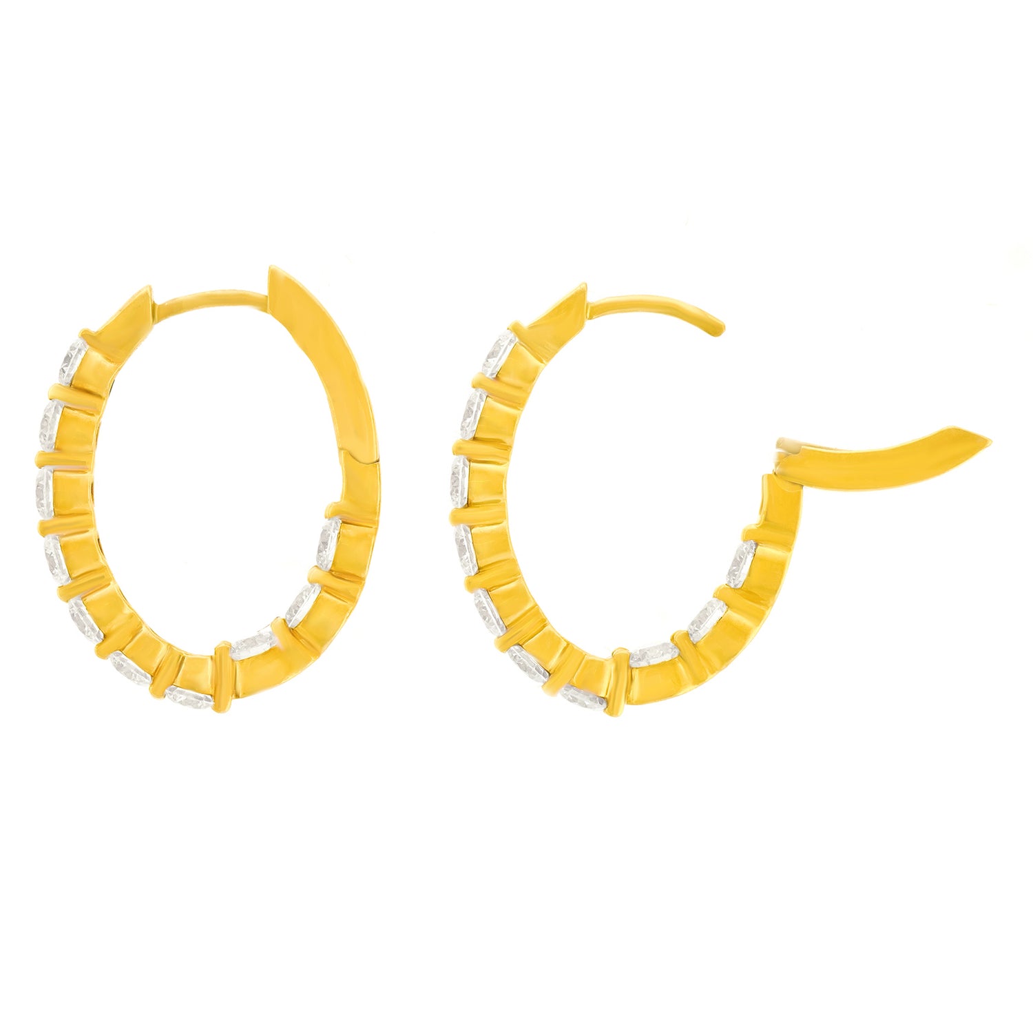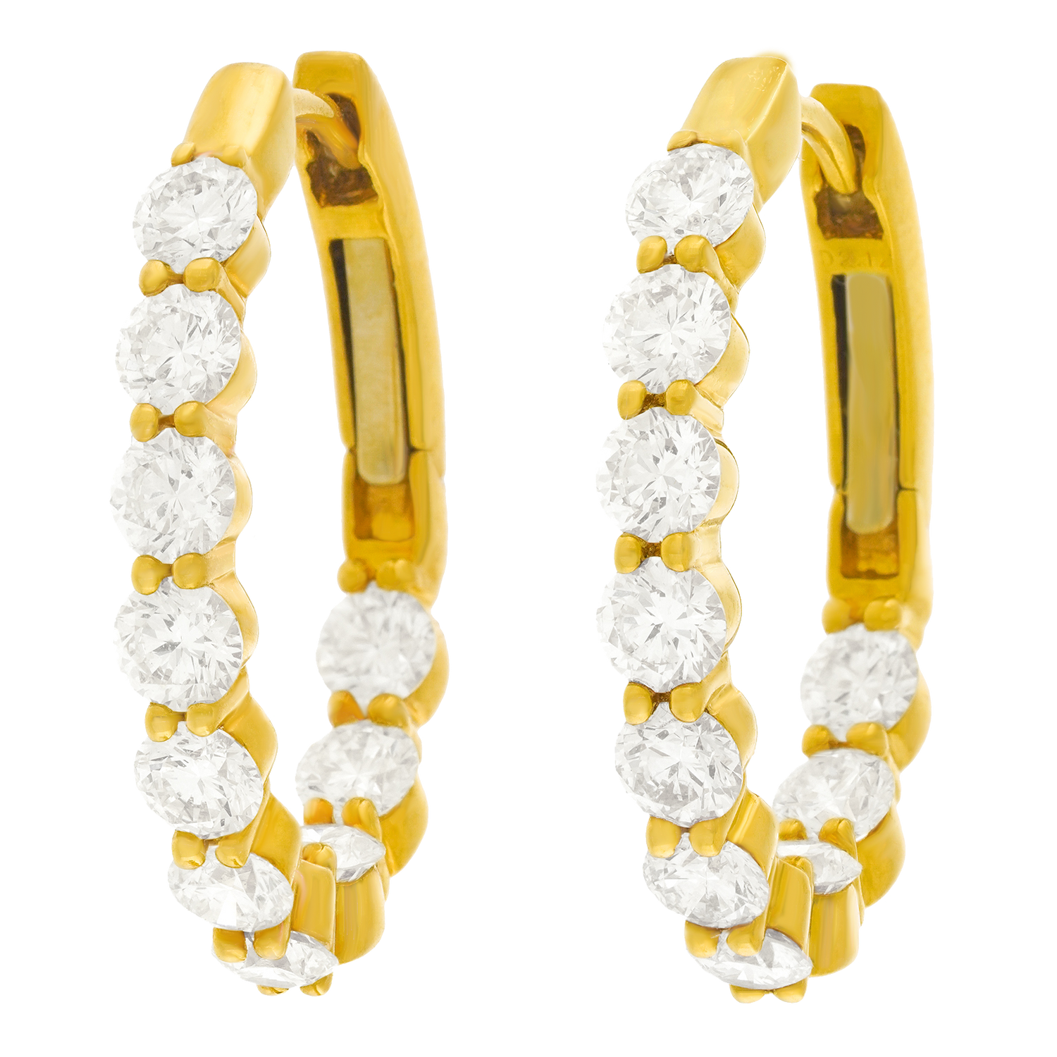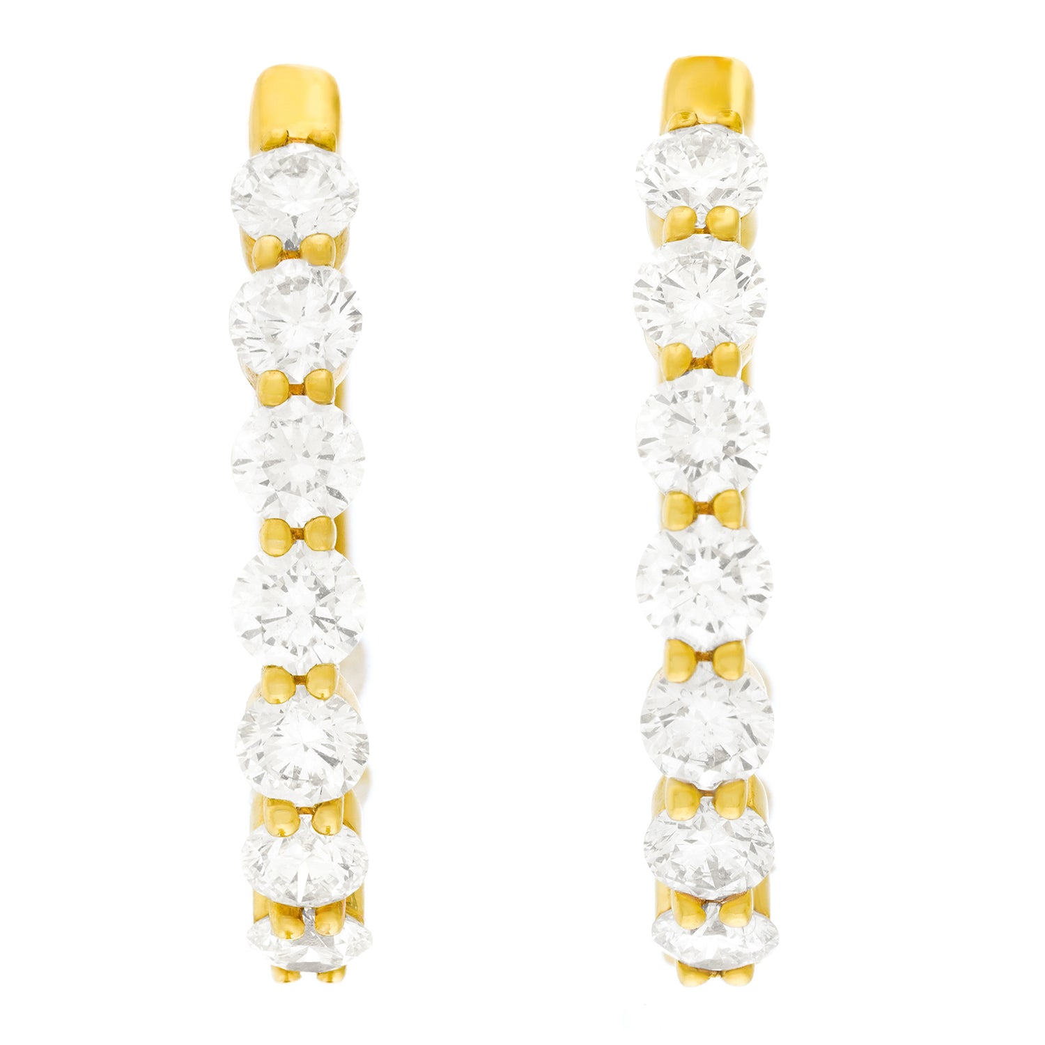 Circa 2000s, 18k, American.  A stylish twist on a classic, these refined 18k yellow gold earrings have sleek, sophisticated, oval silhouettes. Perfect in scale and set with 2.12 carats of superb diamonds (G color, VS2 clarity), they effortlessly dress up or down. Exquisitely made in 18k yellow gold, they are in excellent condition.