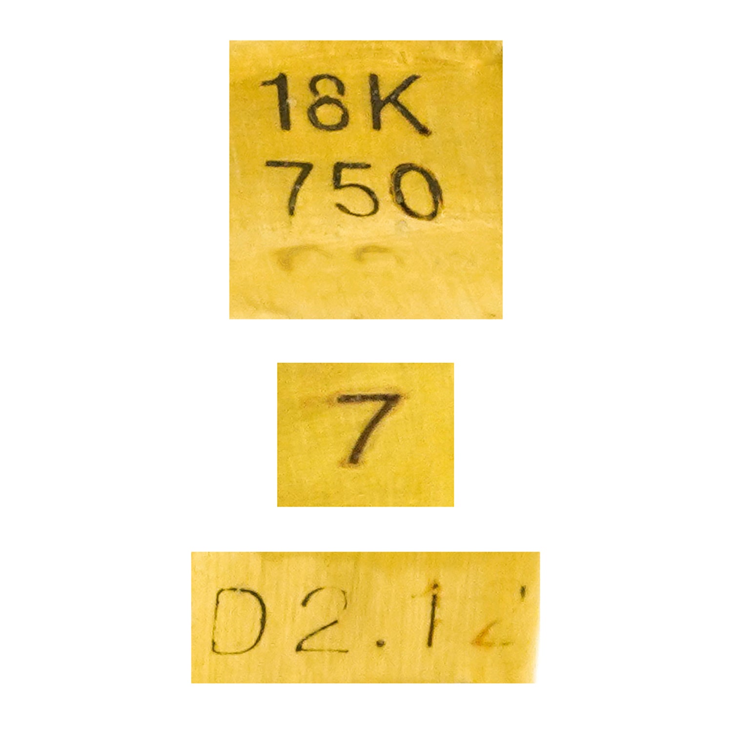 Hallmarks: 18k, 750, 7, D2.12 (diamond weight) and rubbed maker's mark