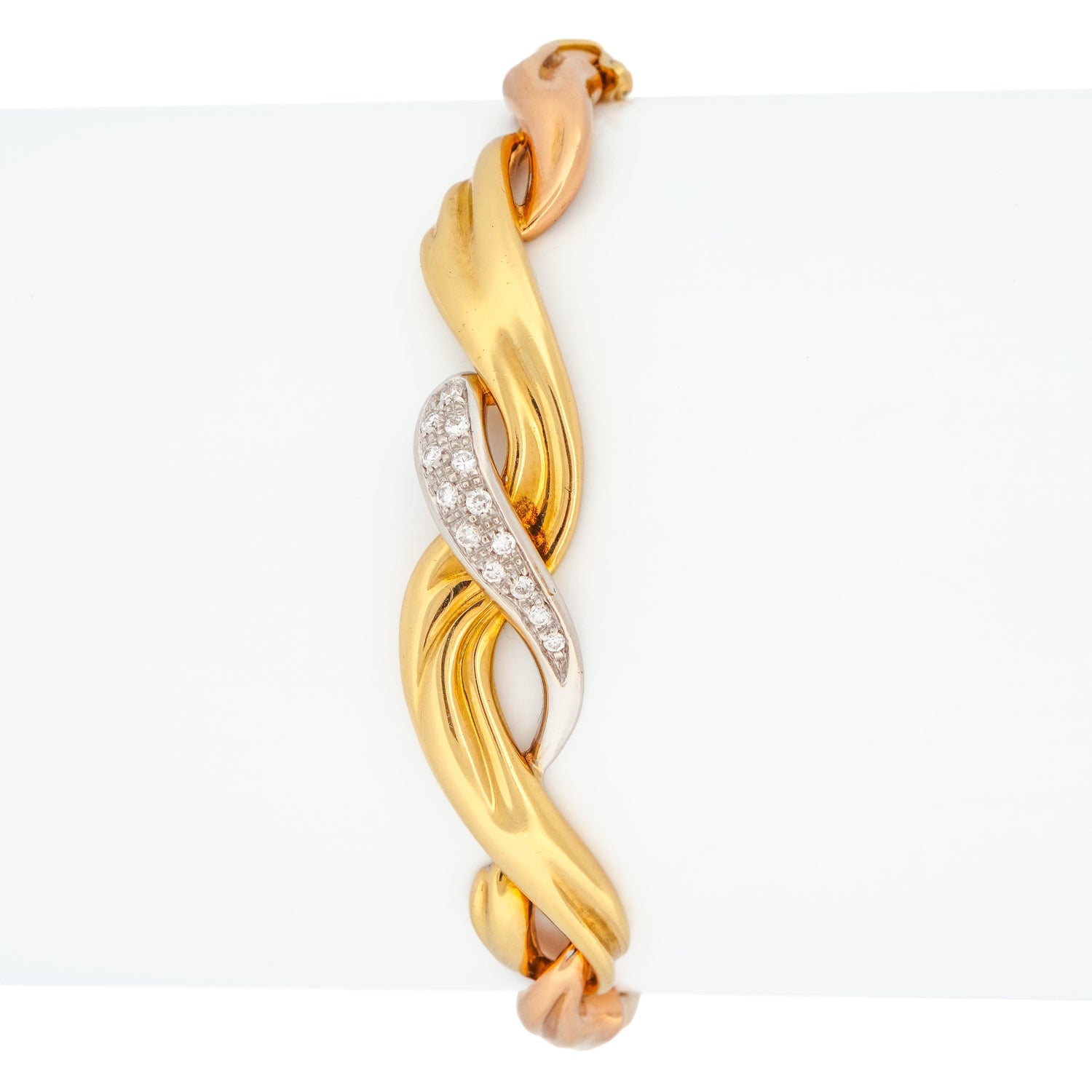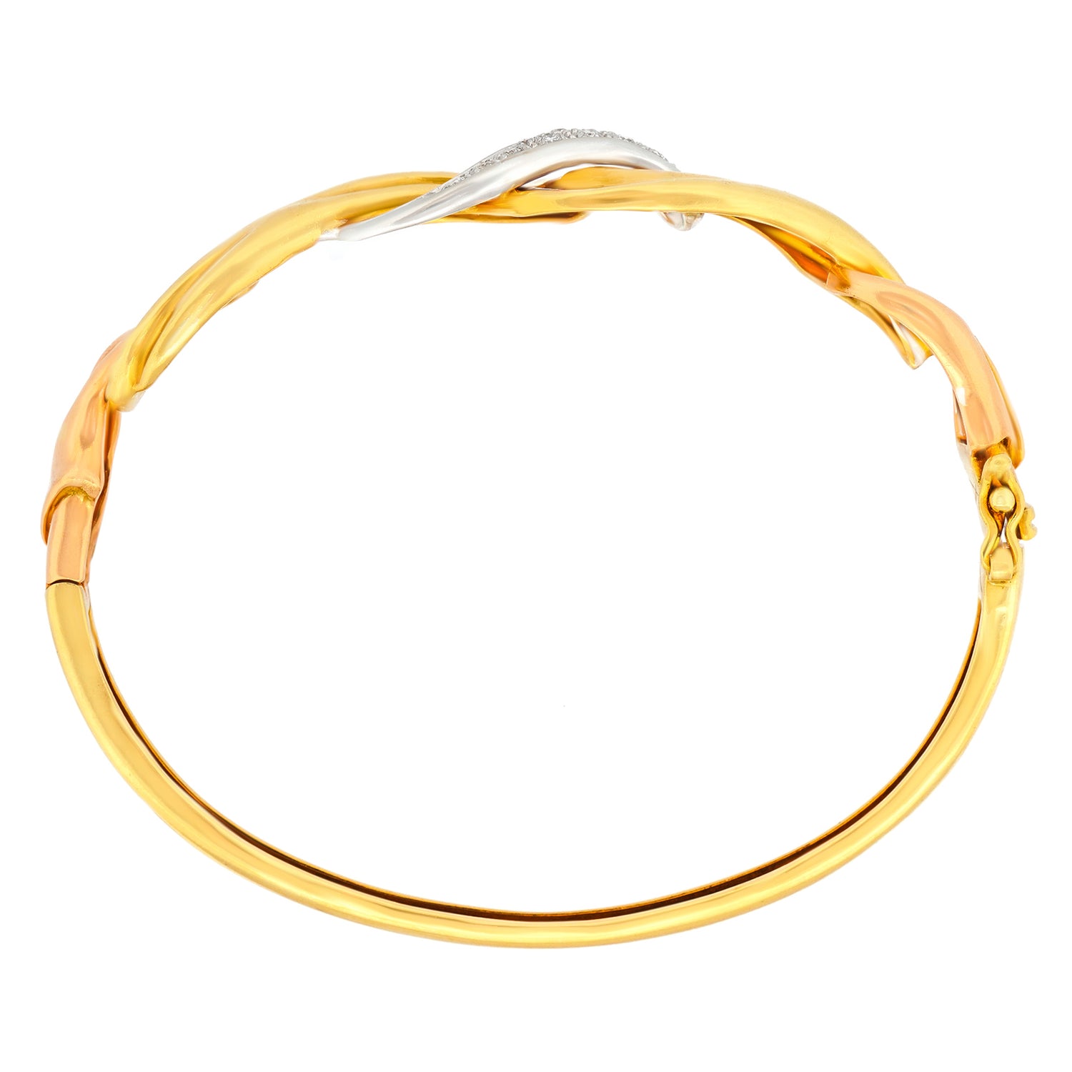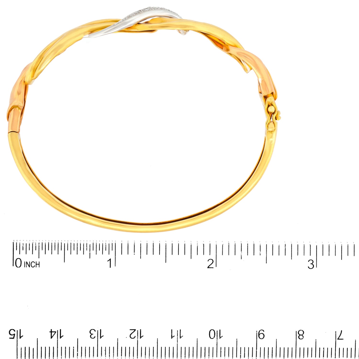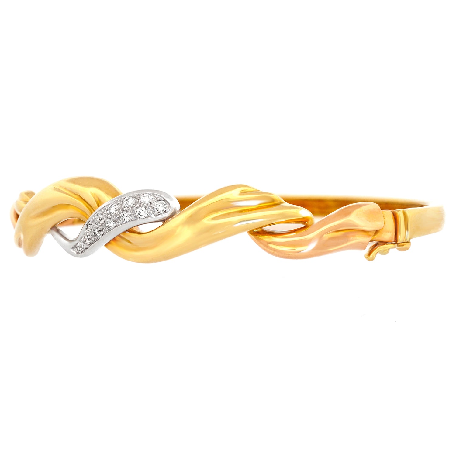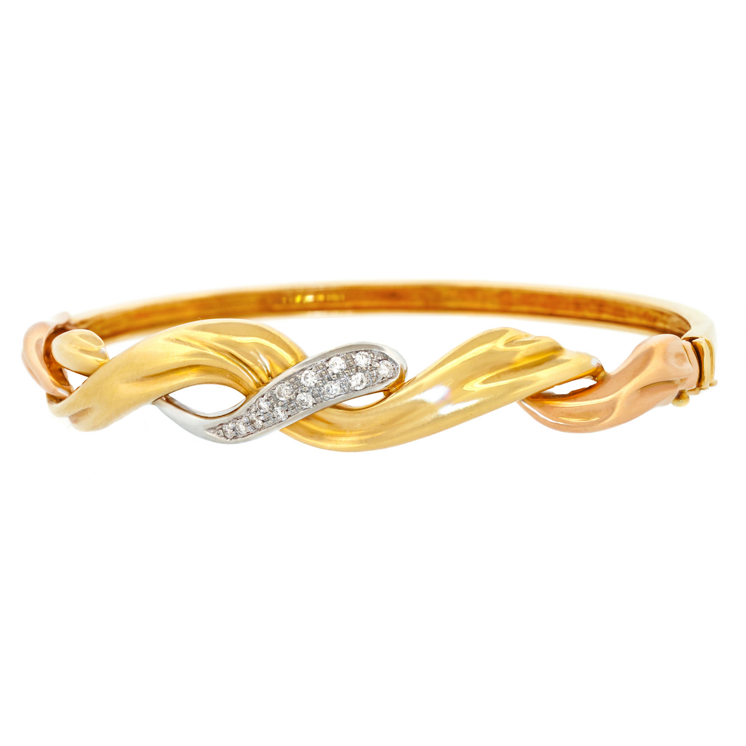 Circa 1980s, 18k, by Salvini, Italy. This gold bangle bracelet is the perfect everyday accessory! Set with .25 carats of bright white diamonds (G color, VS clarity), it is finely fashioned, and hinged for ease of use. Excellent condition.