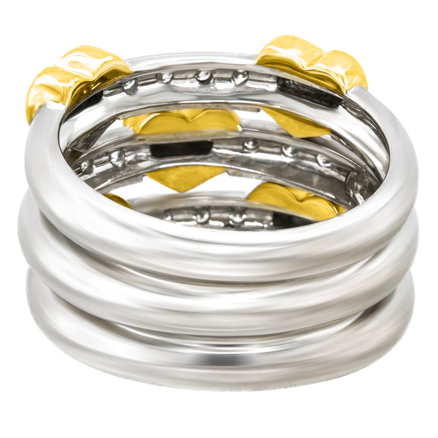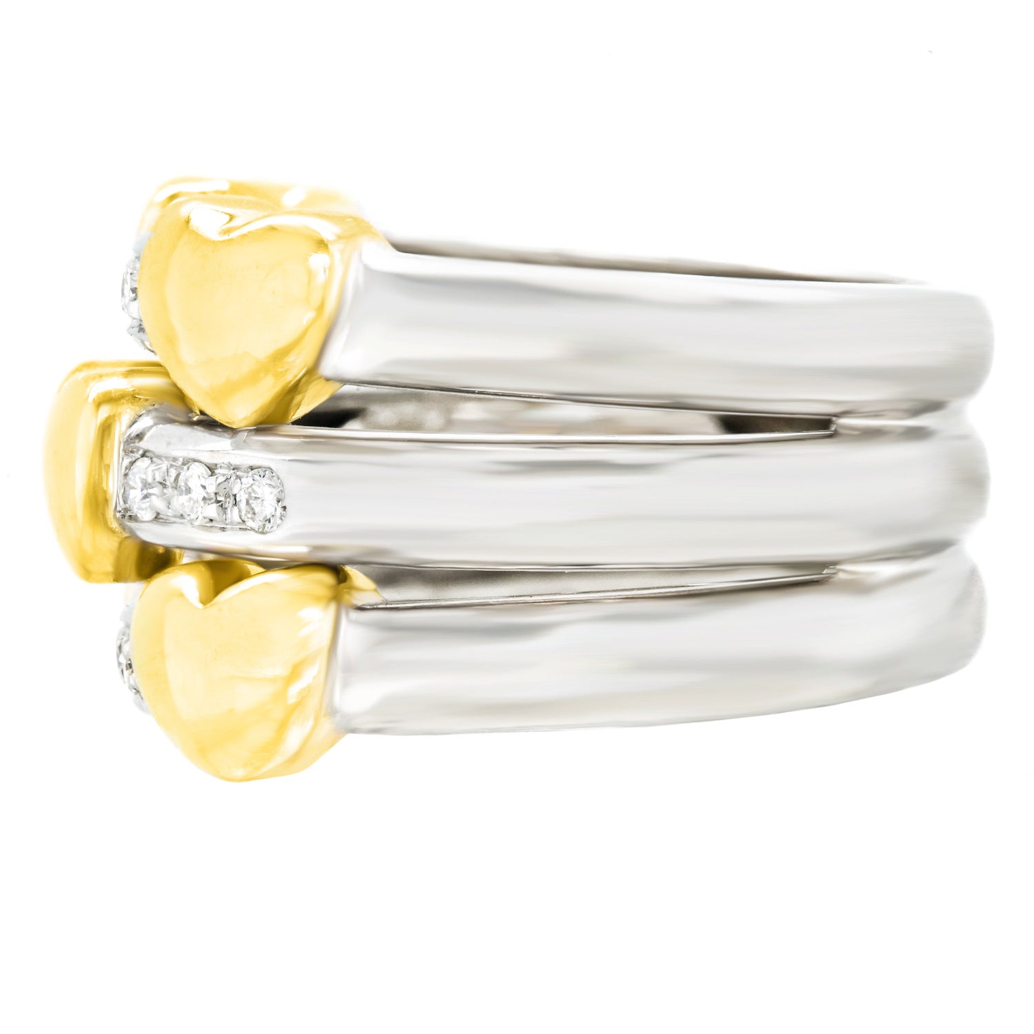 Circa 1980s, 18k, Italy.   Ever playful and always chic, Italian jewelry is a visual delight. This ring is perfect for your Dolce Vita life. Easy to wear, it effortlessly goes to the beach or work. Finely made in 18k yellow and white gold, it is in excellent condition.