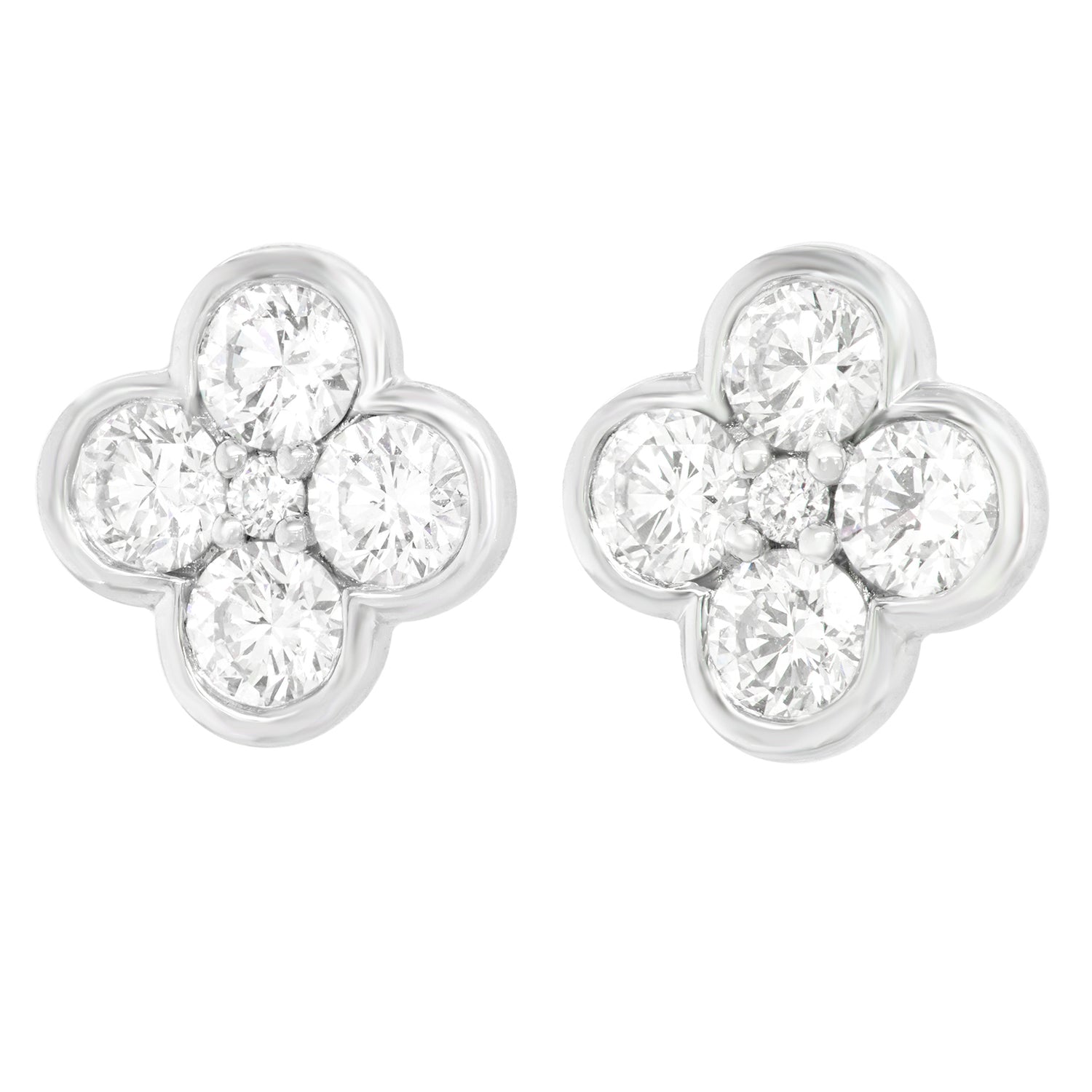 Circa 2000s, 14k, American. These chic clover-motif earrings are set ablaze by 1.25 carats of brilliant white diamonds (G color, VS clarity). From the sidewalk to the catwalk, they are the perfect accessory for any occasion. Diamond earrings are a fashion must-have. Well-made in 14k white gold, this pair is in excellent condition.