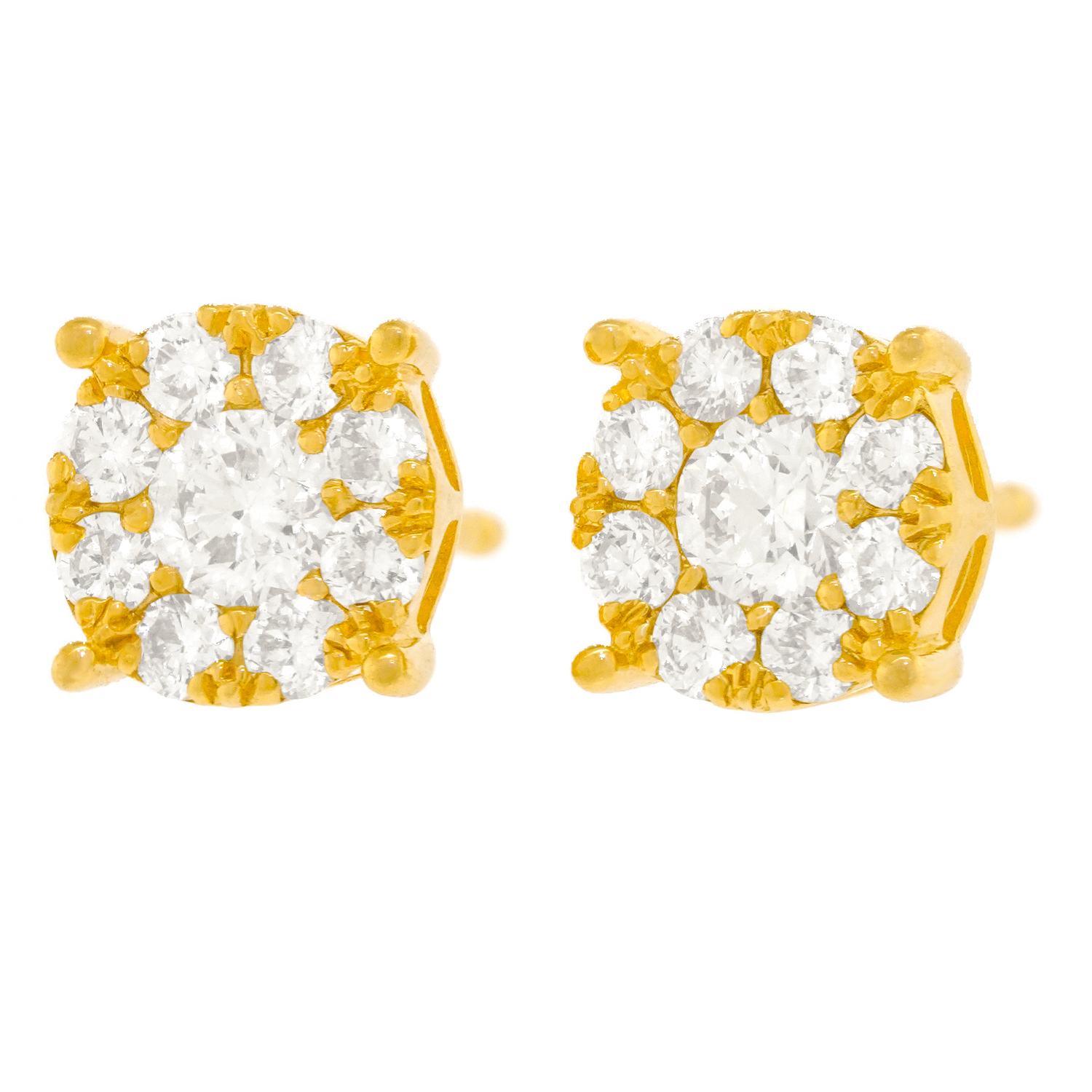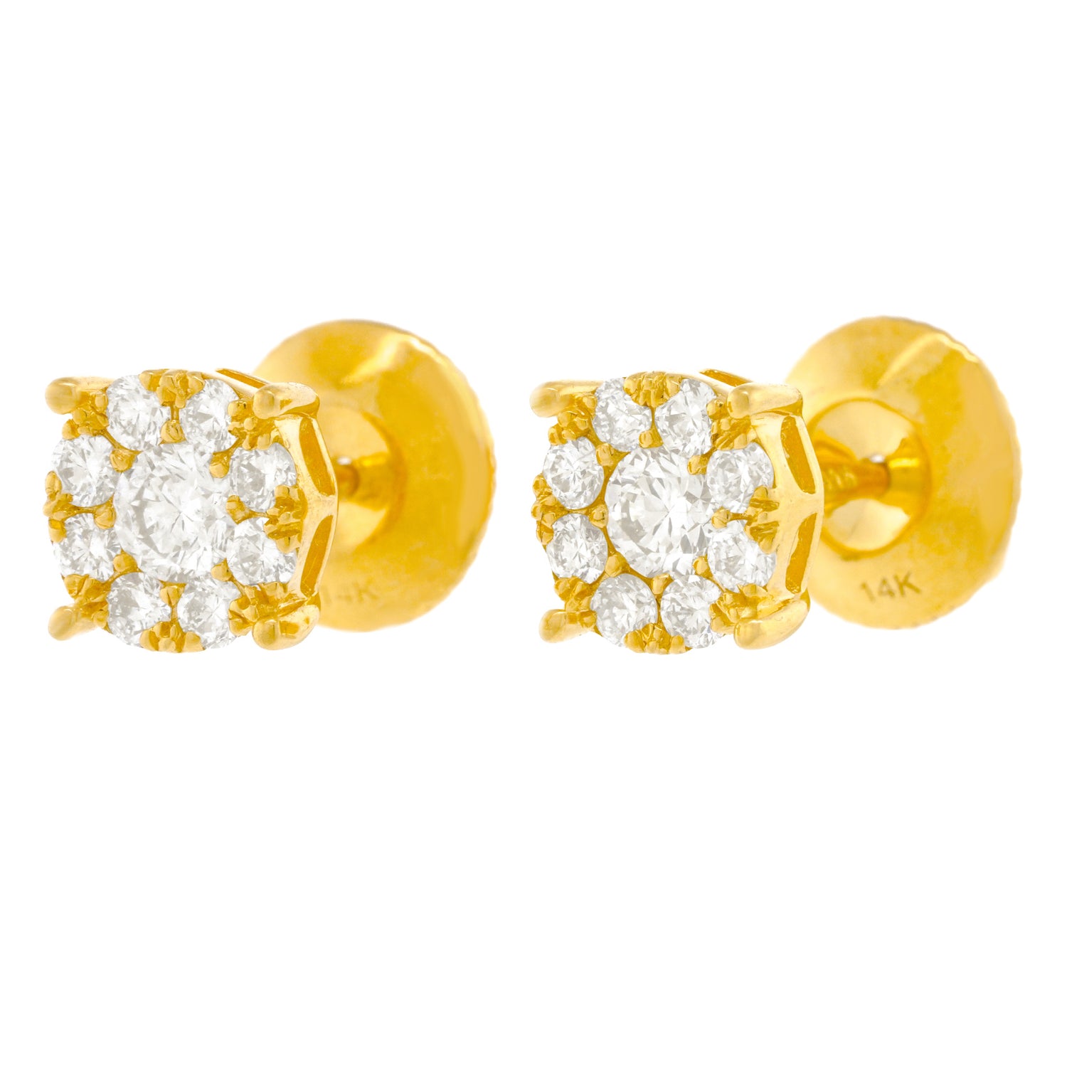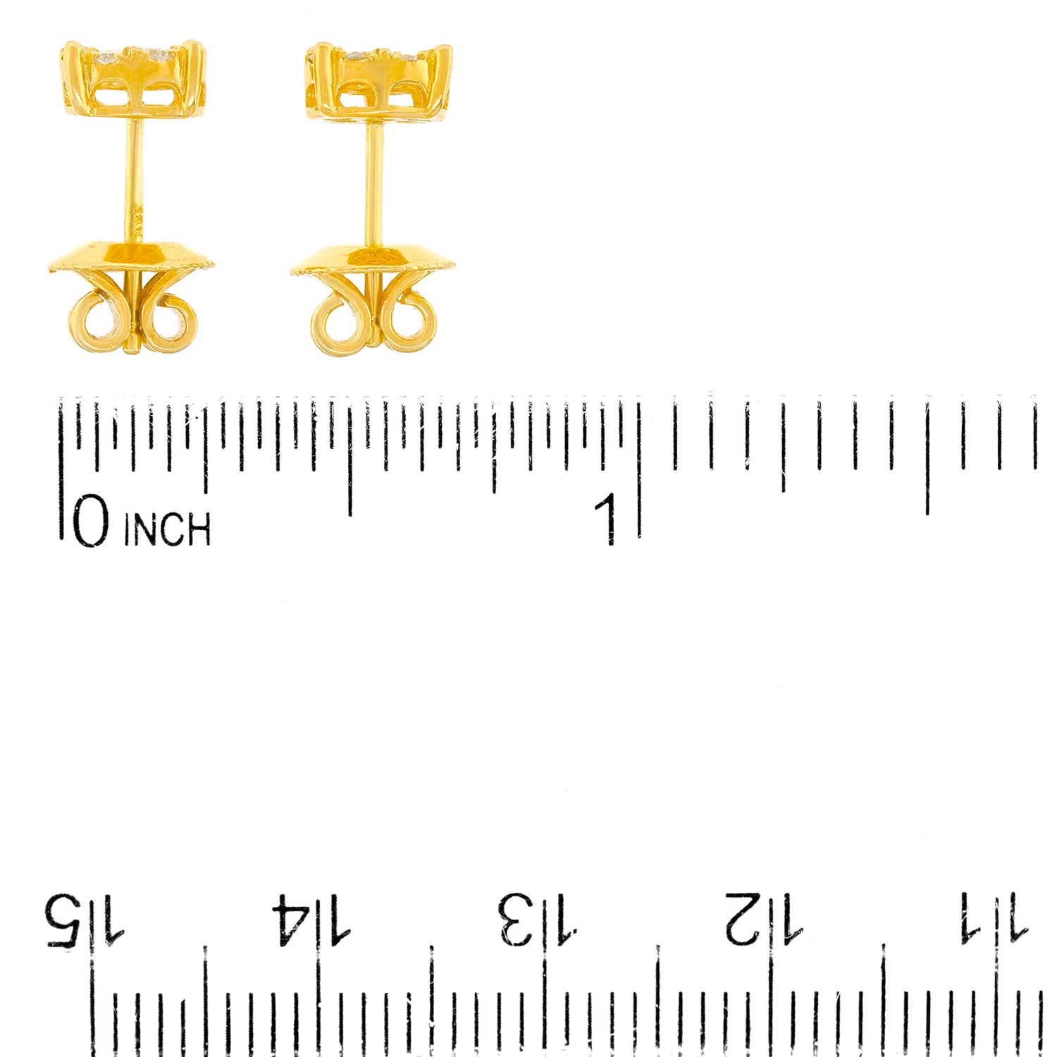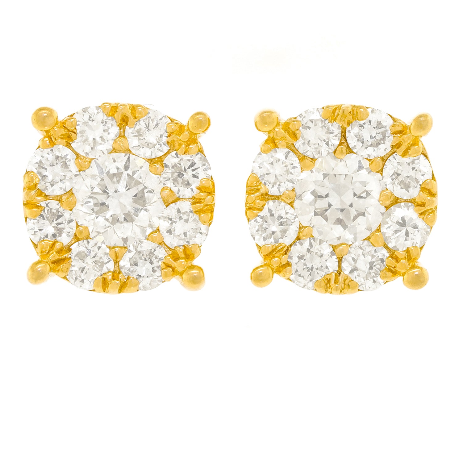 Circa 2000s, 14k, American. These diamond earrings have a sparkly timeless style. Each stud is set with nine brilliant white diamonds ( G color, VS clarity). The perfect accessory for any occasion, diamond earrings are a fashion must-have. Well made in 14k yellow gold. Excellent condition.