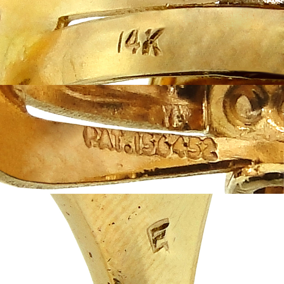 Hallmarks: EW for Ed Wiener, noted that most of the W is rubbed 14k.