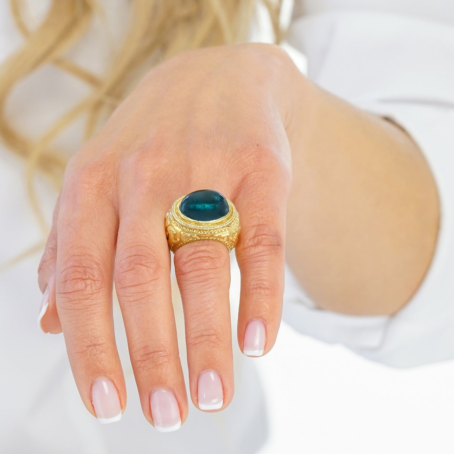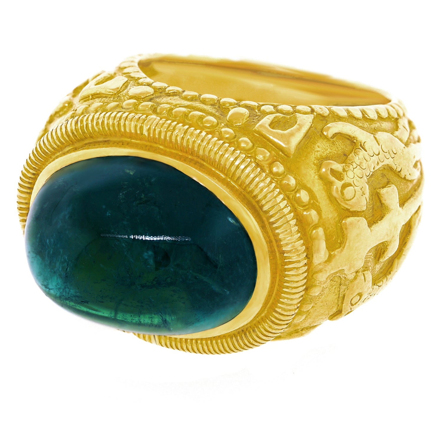 Elizabeth Gage Renaissance Revival Tourmaline Ring 18k