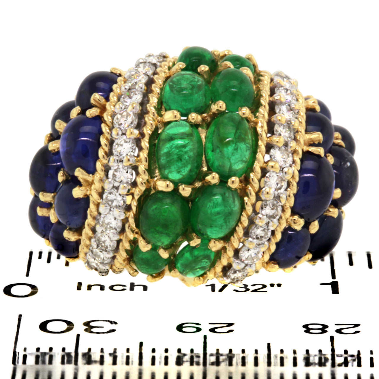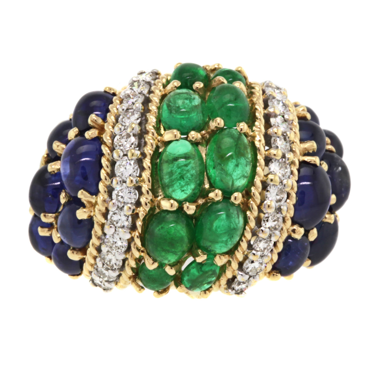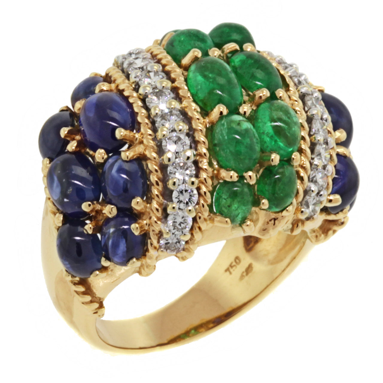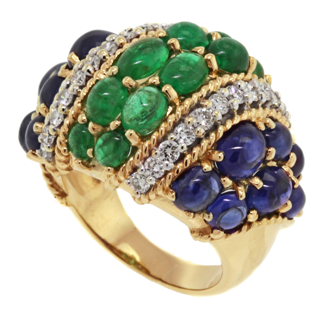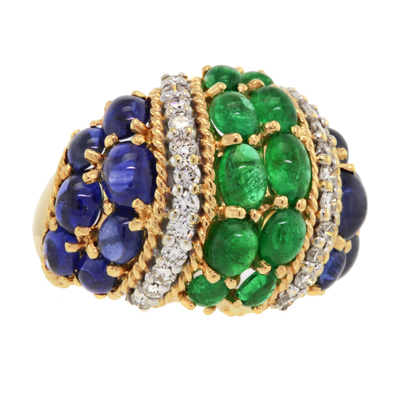 Emerald, Sapphire & Diamond Fifties Boule Ring