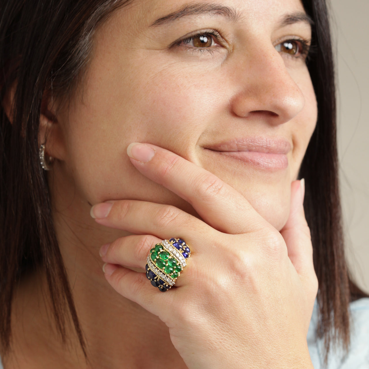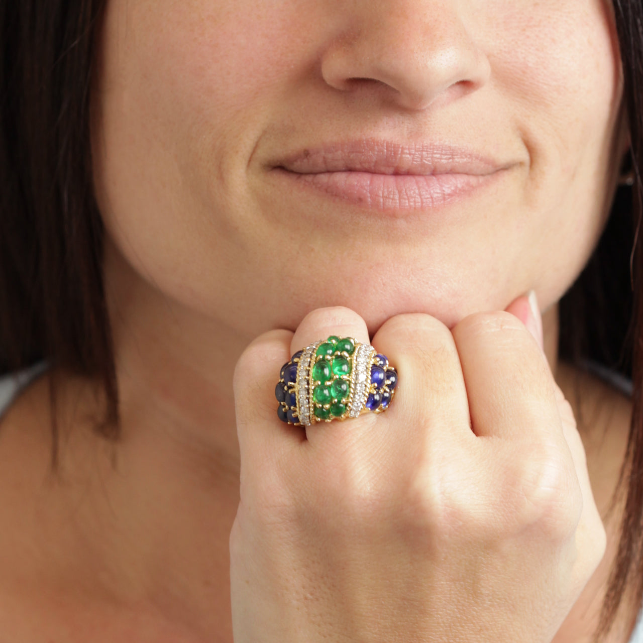 Remarks from Lawrence Jeffrey: "This is a visually pleasing ring in every way. Colorful and fun, it has an insouciant elegance."