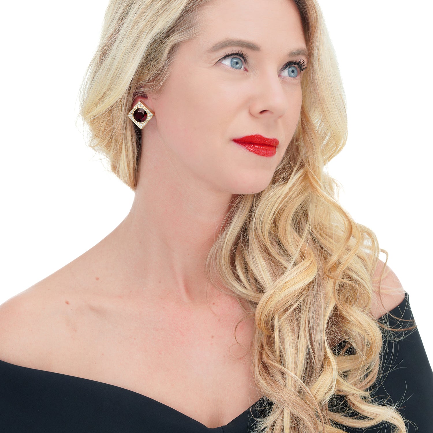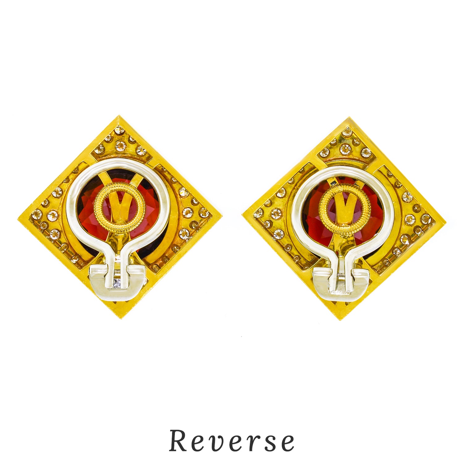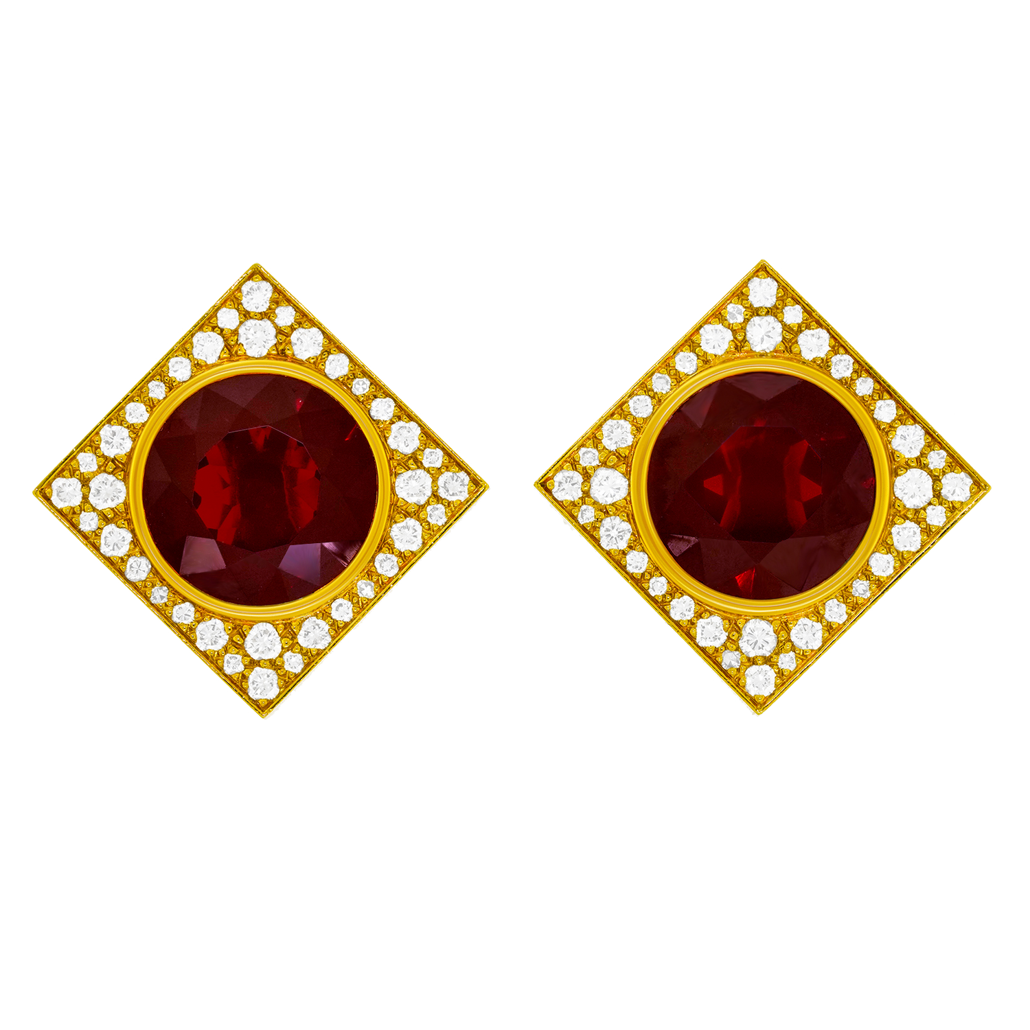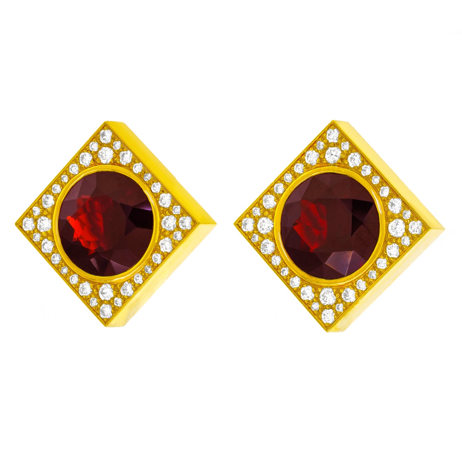 #24490 - Emil Meister Swiss Modern Garnet and Diamond-set Gold Earrings