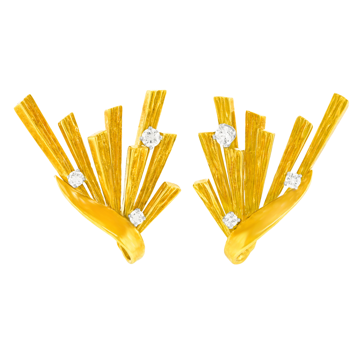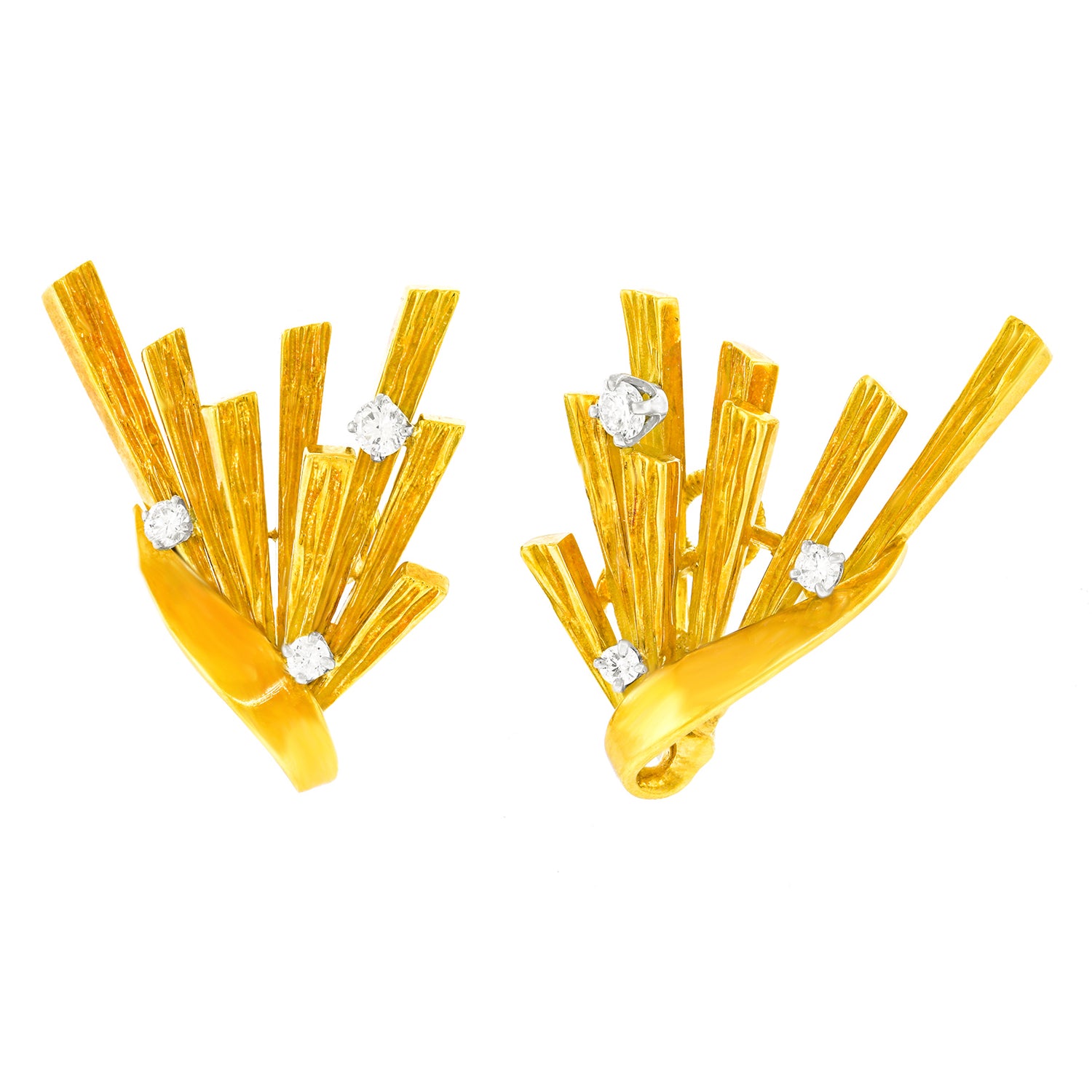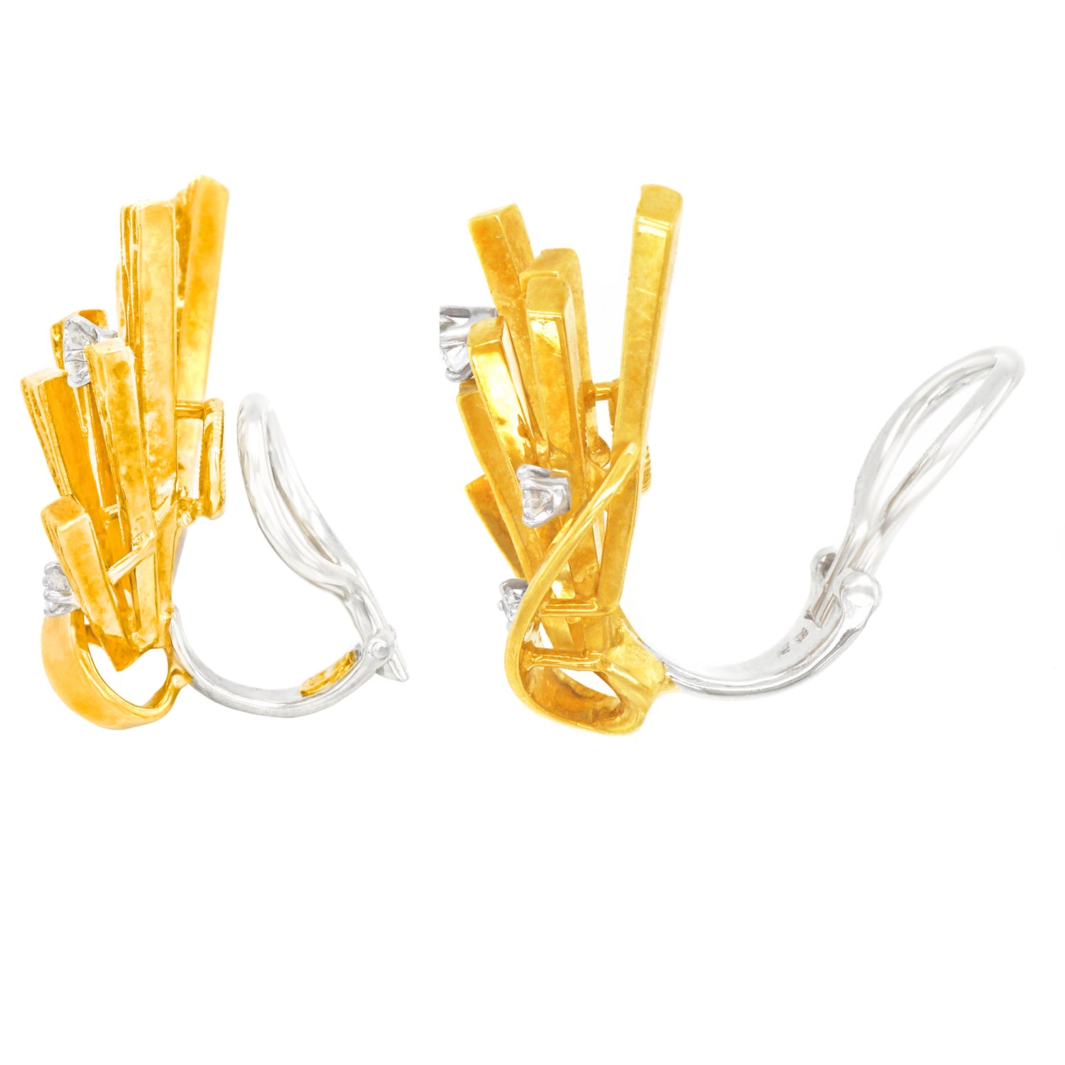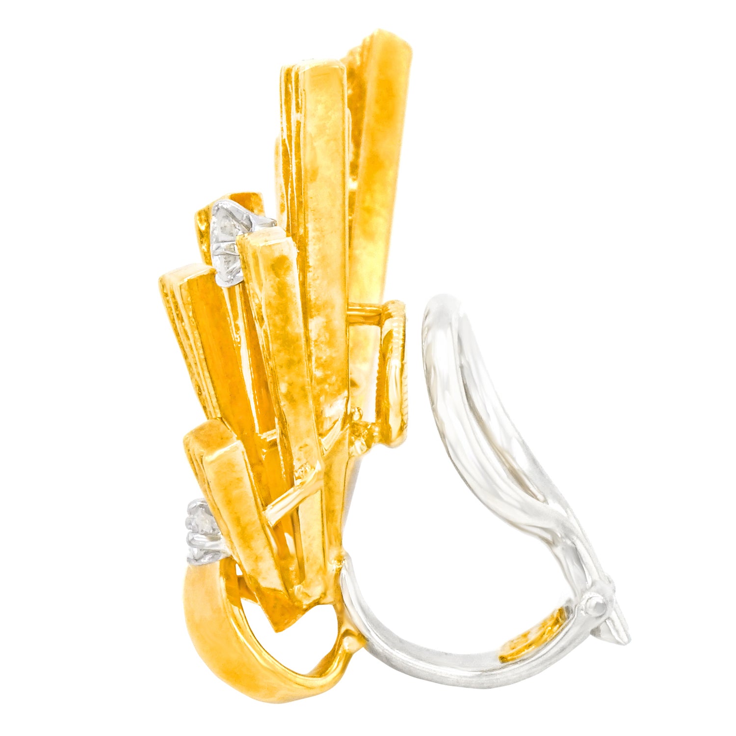 Circa 1960s, 18k, by Emil Meister, Switzerland. These post-modern abstractionist earrings from Emil Meister are chic with "vintage contemporary" look. They can be worn either way, a wonderful, intentional design. Known for superb quality and fashionable designs, Meister has been Switzerland's finest jeweler since the late 1800s. Excellent condition.