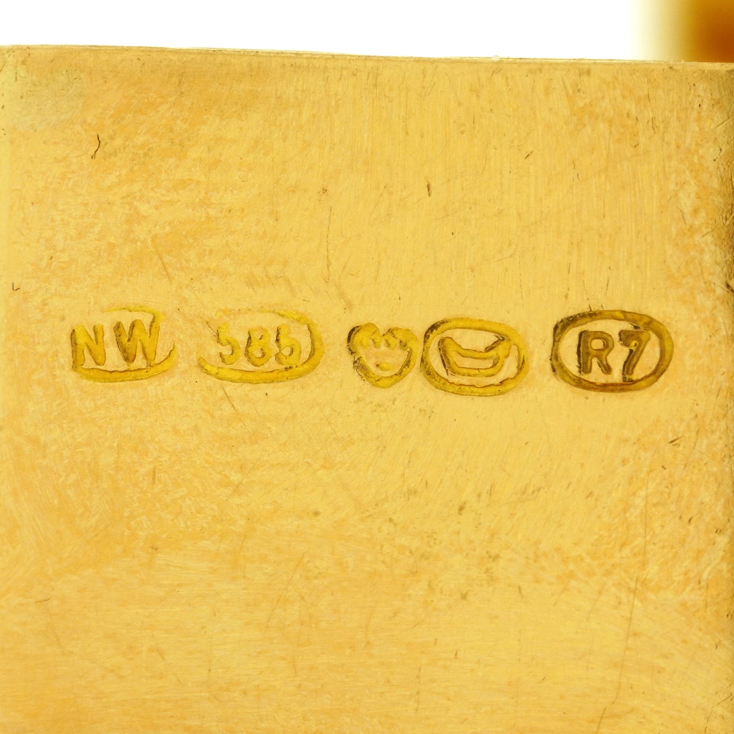 Hallmarks: NW for Nils Westerback, 585 for 14k, Crown for Finnish Assay Mark, City Mark for Helsinki, and R7 for 1970