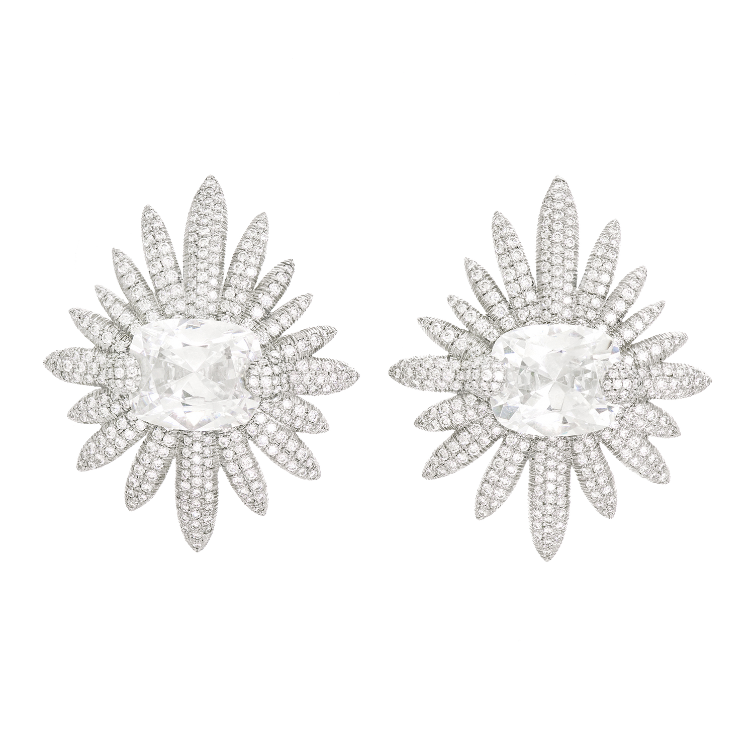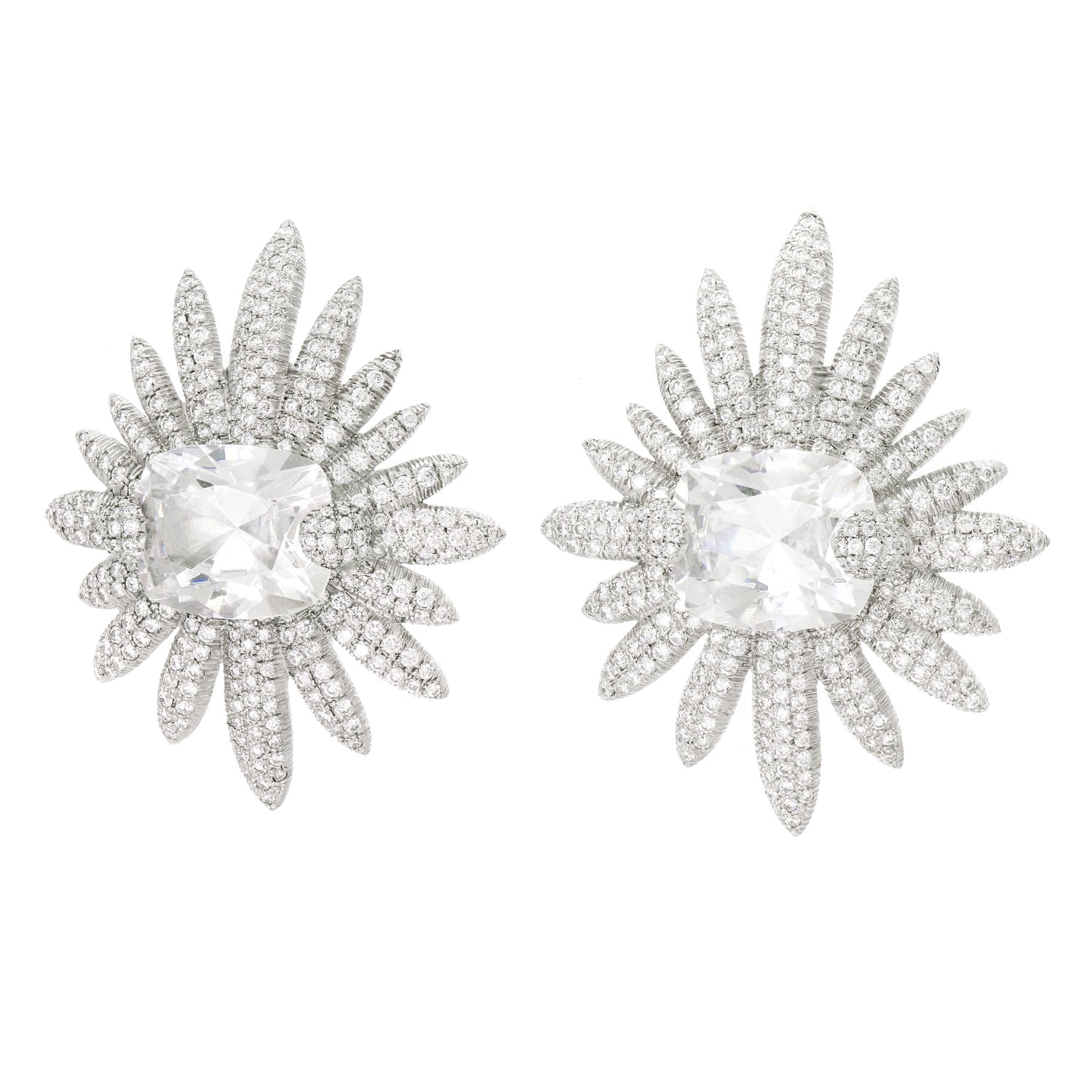 Stones: Cushion-cut Rock Crystal and 6.50 carats of G color, VS clarity diamonds