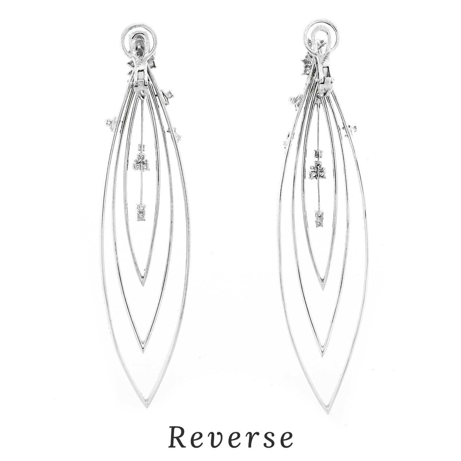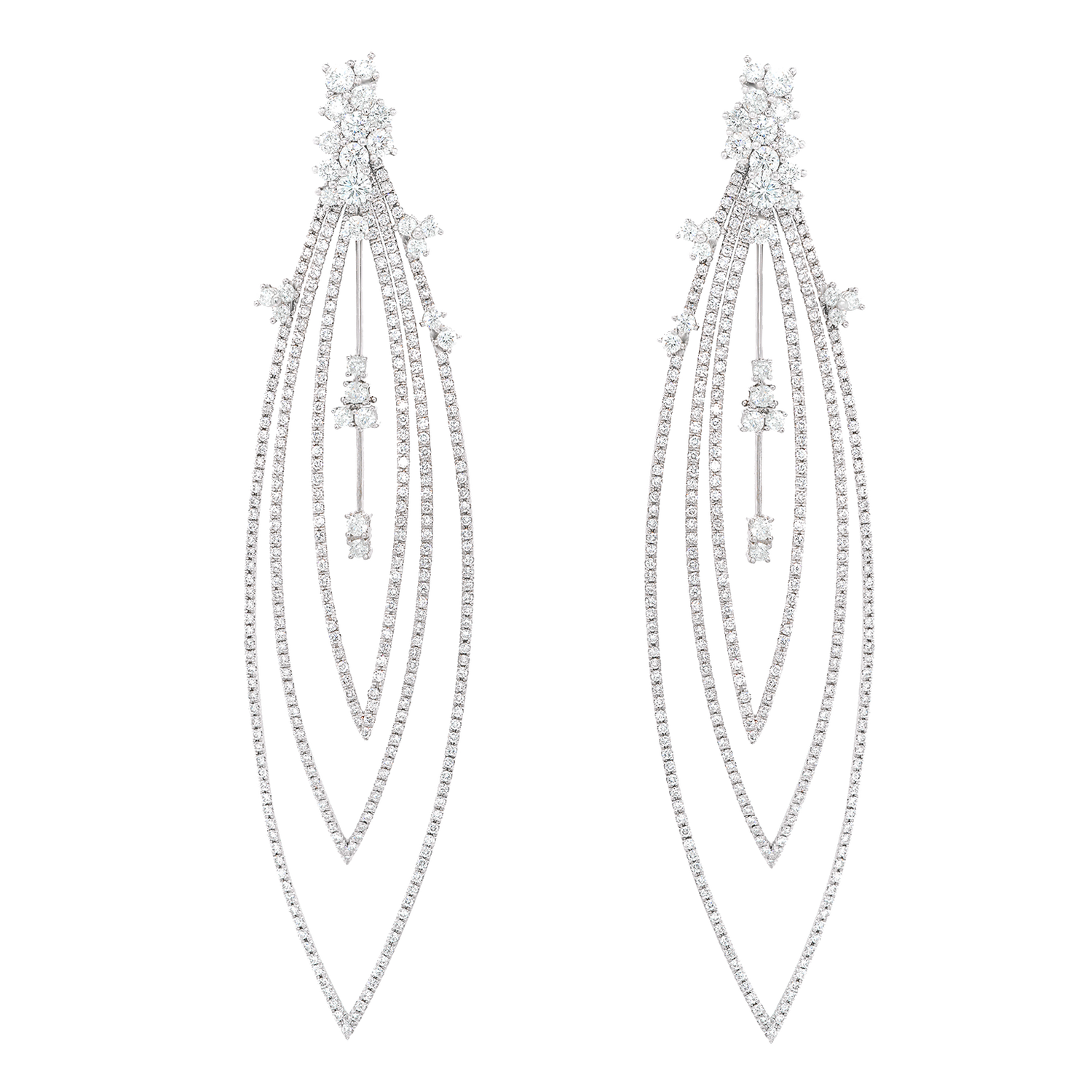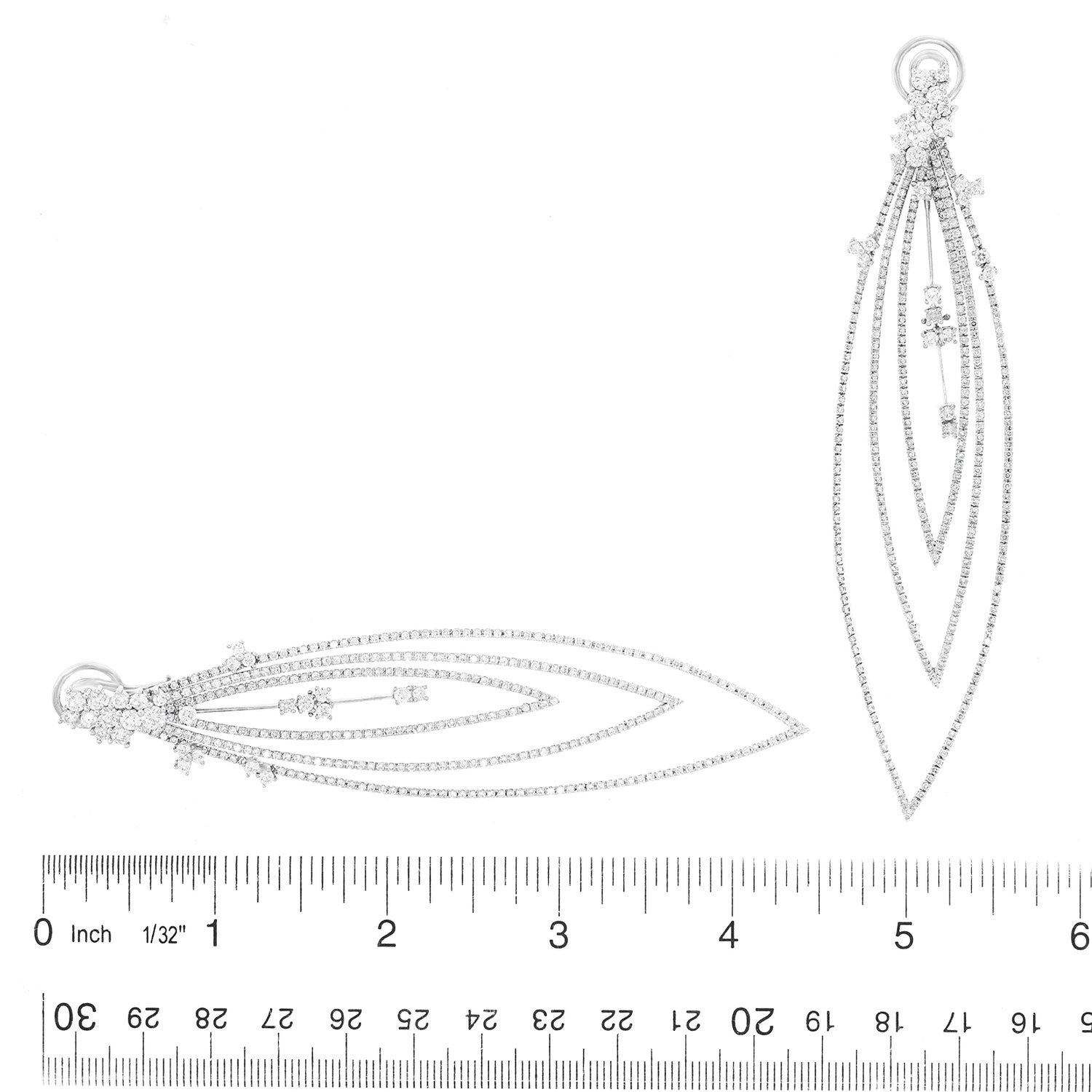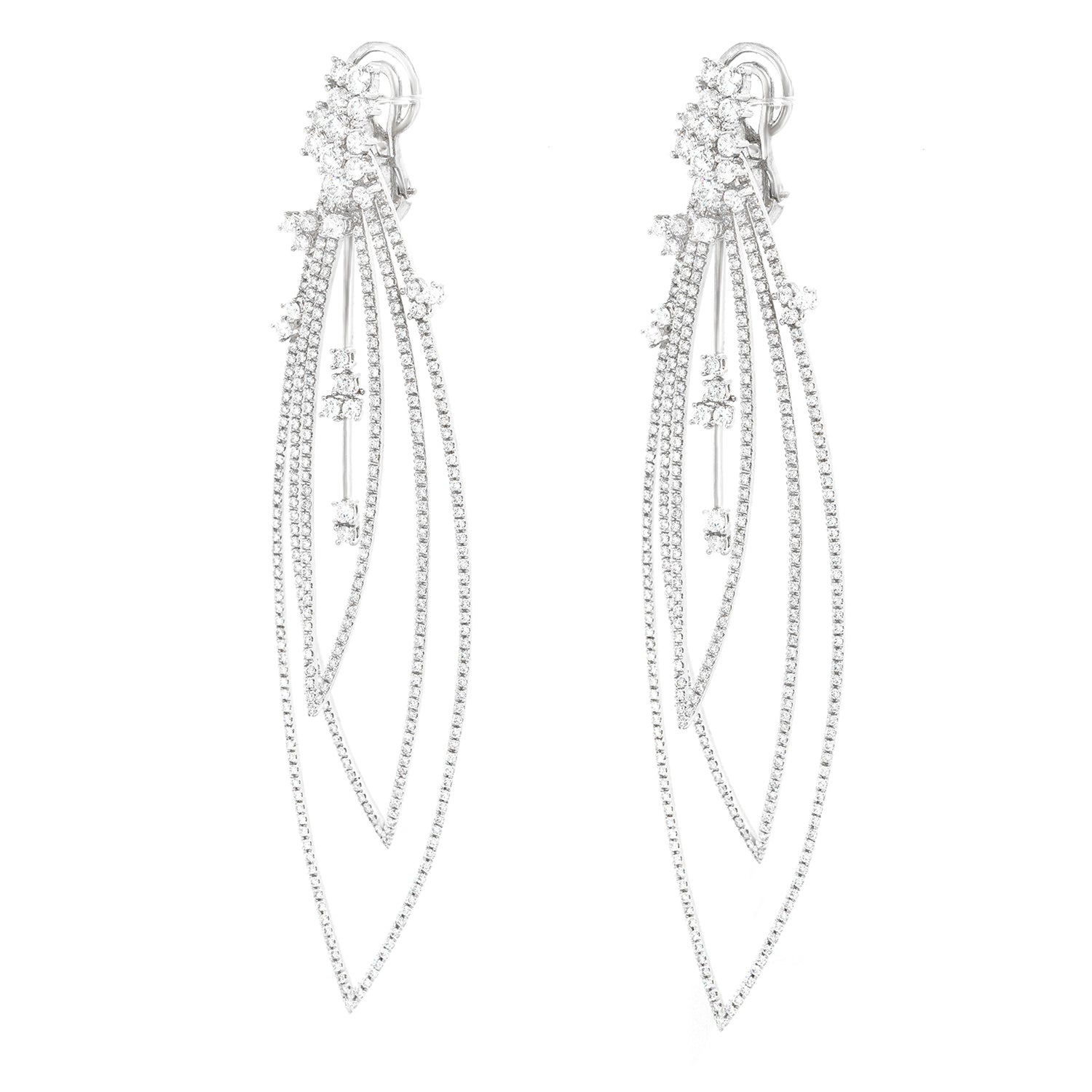 Circa 2000s, 18k, by Roberta Porratti, Italy. From the catwalk to the sidewalk, these exquisite four-and-a-quarter-inch-long chandelier earrings are diamond perfection! Harmoniously intricate with flirty movement, they are elegant with a cocktail dress or gown or over-the-top and strut-your-stuff matched with your highest heels and tightest jeans! The look is Wow! Yet delicate, both fun and refined. Meticulously fabricated and set with 10.0 carats of brilliant white diamonds (H color, SI1 clarity), they are red carpet ready. Excellent condition.