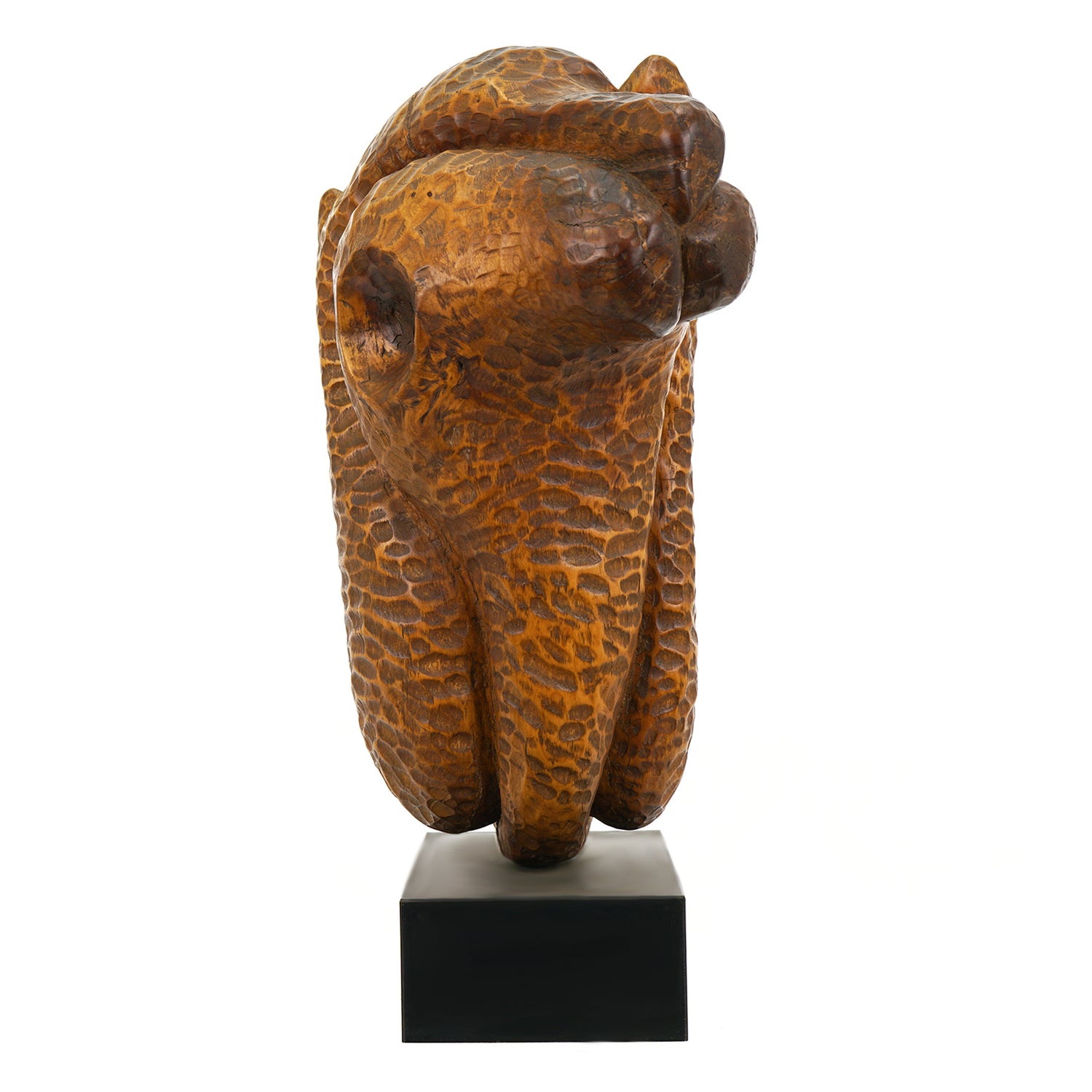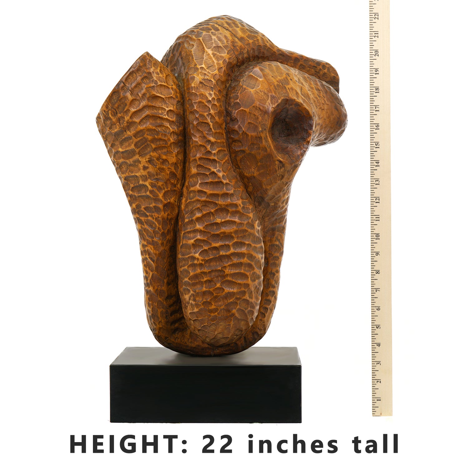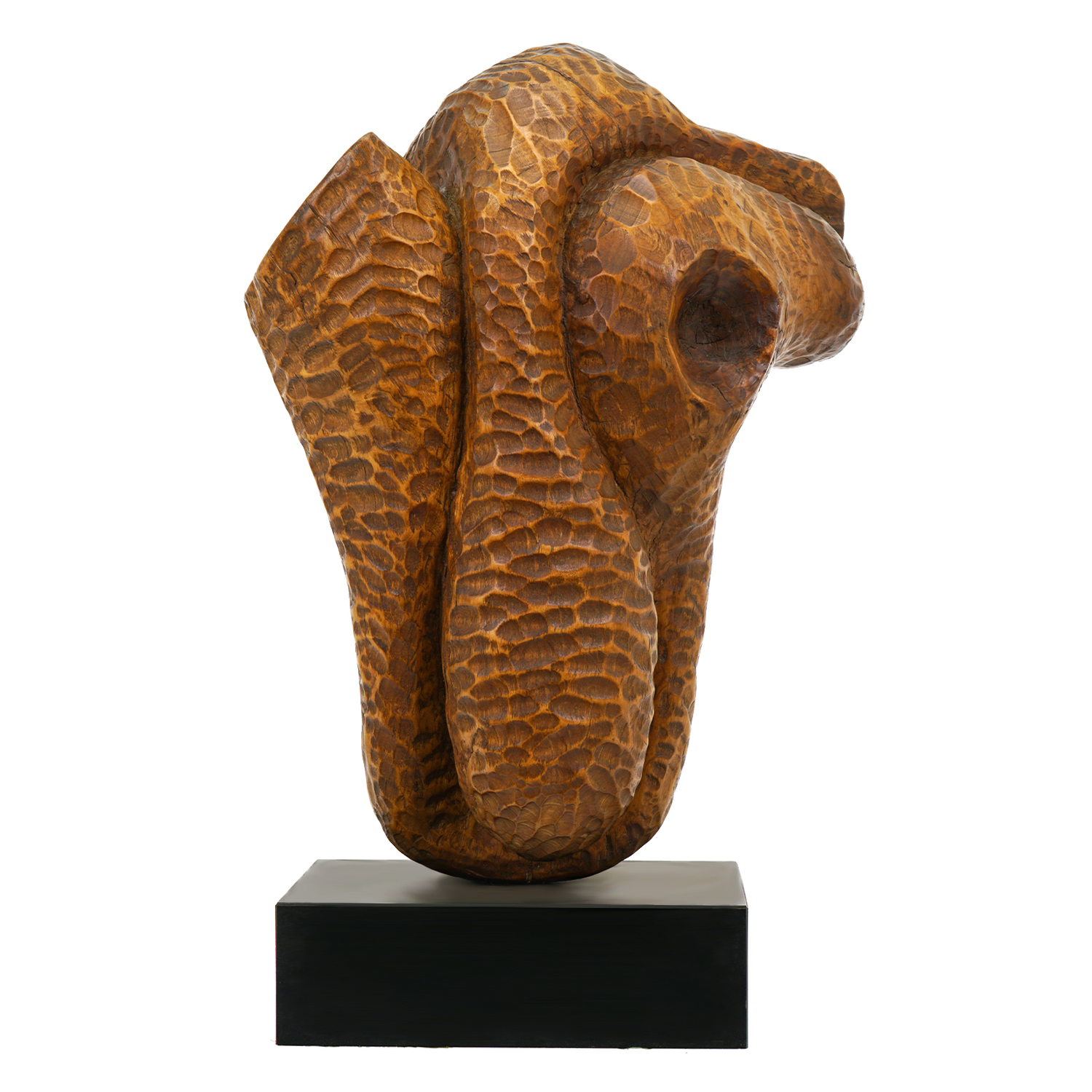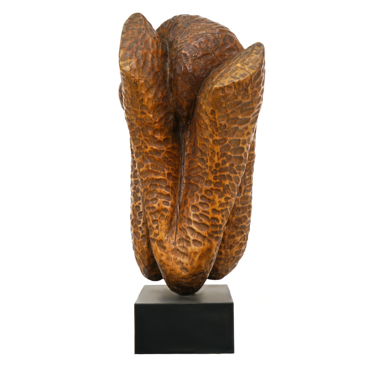 Circa 1950 to 60s, by Fannie Lager, New York City. Beneath the artist's hands, nature becomes biomorphic Art. This stunning larger example of Fannie Lager’s work displays her affinity for contemporary shapes and forms. Meticulously rendered in wood, this amorphous sculpture is one of her finest works. Perfect for a mid-century décor or an eclectic interior. Very good condition. This piece comes with a letter of authenticity tracing its chain of custody.