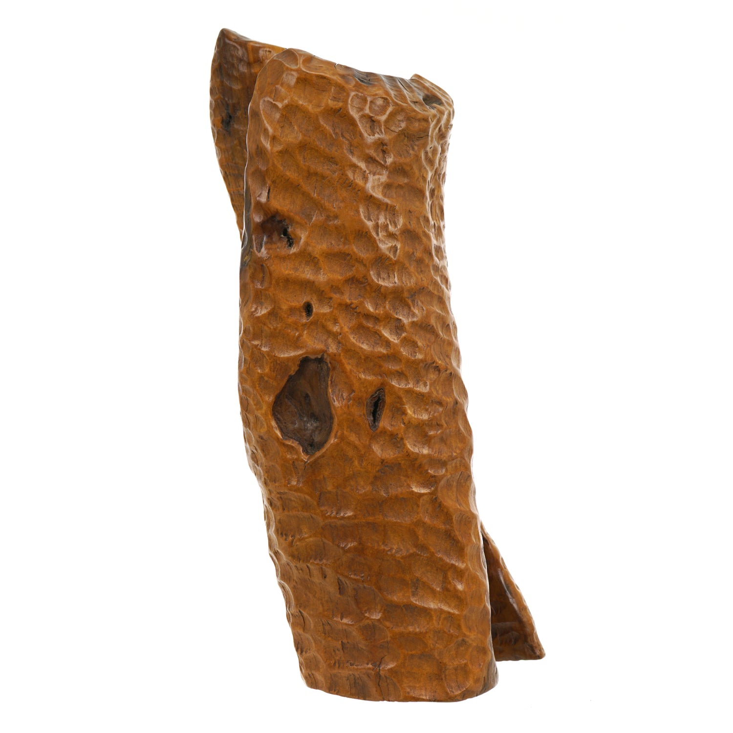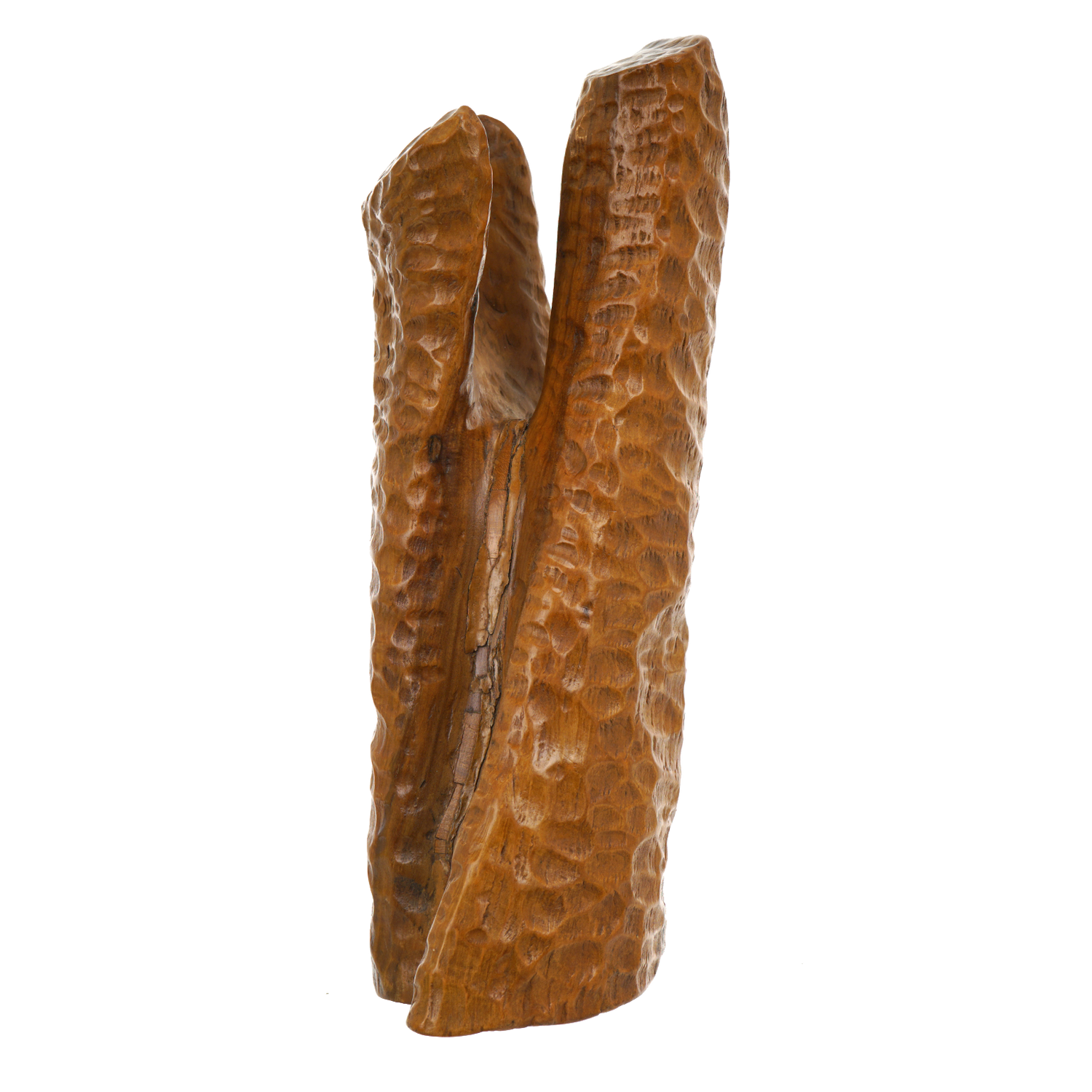 Circa 1950 to 60s, by Fannie Lager, New York City. Beneath the artist's hands, nature becomes biomorphic Art. This stunning larger example of Fannie Lager’s work displays her affinity for contemporary shapes and forms. Meticulously rendered in wood, this amorphous sculpture is one of her finest works. Perfect in a mid-century décor or an eclectic interior. Very good condition. This piece comes with a letter of authenticity tracing its chain of custody.