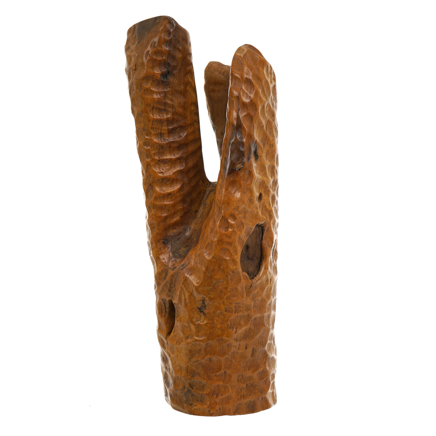Living all her life in Brooklyn in an apartment, one might ask where did Fannie acquire the wood to sculpt? Her nephew provided us with the answer. She haunted the Brooklyn Botanical Gardens, bringing coffee and pastries to the groundskeepers, gradually winning them over until she became friends with all the crews. When a storm would come and large branches or whole trees would fall, if the wood was exotic, she would get a phone call to come quickly to the gardens. Fannie would choose the best pieces which were handed over a back fence and then spirited away to her apartment in a taxi cab.