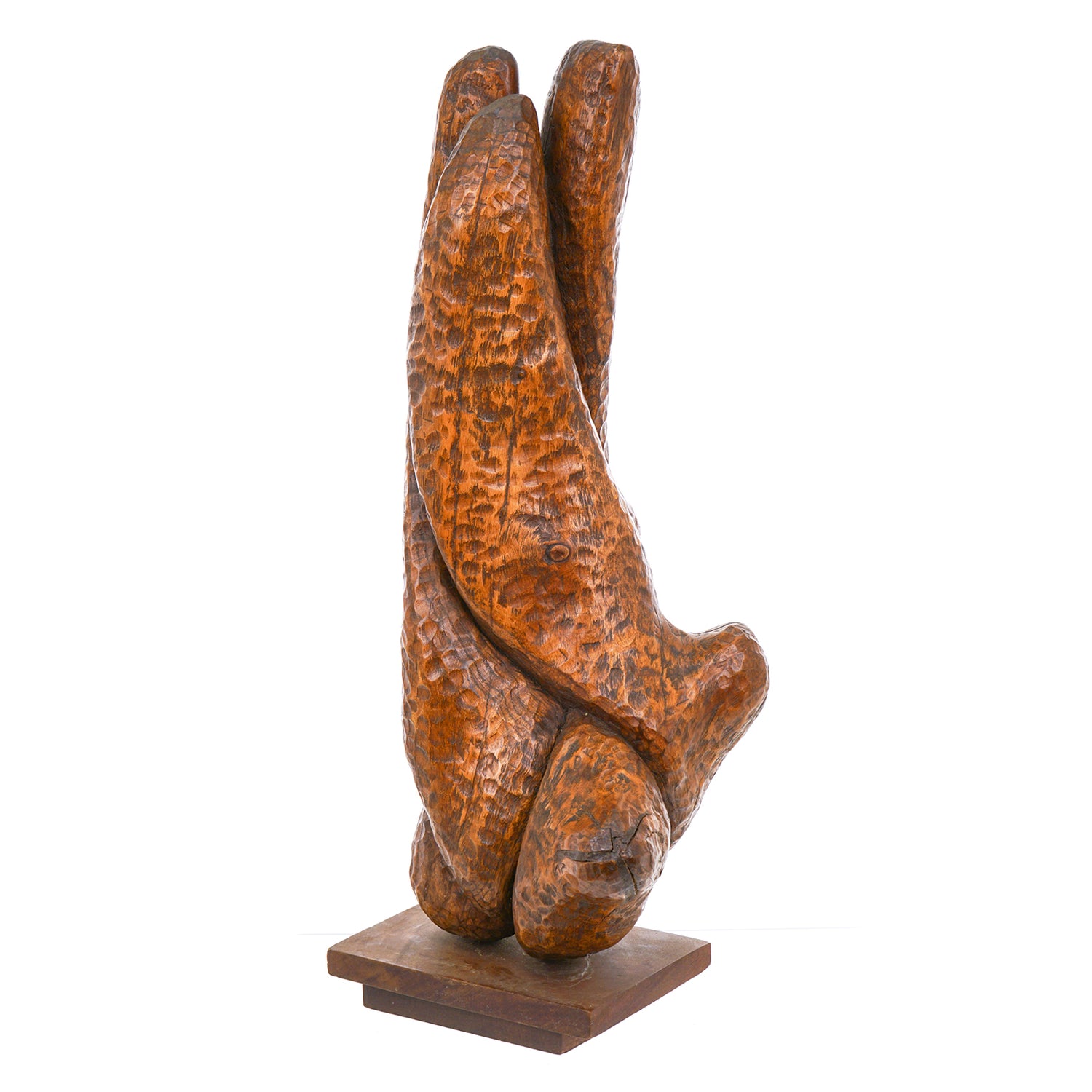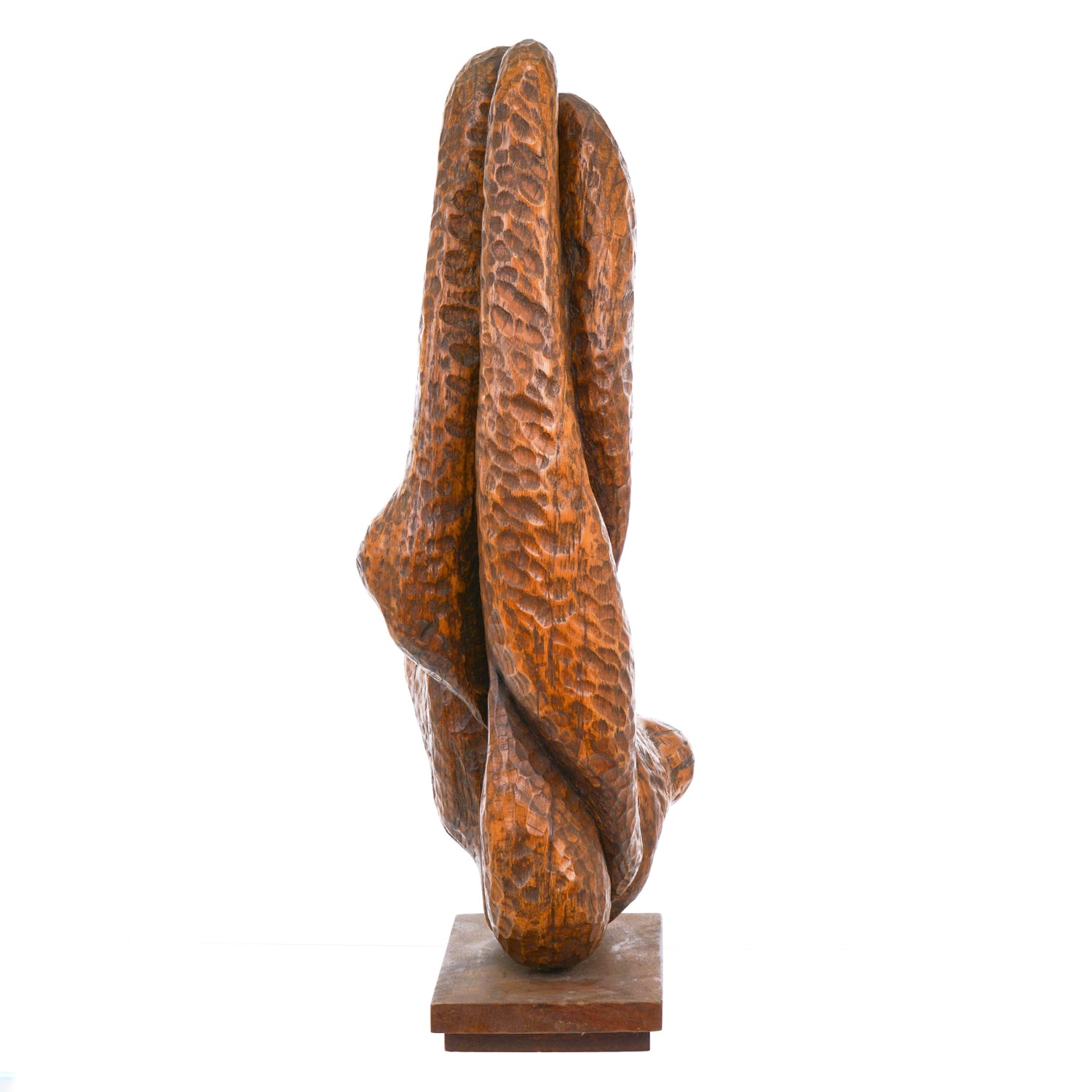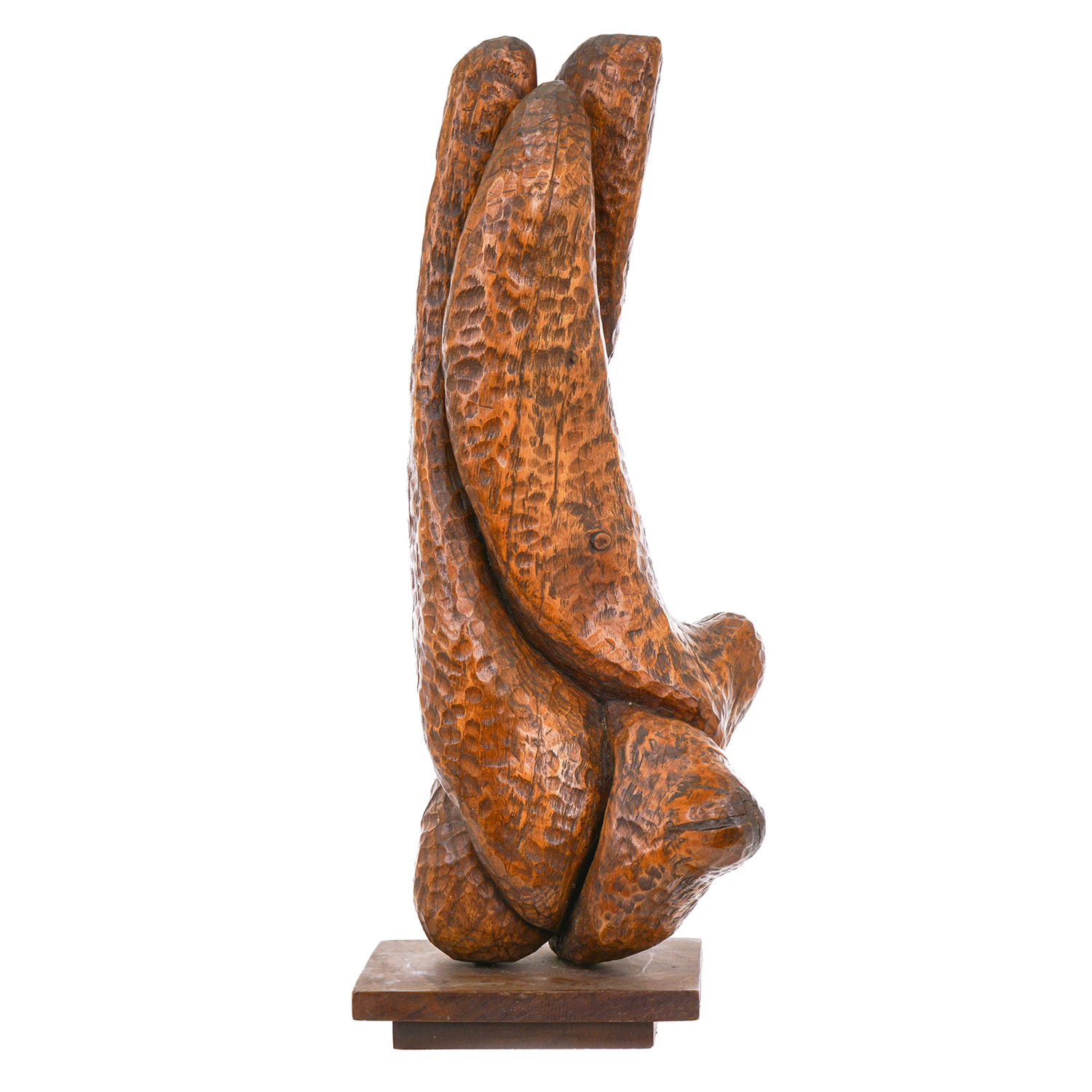 Circa 1950 to 60s, by Fannie Lager, New York City. Beneath the artist's hands, nature becomes biomorphic Art. This stunning larger example of Fannie Lager’s work displays her affinity for contemporary shapes and forms. Meticulously rendered in wood, this amorphous sculpture is one of her finest works. Perfect for a mid-century décor or an eclectic interior. Very good condition. This piece comes with a letter of authenticity tracing its chain of custody.