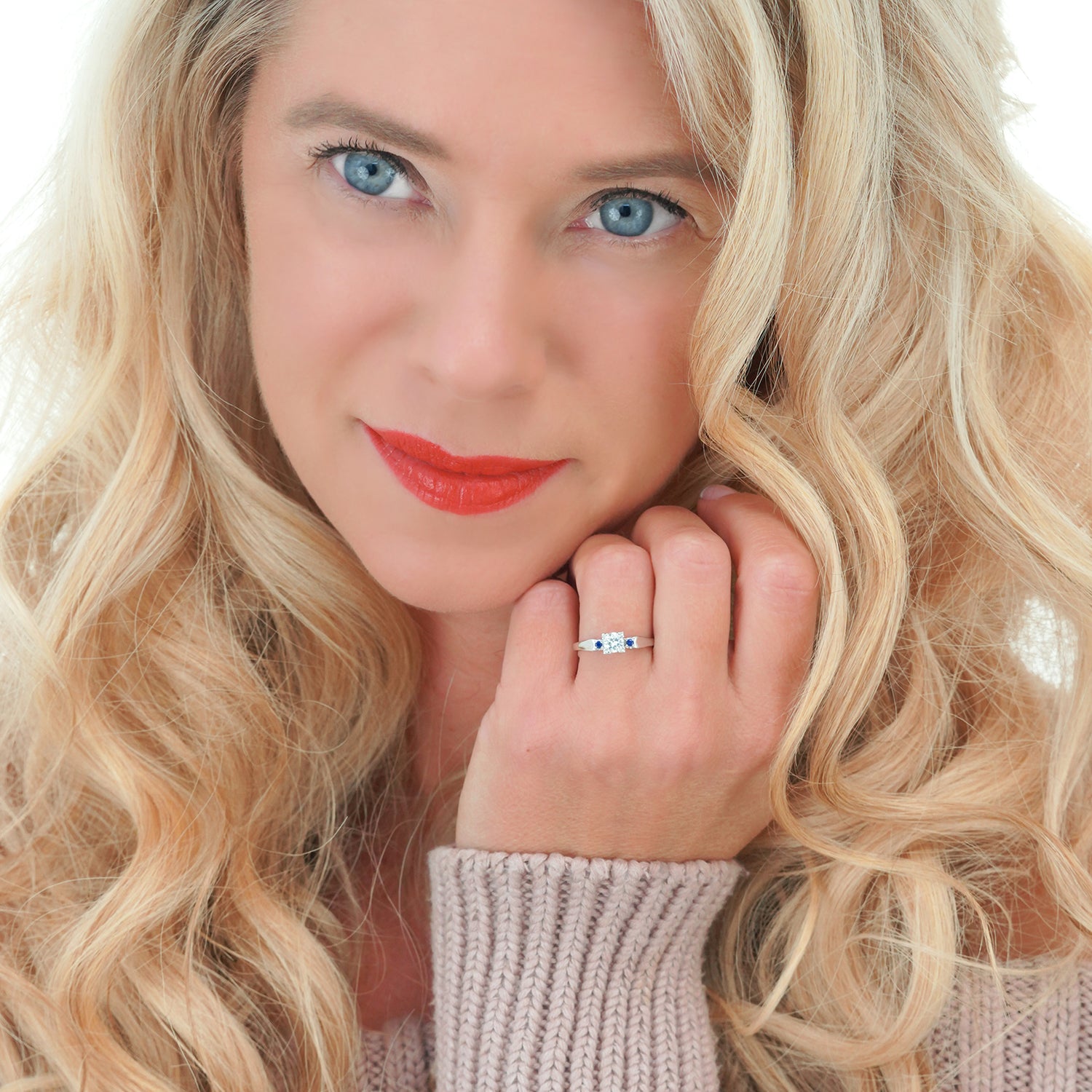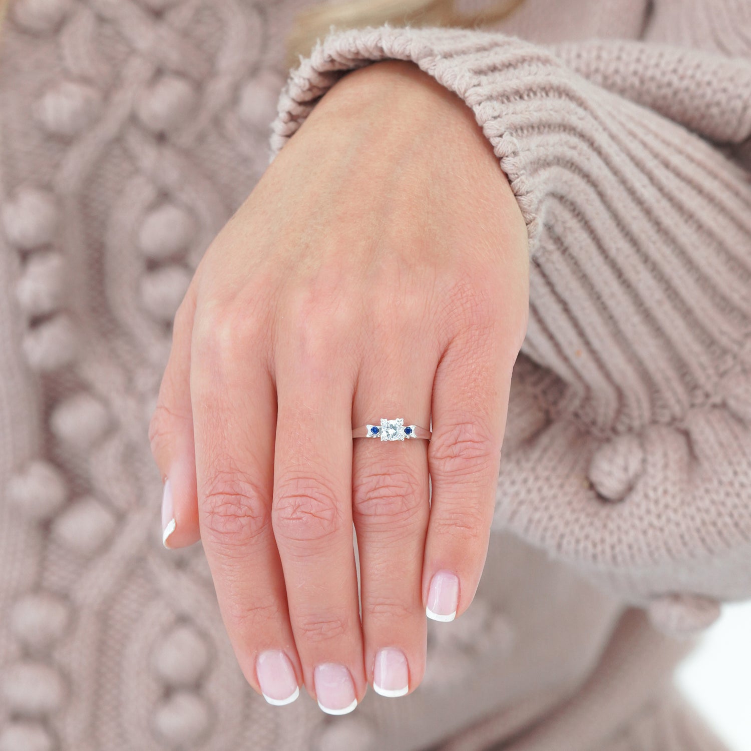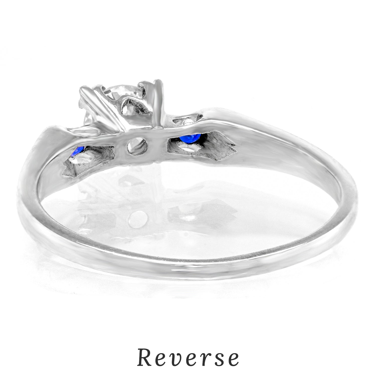 Stones: .33 carat H color, VS clarity diamond and .05 carats total weight of sapphires