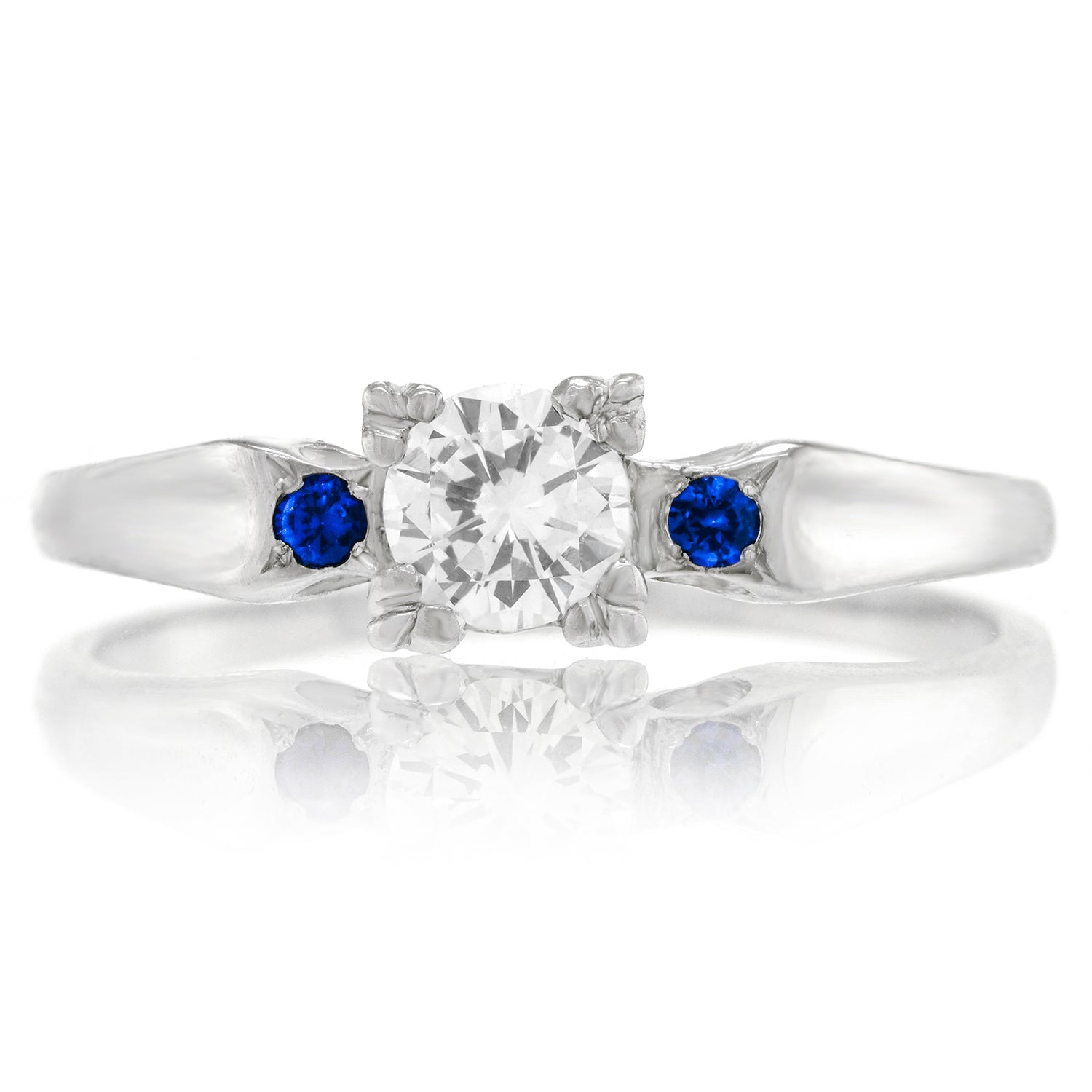 #24246 - Fifties .33 Carat Diamond and Sapphire Engagement Ring