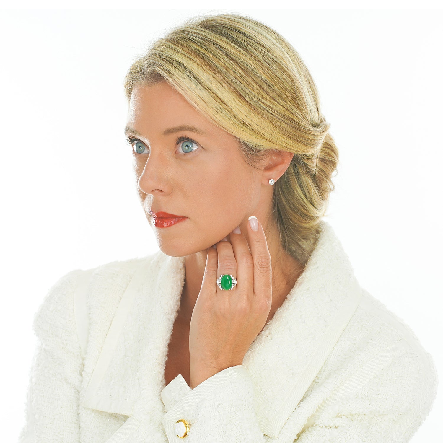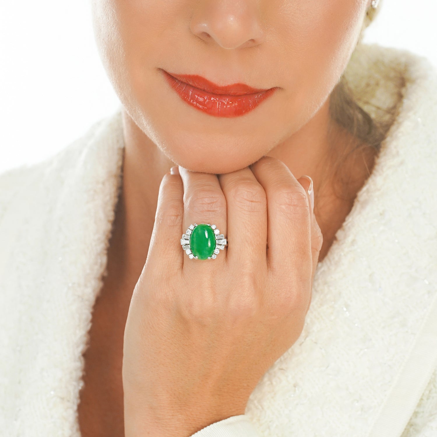Stone Details: Gorgeous deeply hued translucent jade and superb diamonds