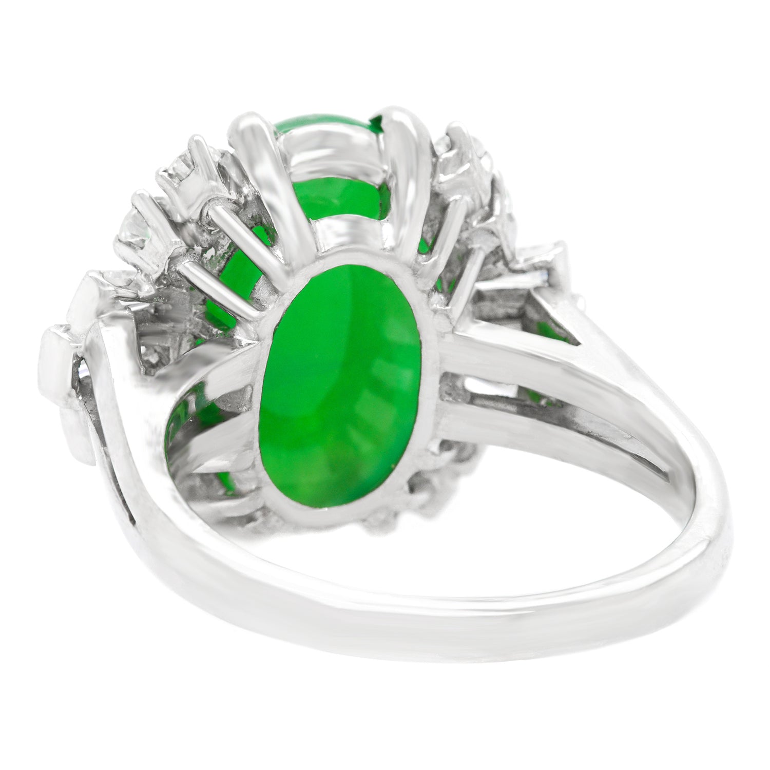 Stones: 7.65 carat natural jadeite jade and .80 carats total weight of G color, VS clarity diamonds