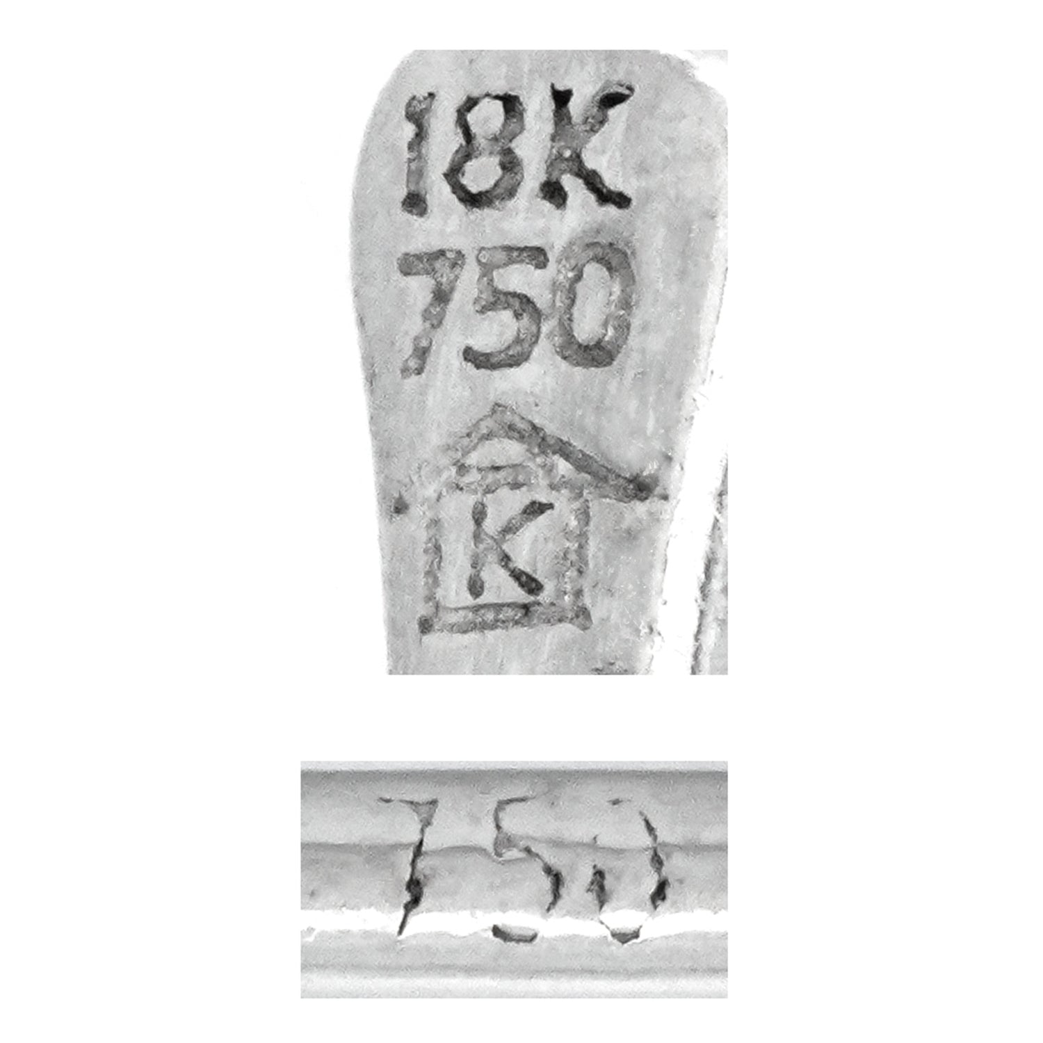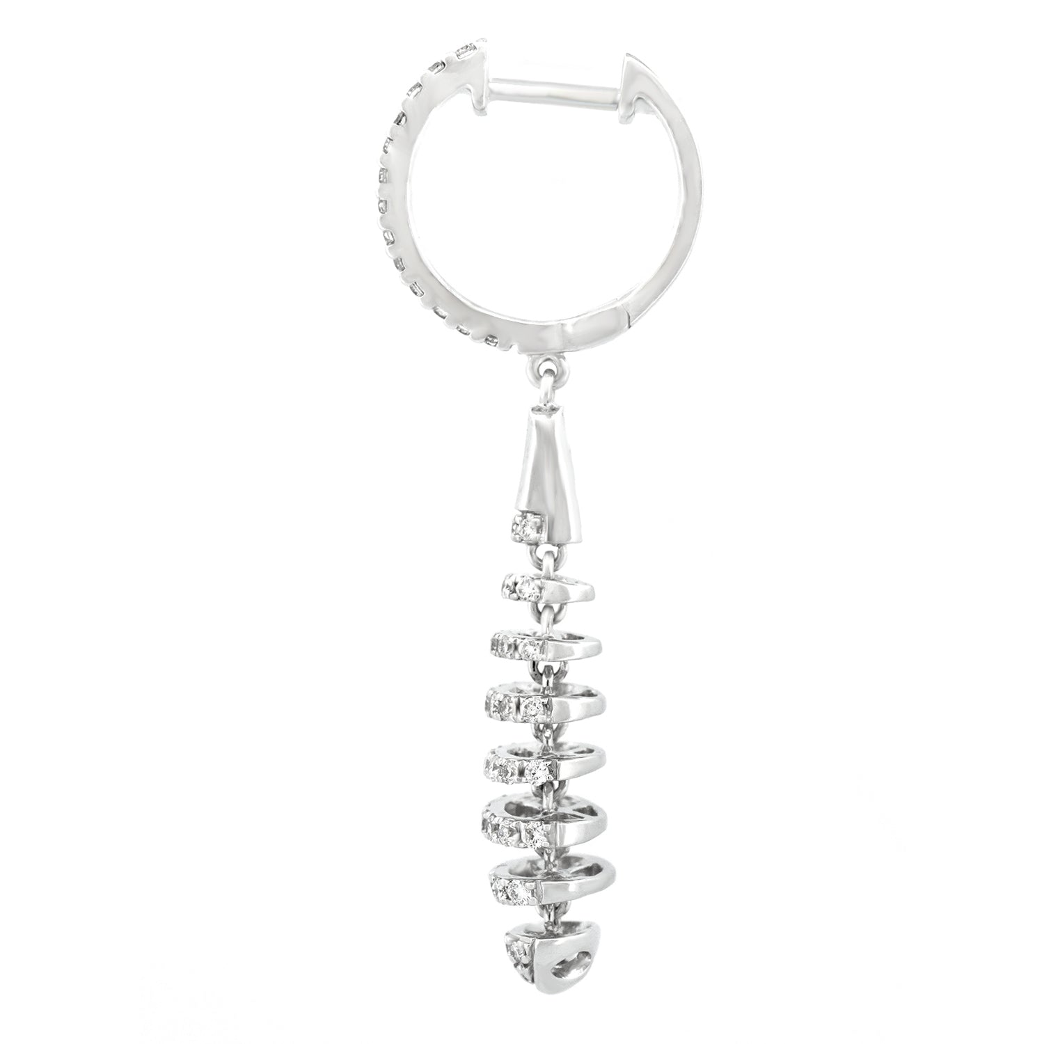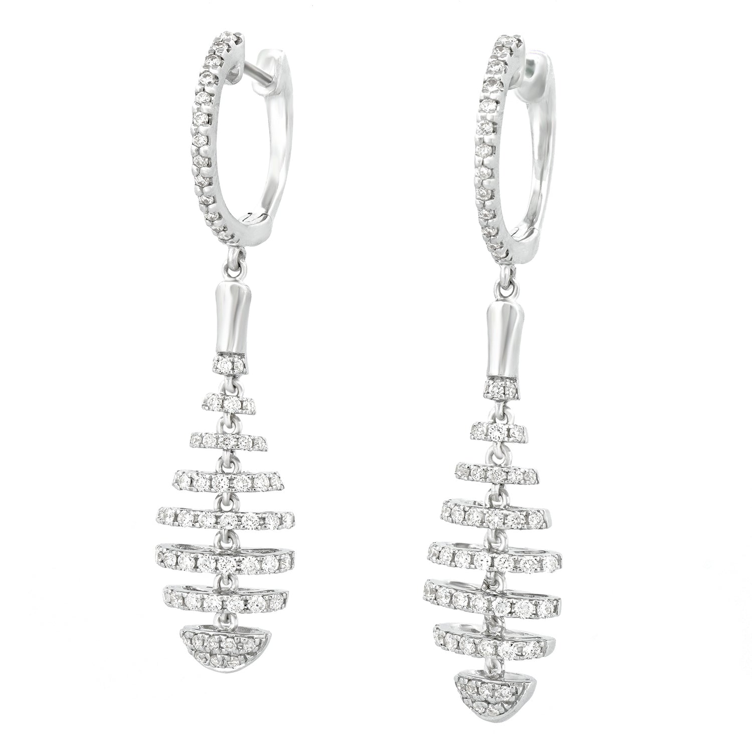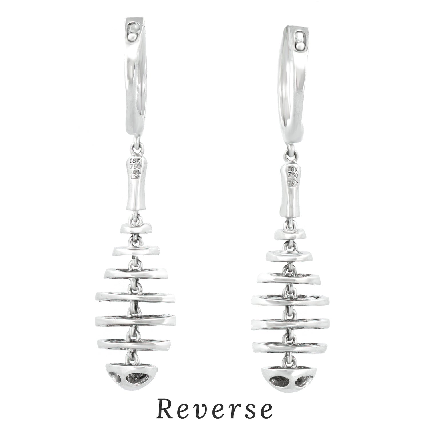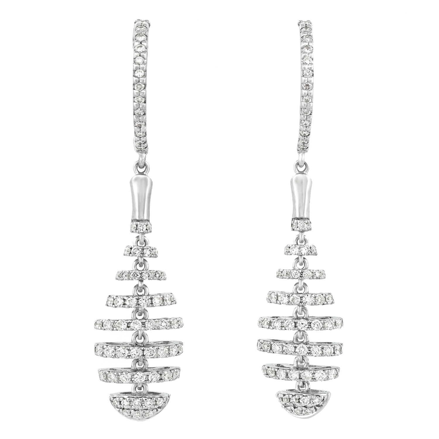 Circa 18k, c1990s, American. Set with .75 total carats of brilliant white diamonds (G color, SI1 clarity), these 18k white gold earrings have fabulous shimmery movement from top to bottom. The look is everyday glamour. Finely fashioned, they are in excellent condition.