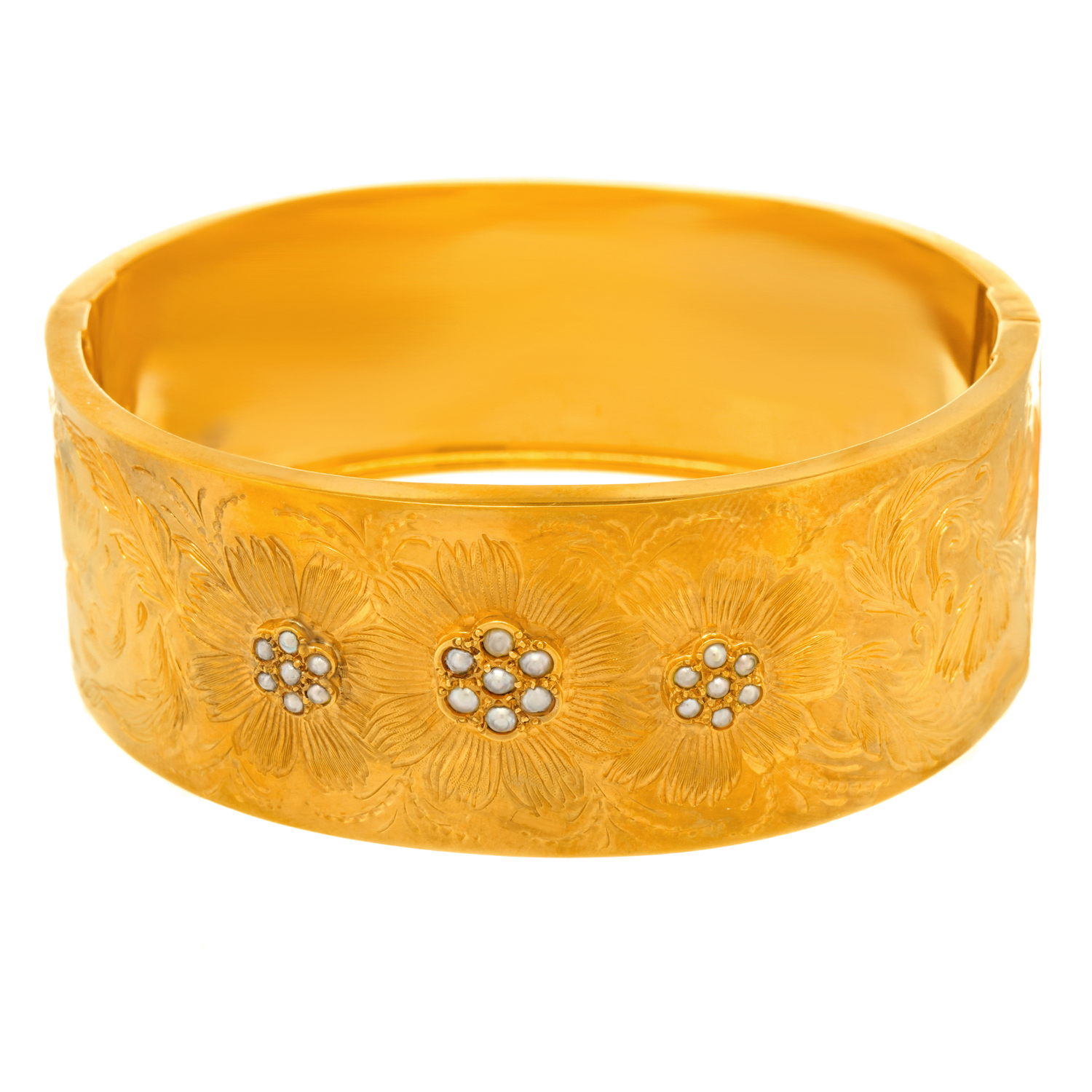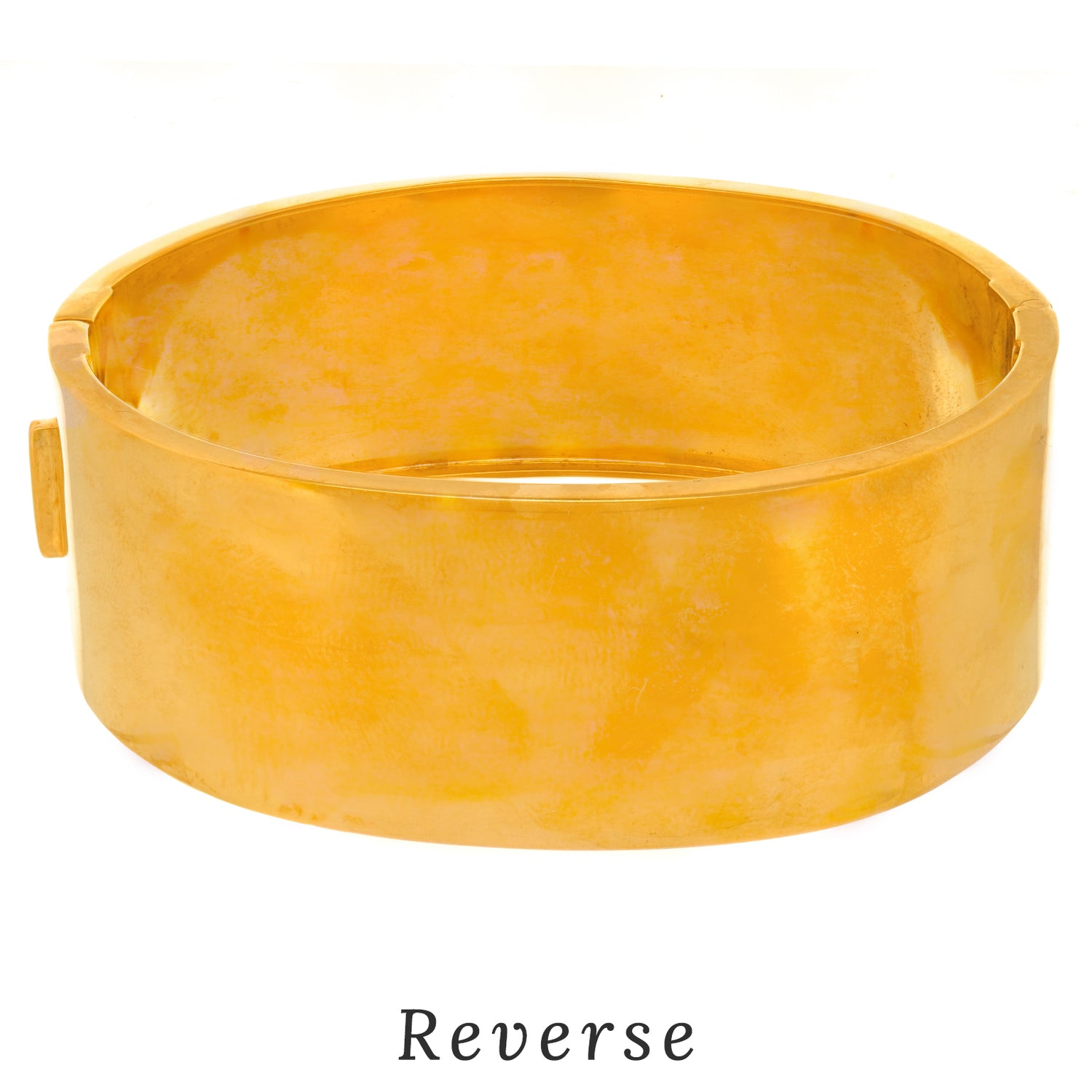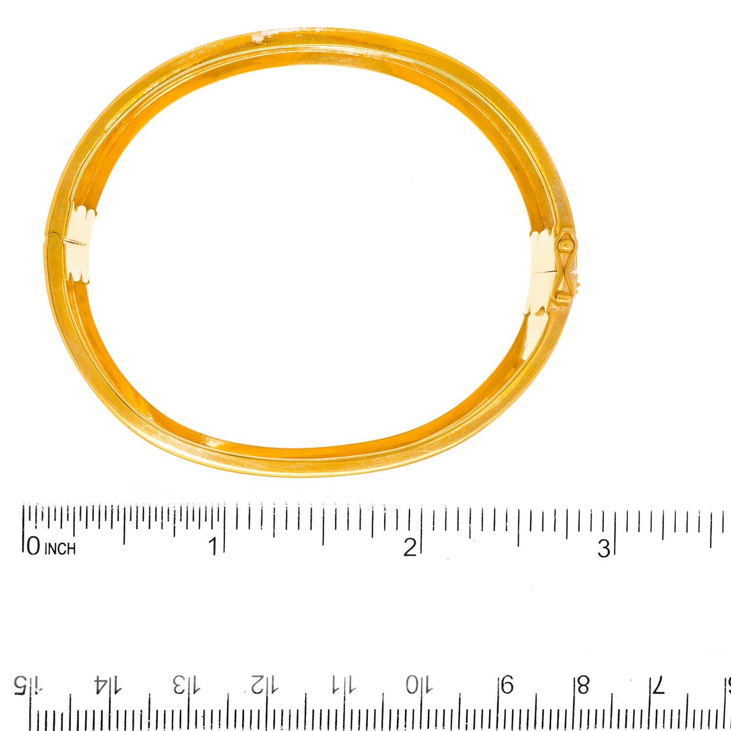 Circa 1940s, 18k, by Amiel, Paris, France. Impeccably styled for everyday wear, this eighteen-karat gold bangle is as fashionably relevant today as it was chic 60 years ago. Known for specializing in Victorian styles, Amiel of Paris dates back to the 19th century. This bangle is beautifully made and in especially crisp condition. (Excellent condition.)