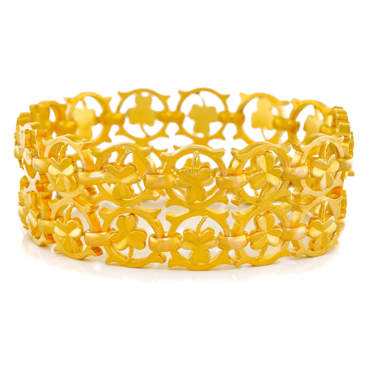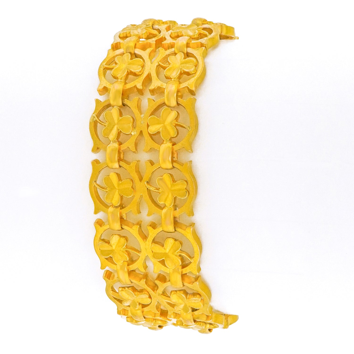 #24505 - French Art Deco Cloverleaf Motif Gold Bracelet