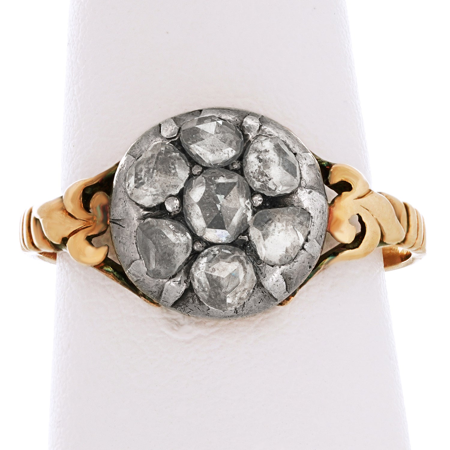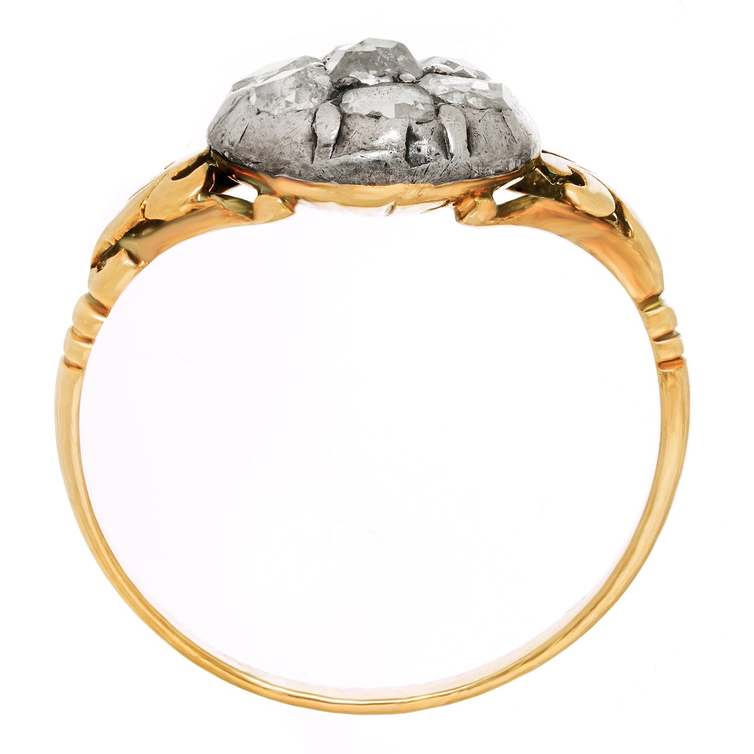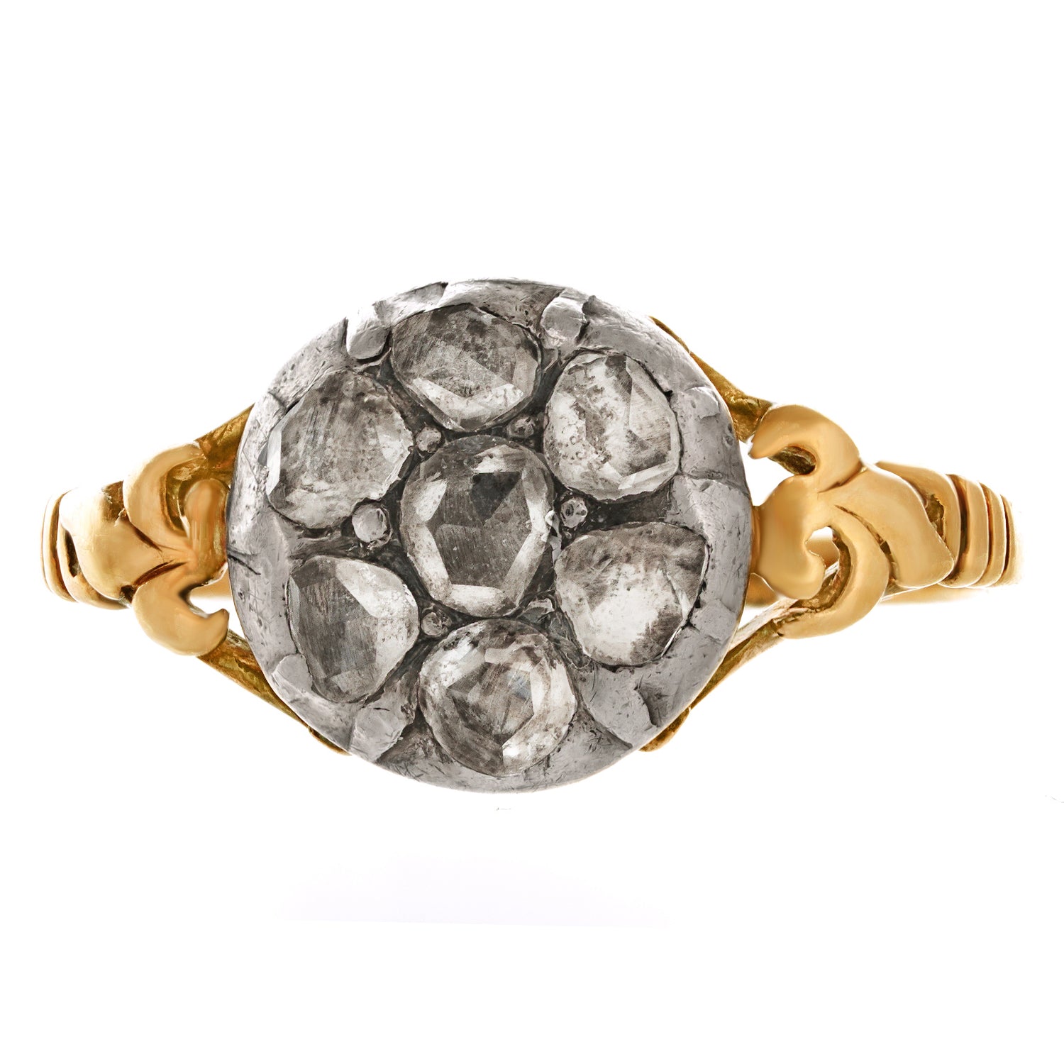 Stones: .75 carats total weight of rose-cut diamonds