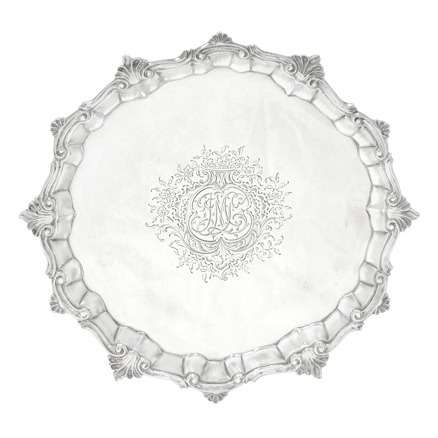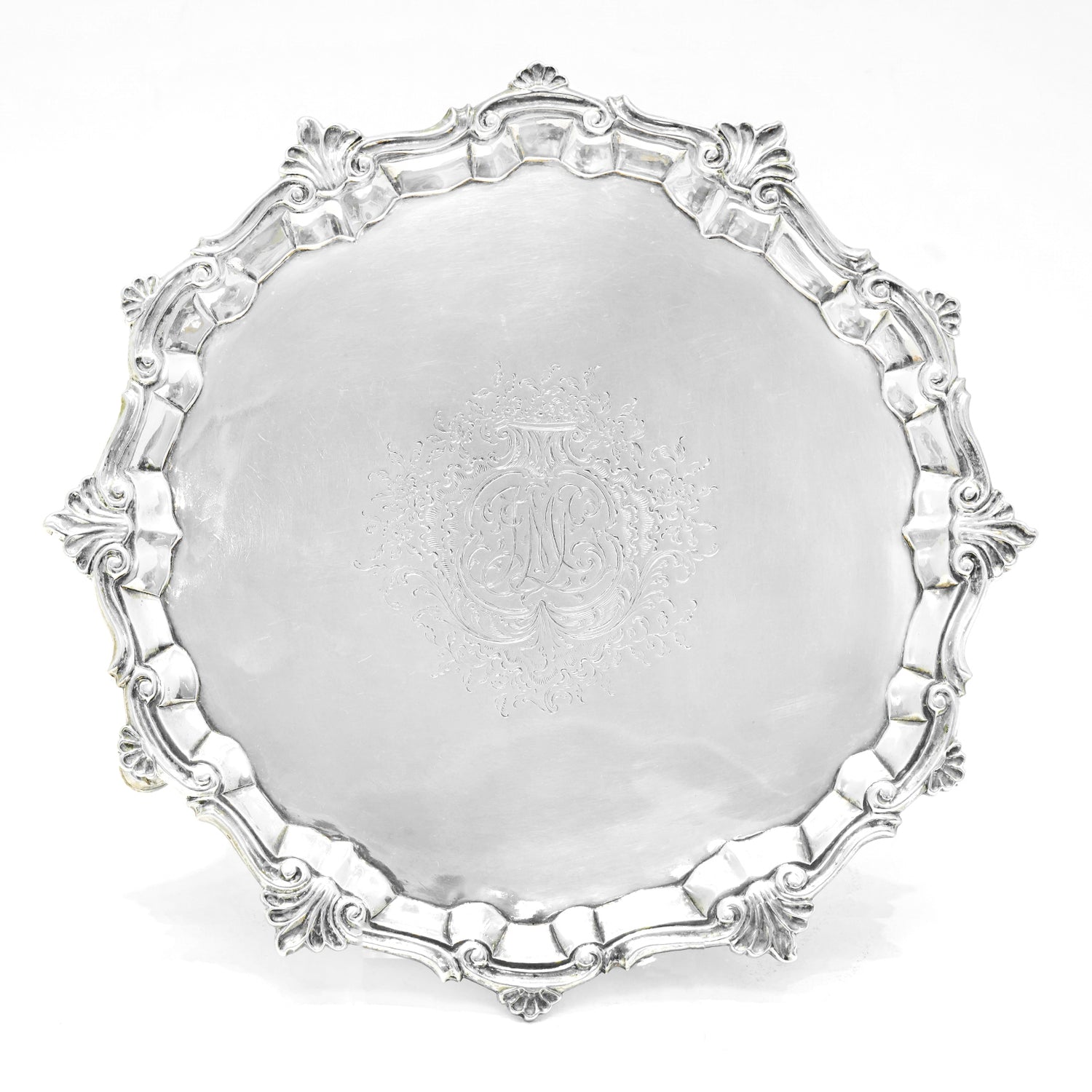 #14825 - Georgian Sterling Silver Salver, London, by Wm. Peaston c1754