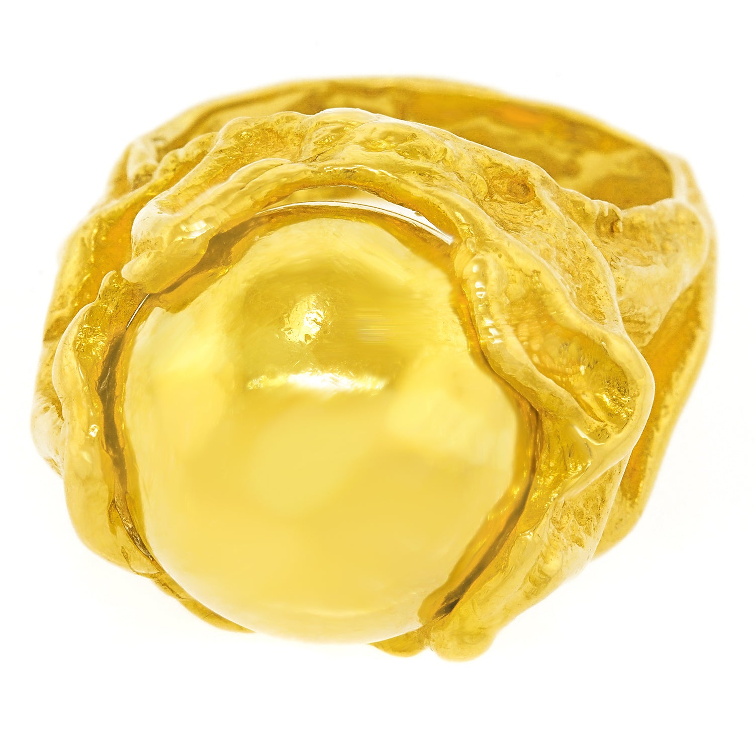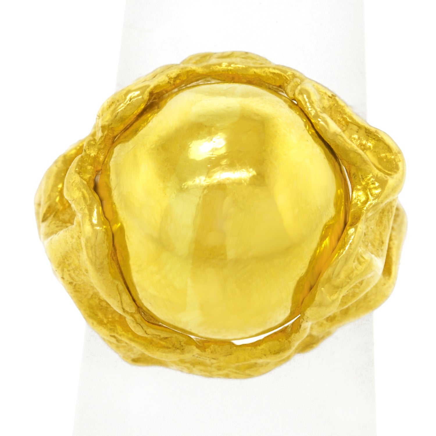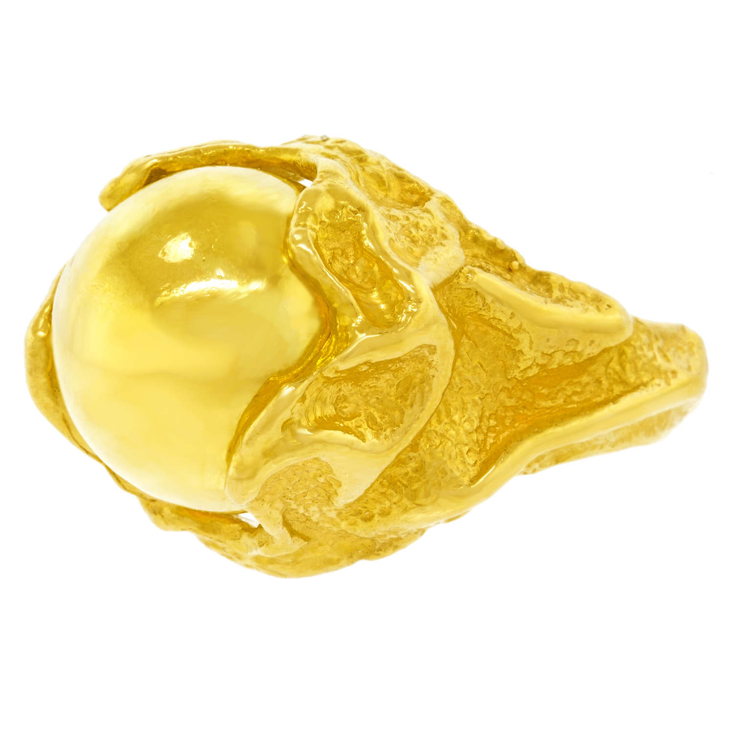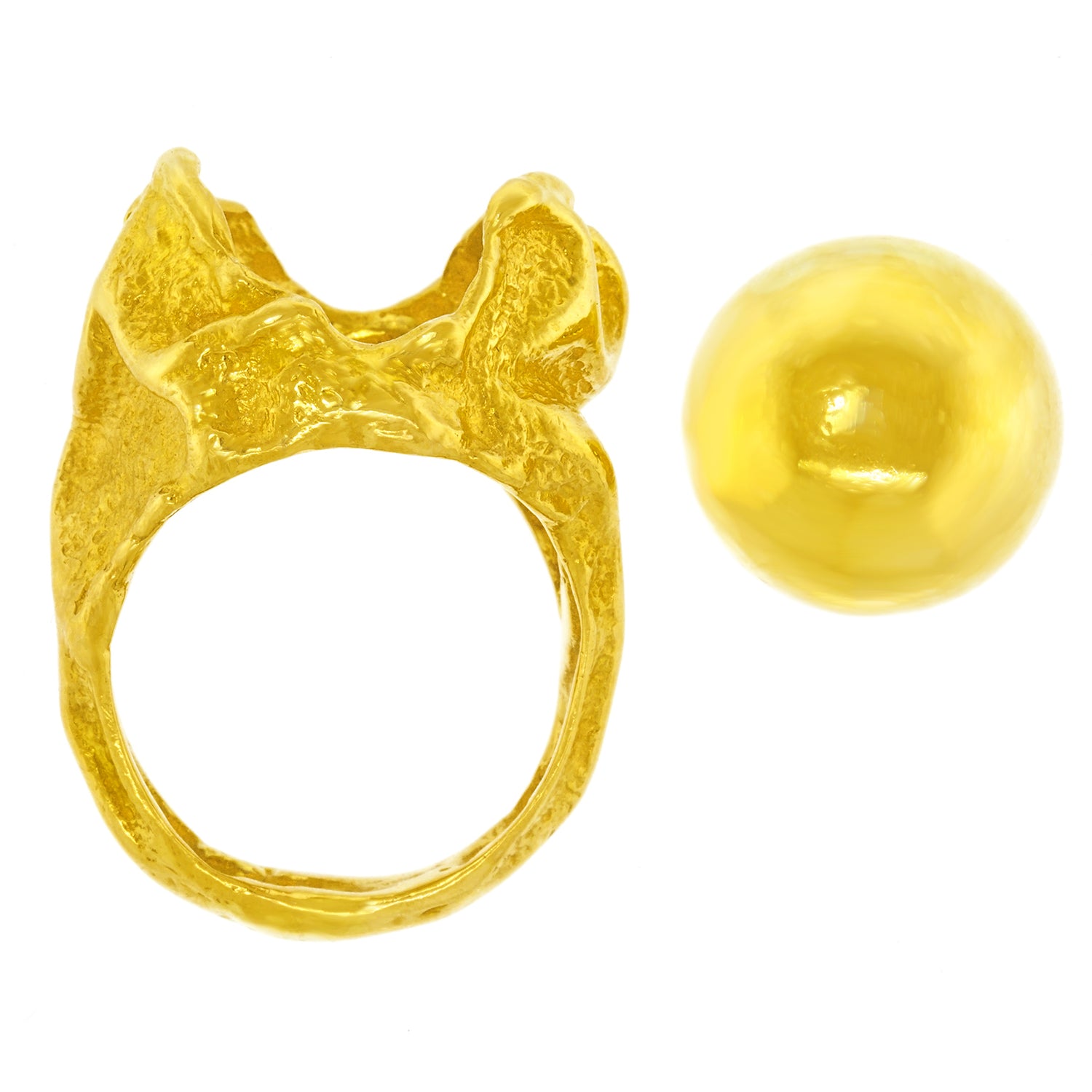 Circa 1970s, 18k, by Gilbert Albert, Switzerland. From the catwalk at Fashion Week to the steps of the Art museum, Gilbert Albert’s flair for beyond-chic design has been influencing modern jewelry since the 1950s. This 18k gold ring is a miniature abstract sculpture set with an interchangeable eighteen-karat yellow gold sphere. Other gemstone spheres can be obtained. Excellent condition.