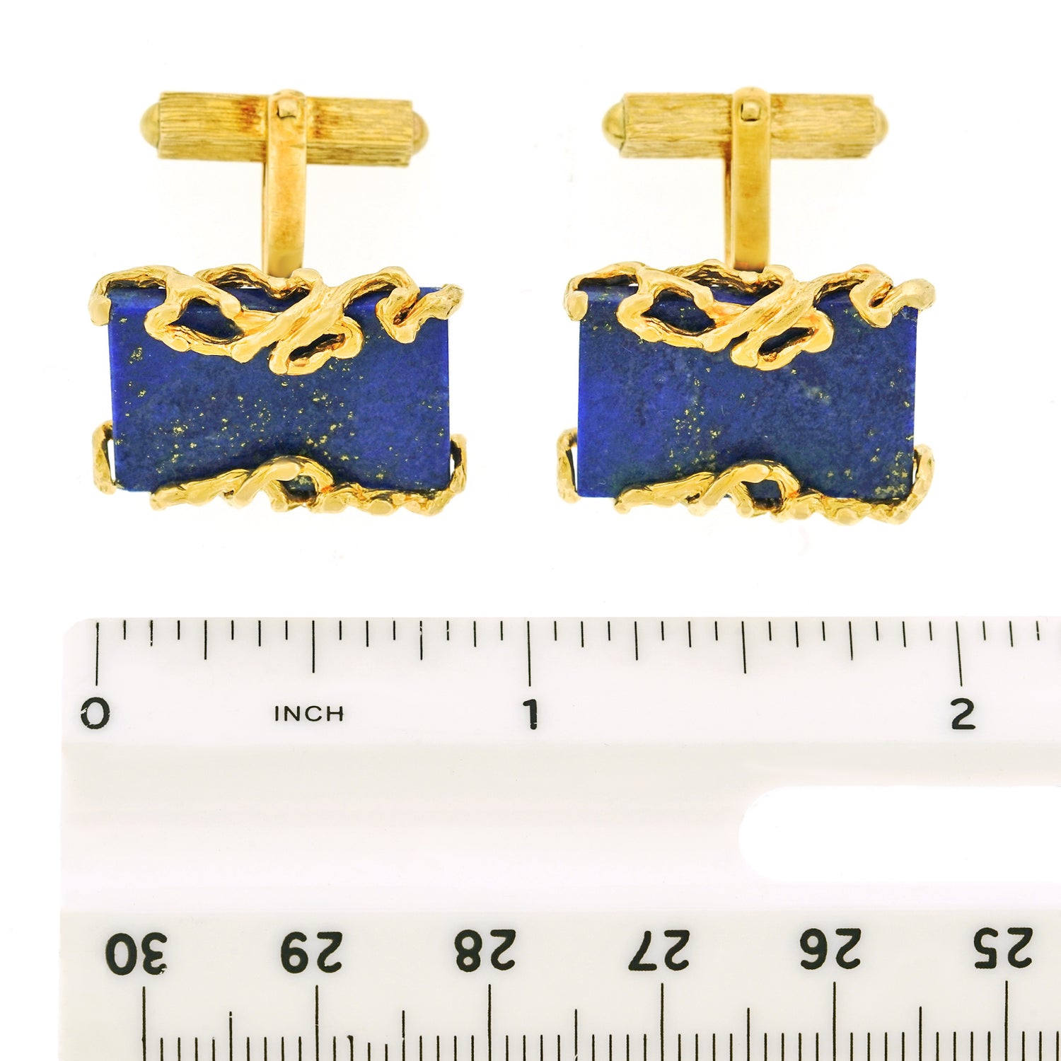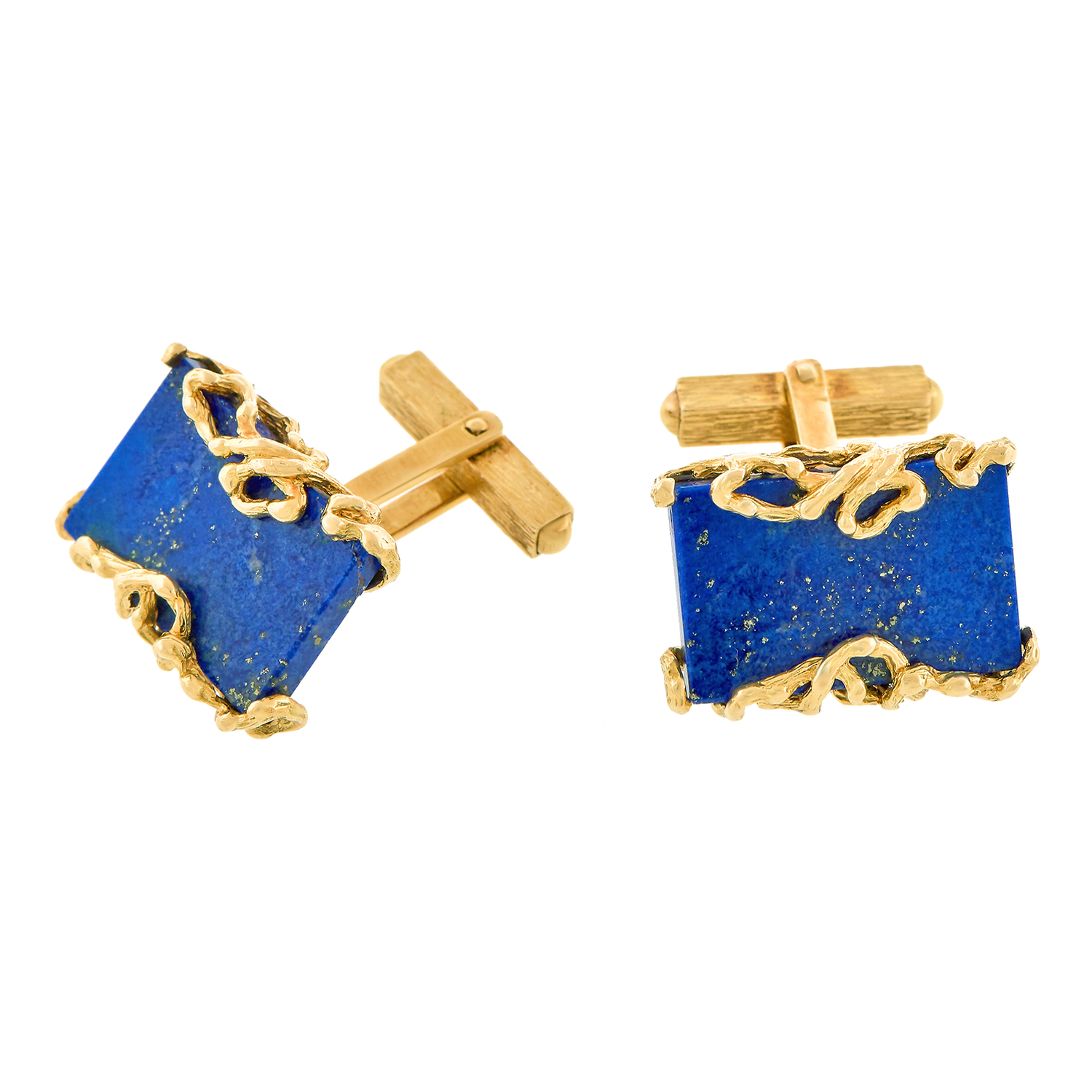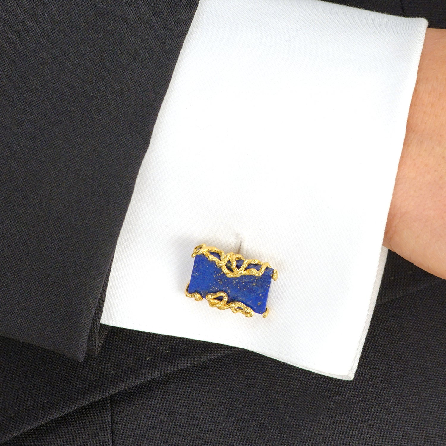 Circa 1980s, 18k, Gilbert Albert, Geneve, Switzerland. Made in Gilbert Albert's signature style, these abstractionist cufflinks are sublime. Their sophisticated look is underscored by vibrant blue natural lapis. Modern art to-go, Gilbert Albert's pieces are collected by connoisseurs and museums alike. Meticulously fabricated, they are in excellent condition.