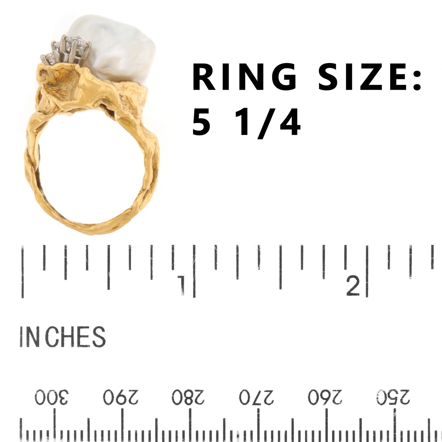 Ring Size: 5 1/4, it can be sized with difficulty.
