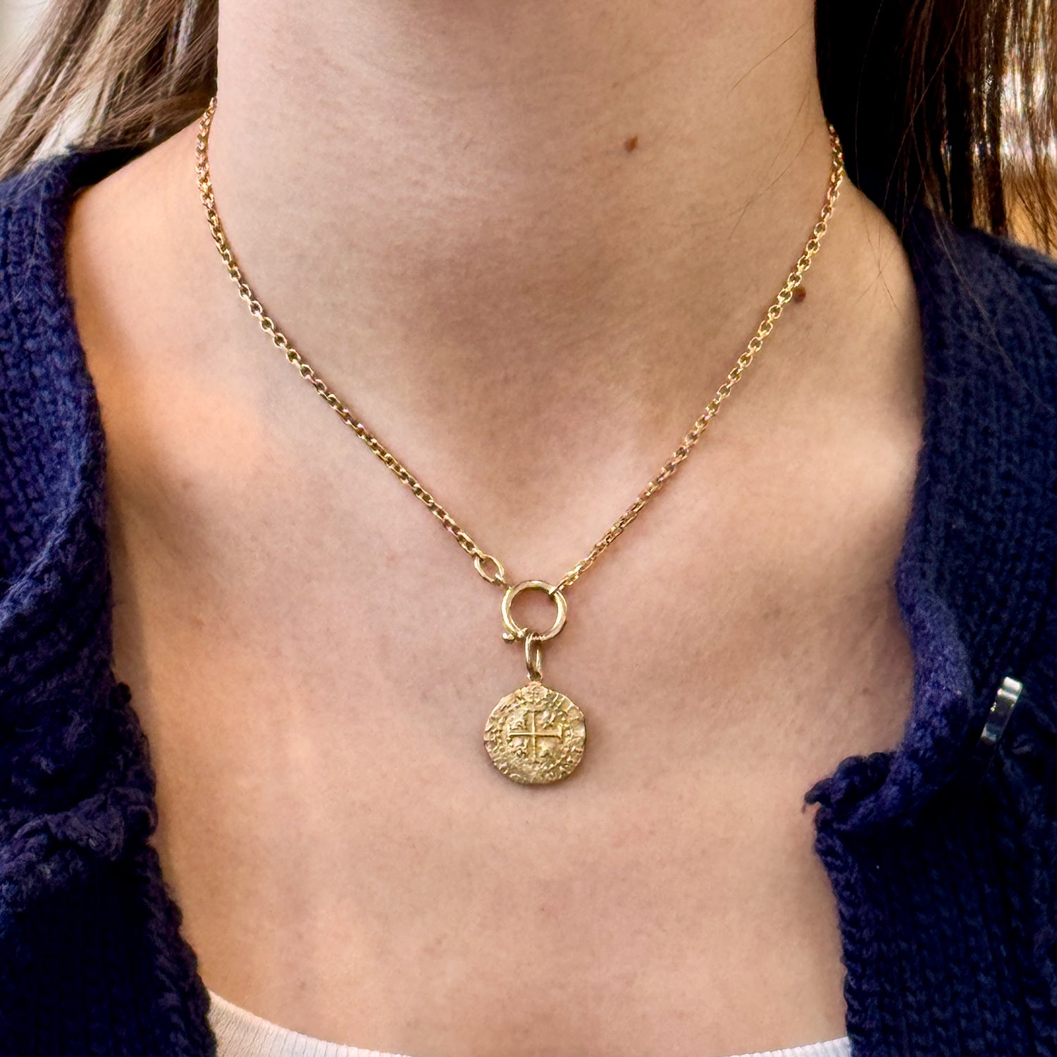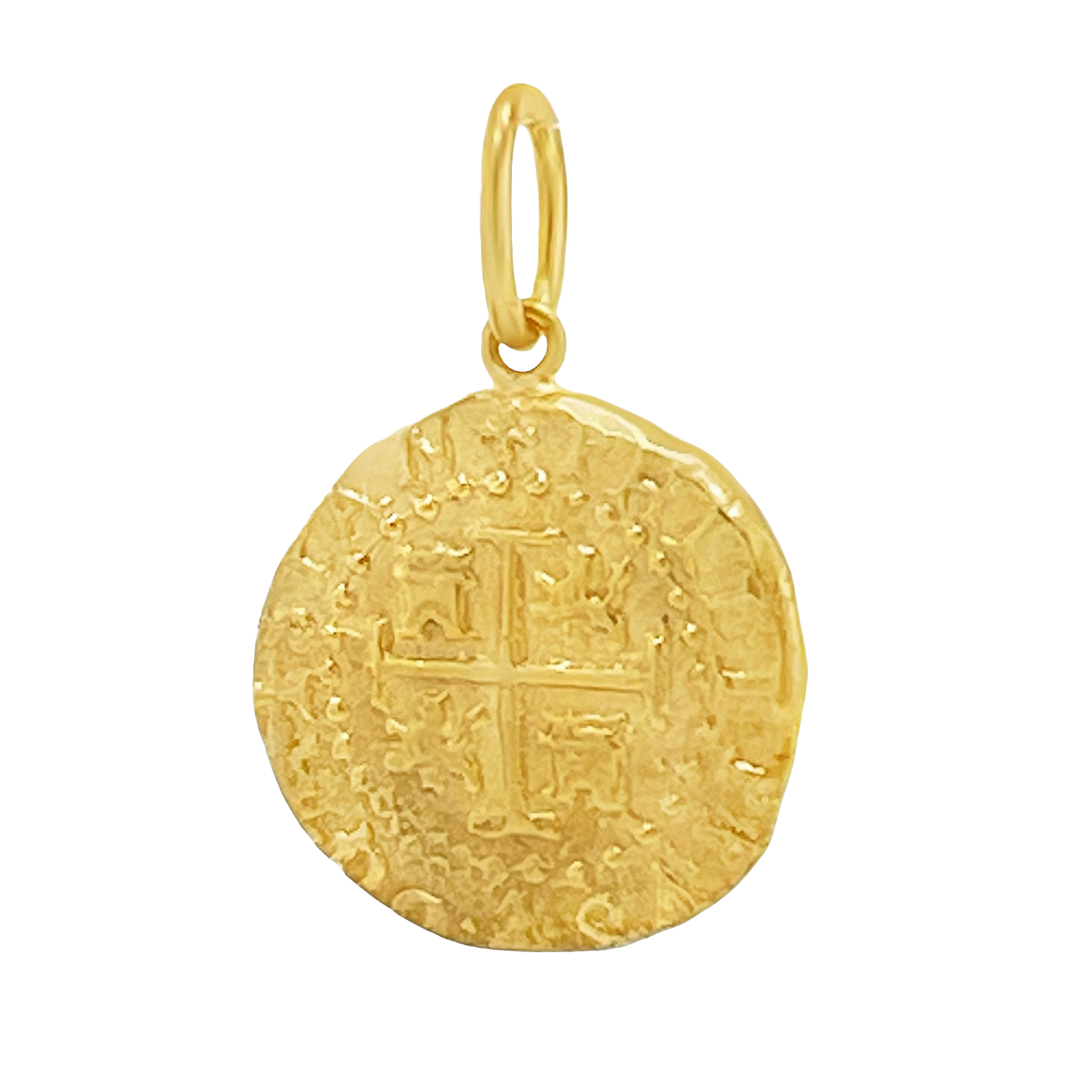FAUX GOLD DOUBLOON MOTIF TALISMAN. THE SIZE OF A NICKEL. VERY FUN.