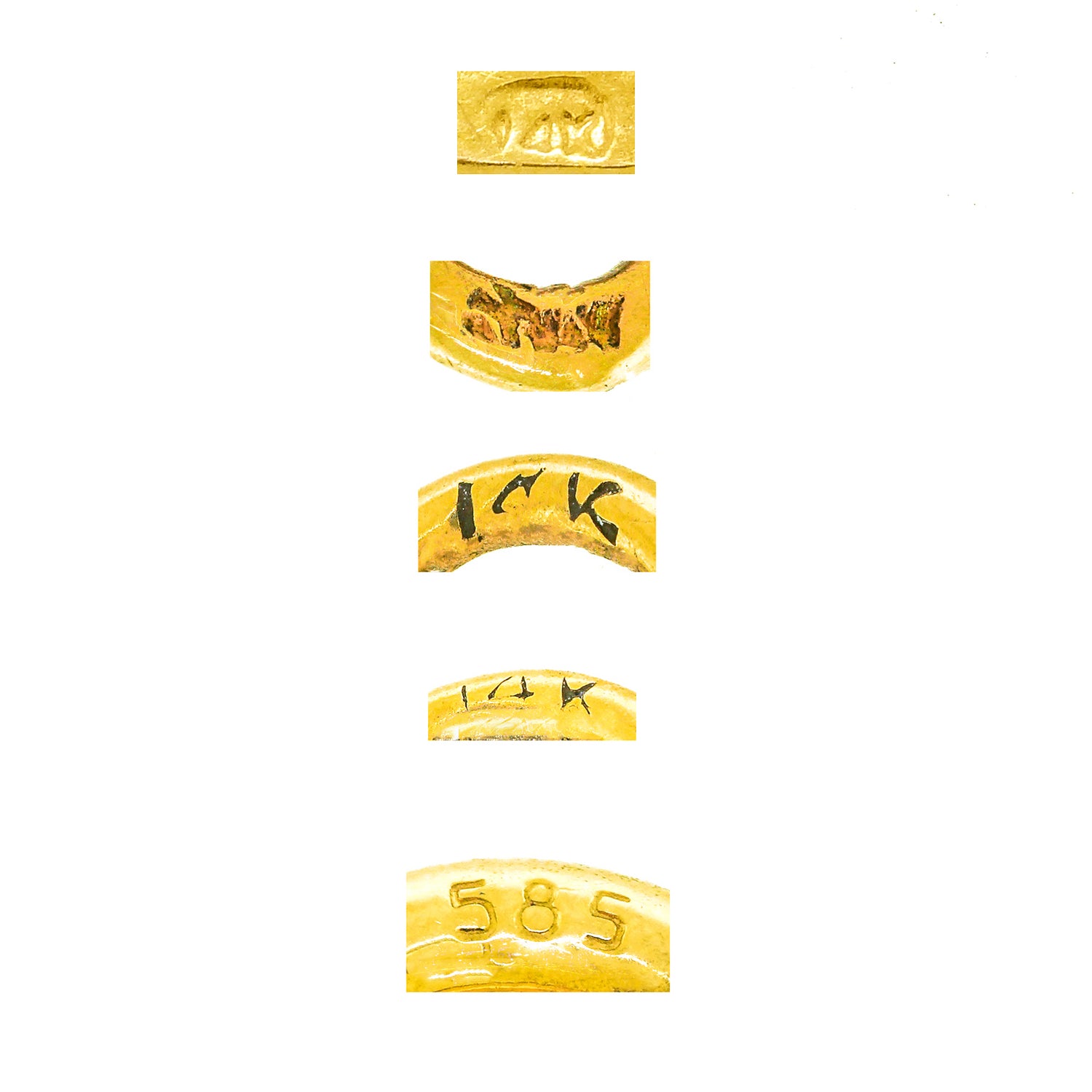Hallmarks: 14k, 14k, 585 for 14k, 14k, and rubbed hallmark