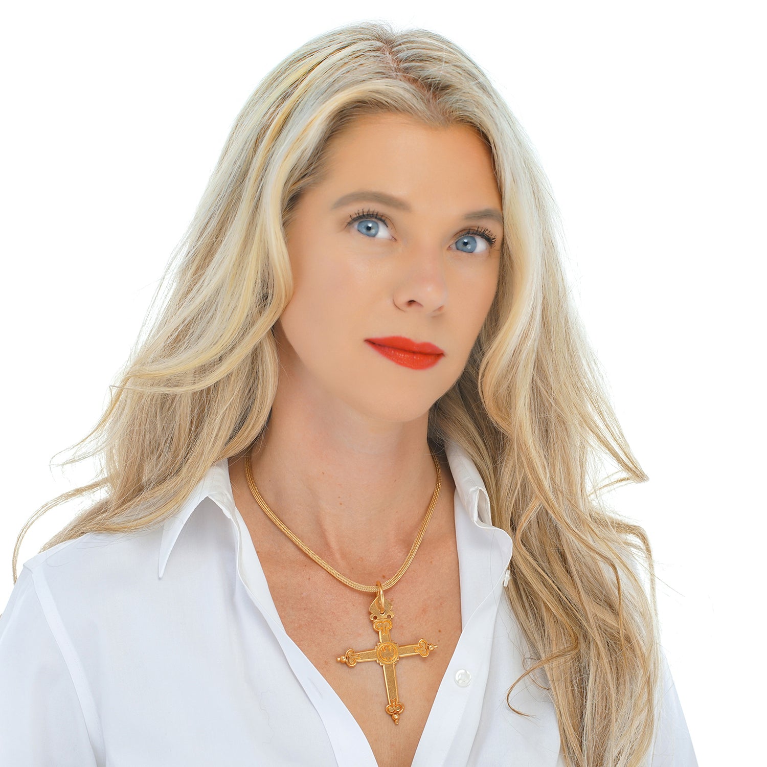 Circa 1830s-1840s, 18k, France. This nineteenth-century Gothic revival cross was styled to speak reverently across the ages. Heavy and well-made in 18k yellow gold, it has beautiful hand-forged details. Excellent condition.