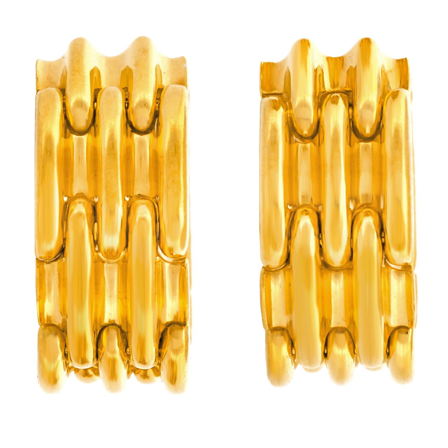 Circa 1980s, 18k, by Gubelin, Switzerland. These wonderful 18k yellow gold earrings by the renowned house of Gubelin have an understated stylish look. Superbly crafted, they effortlessly go from the sidewalk to cocktails at six. Excellent condition.