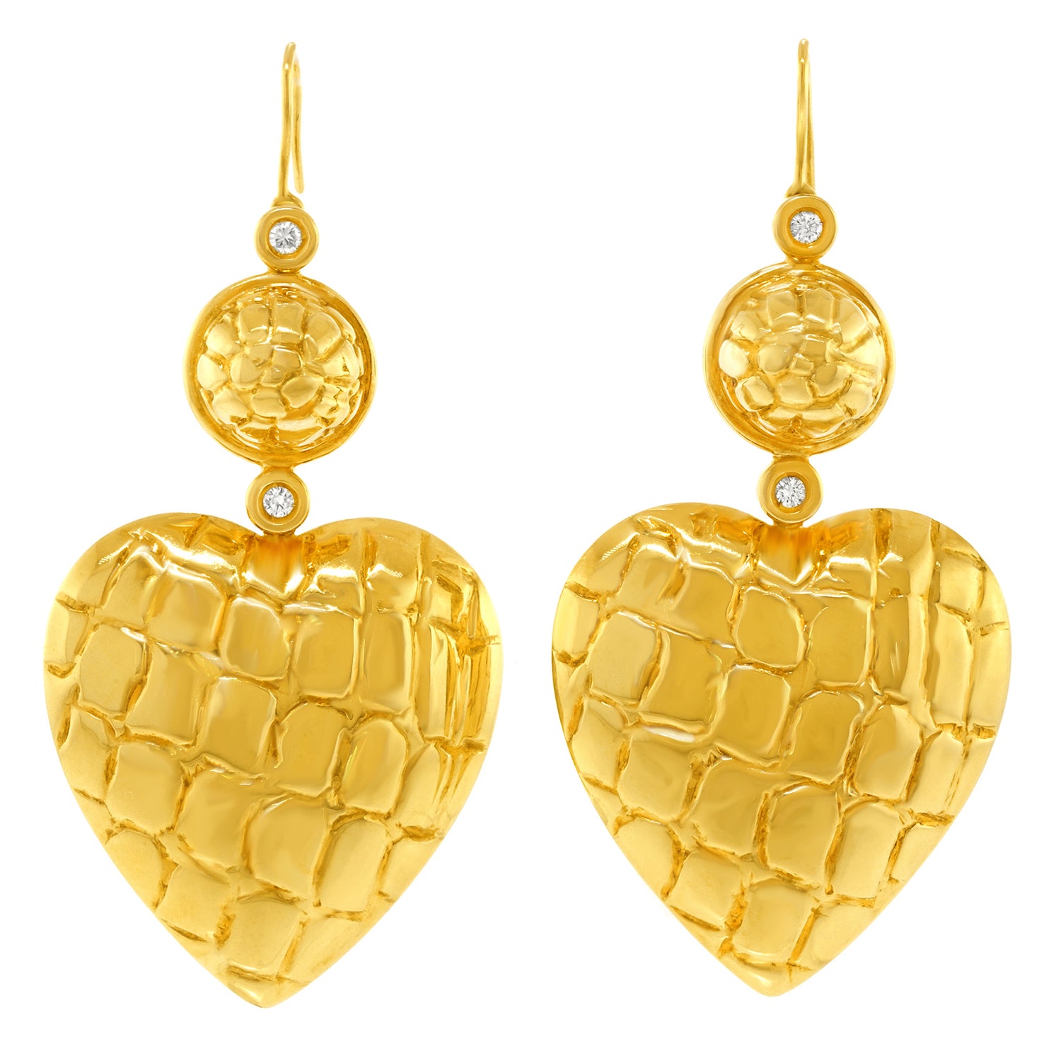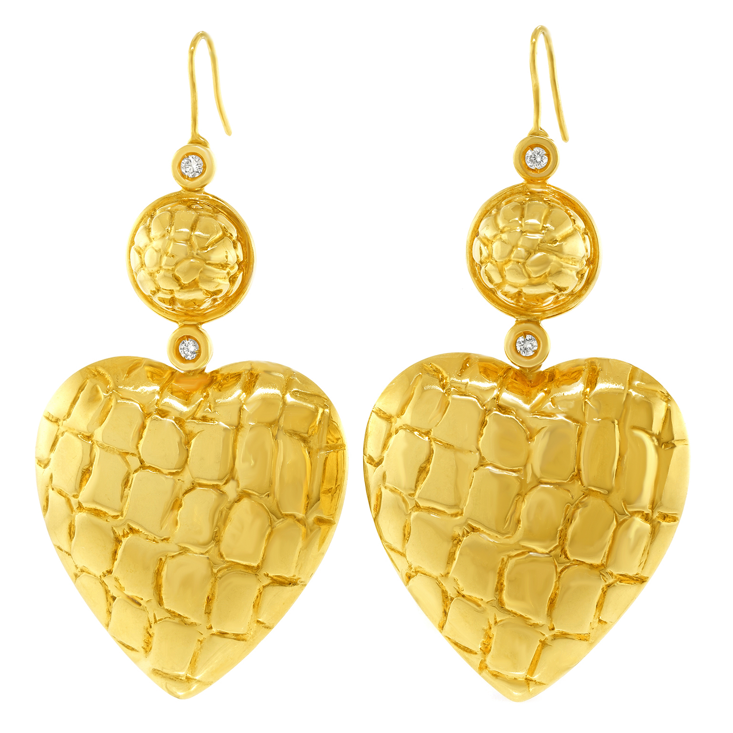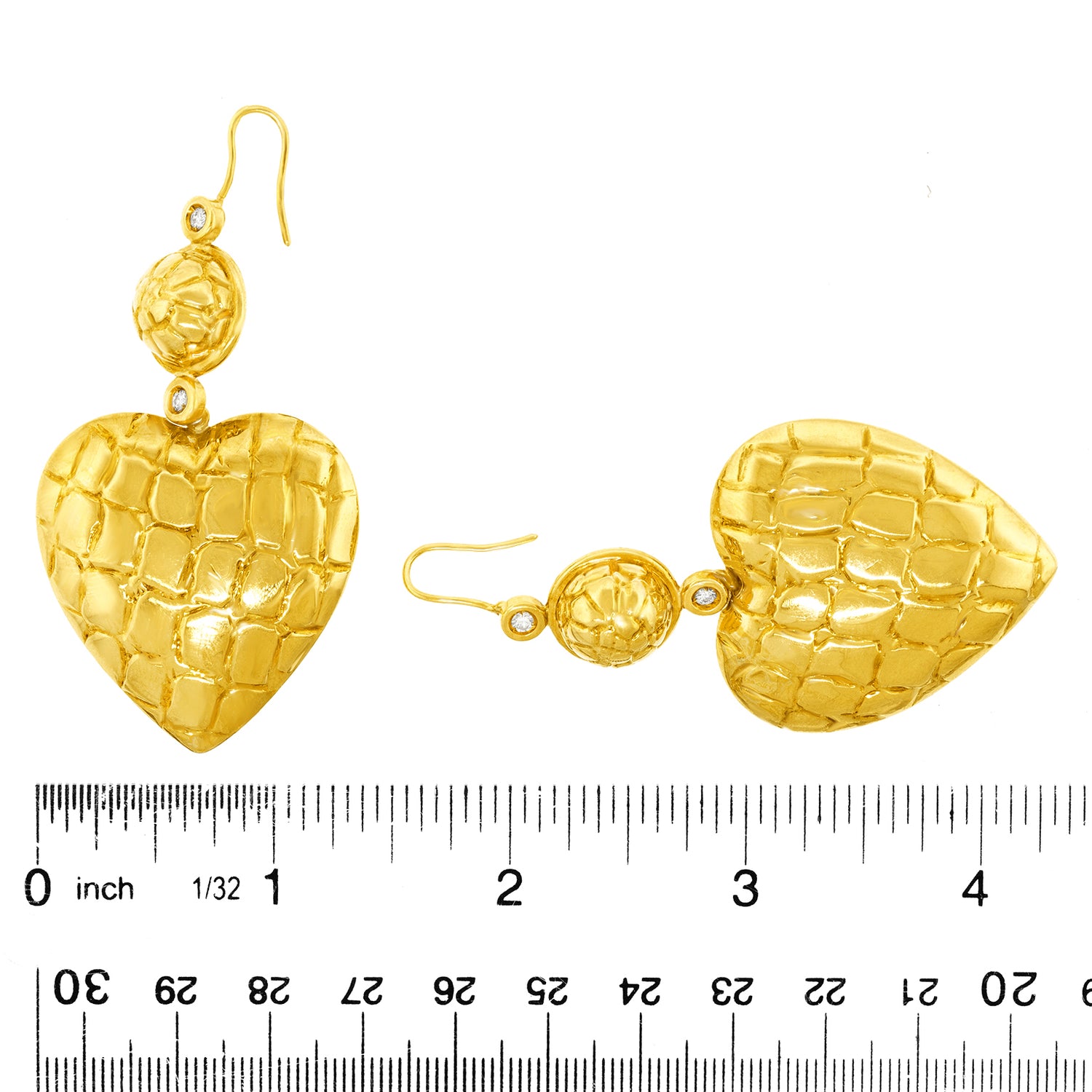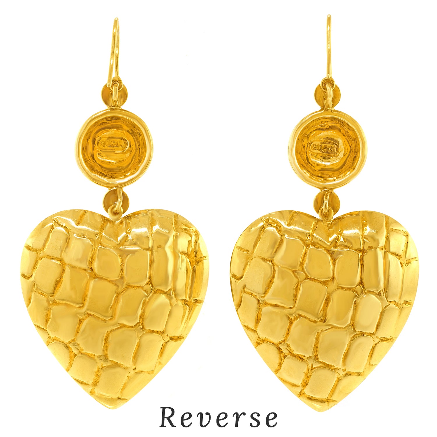 Circa 1970s, 18k, by Gucci, Italy. These bold seventies heart earrings, with their daring size and pop art style, have a playful chic that dresses up or down with ease. Texture and dimension complete the look as only Gucci can! Meticulously fabricated in polished 18k gold, they are comfortable. Excellent condition.