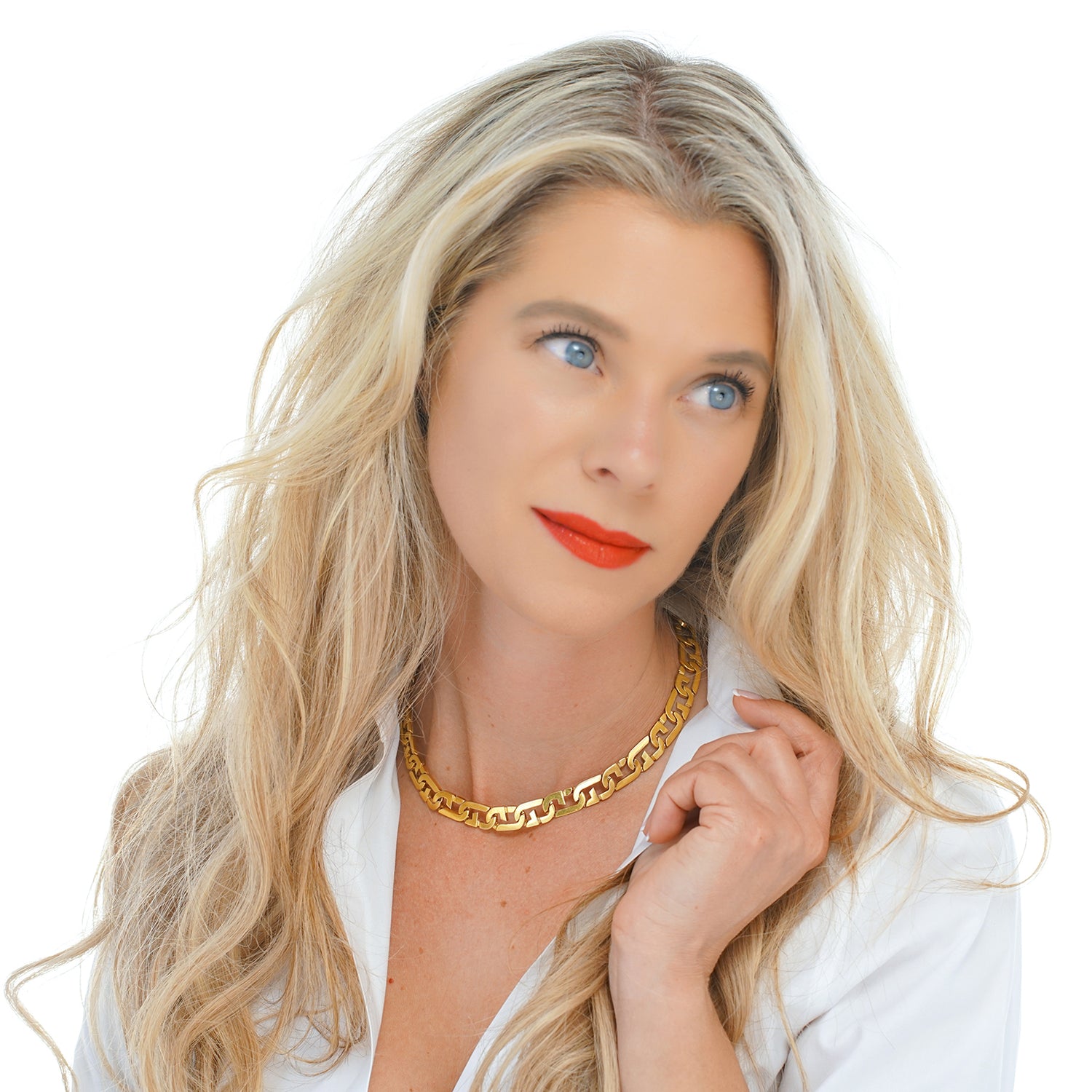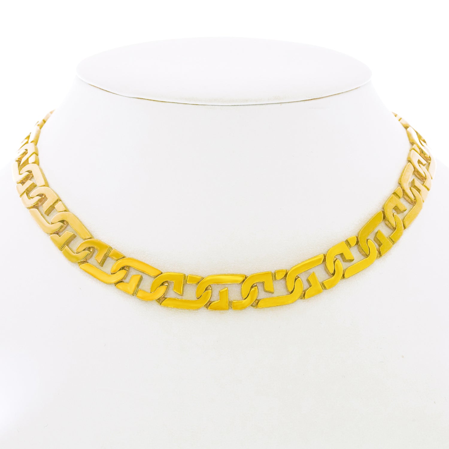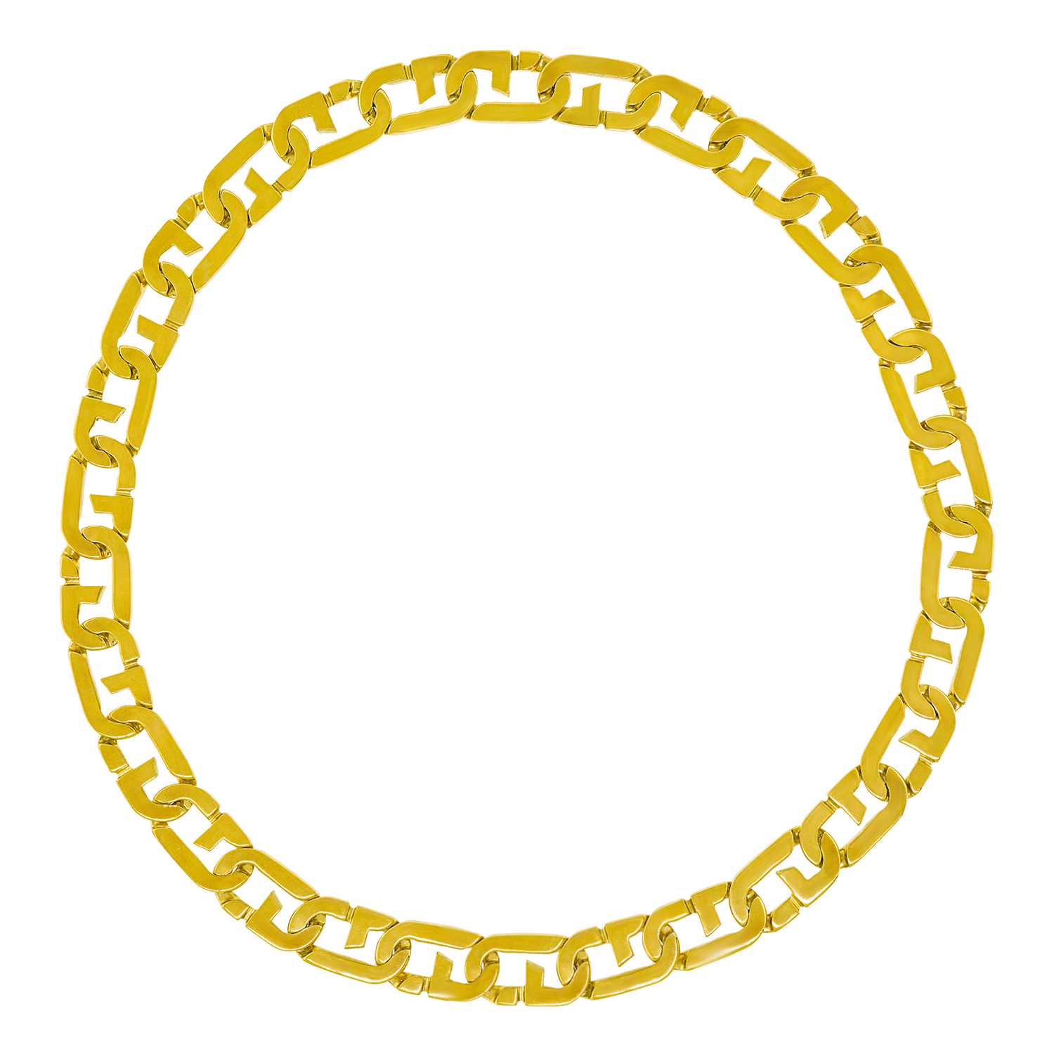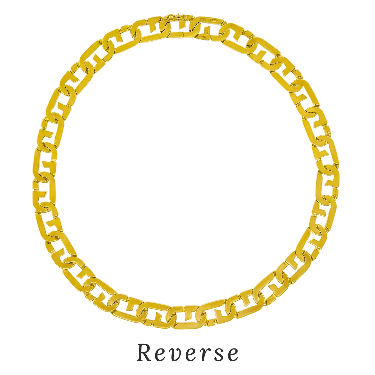 Circa 1980-90s, 18k, by Gucci, Italy.   Effortlessly chic, this iconic necklace features a sleek modernist Gucci link. So Gucci, so Italian! Its easy-breezy eighties style, has a go-anywhere, goes-with-anything attitude. Well-made, it will quickly become a signature go-to piece. Excellent condition.