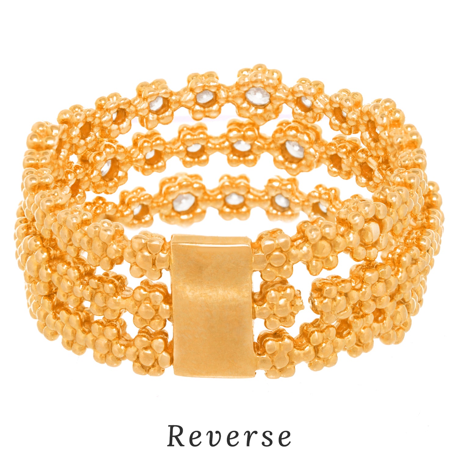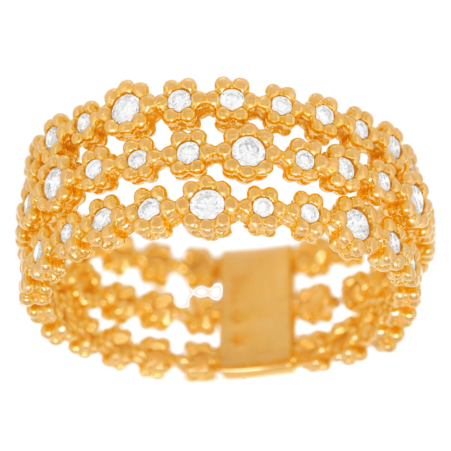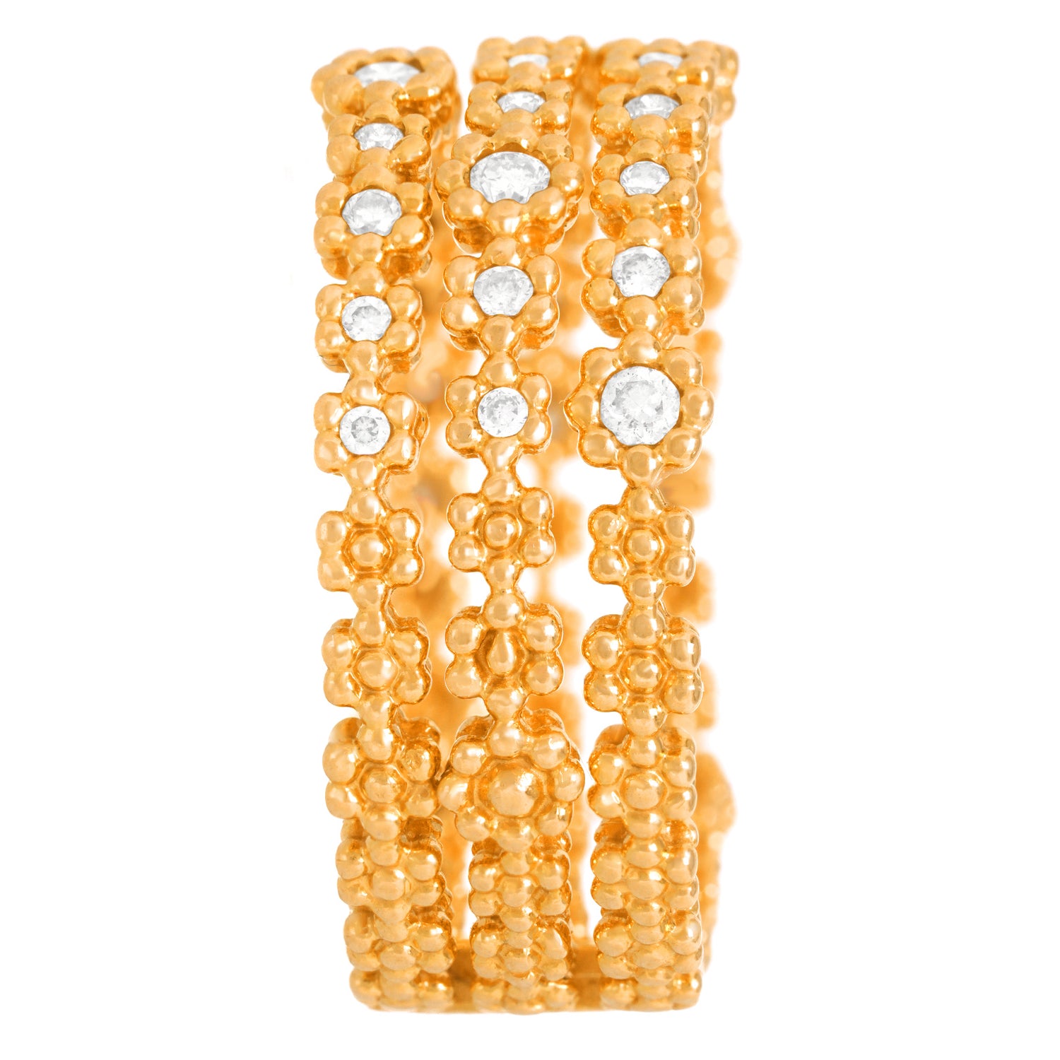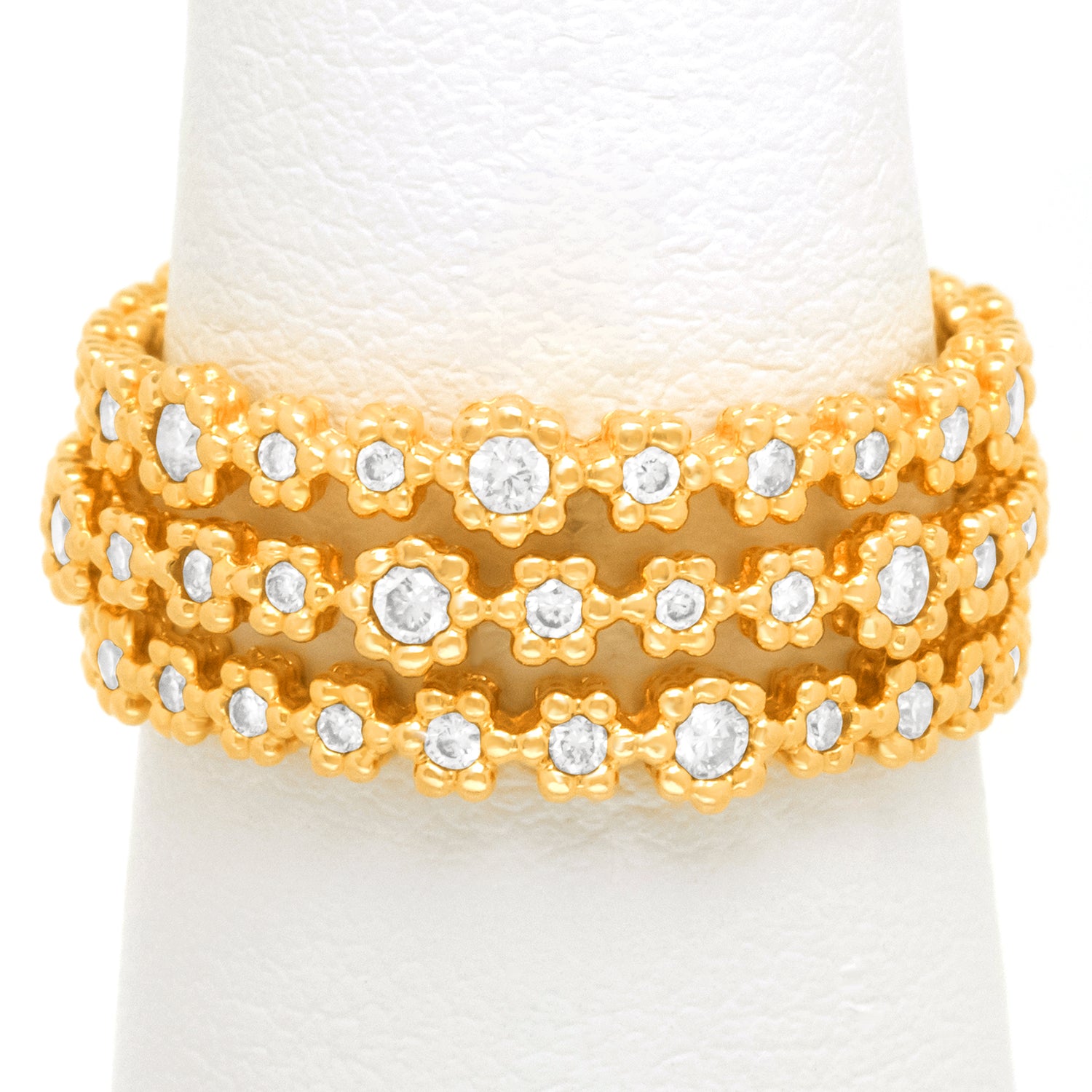 Circa 2000s, 18k, by H. Stern, Brazil. This diamond-set yellow gold ring is brilliant everyday fashion. Flower power sparkles with .75 carats of white diamonds (G color, VS clarity) set into delightful gold flowers. Perfect for any moment, any style, any mood, this jewel will become part of your signature style. From the renowned house of H. Stern in Brazil, this 18k ring is in excellent condition.