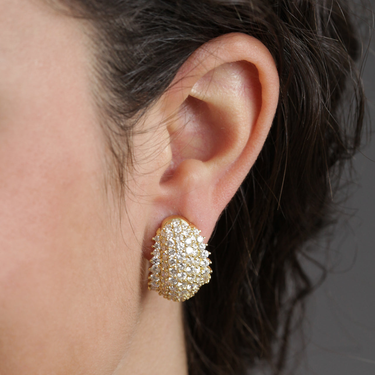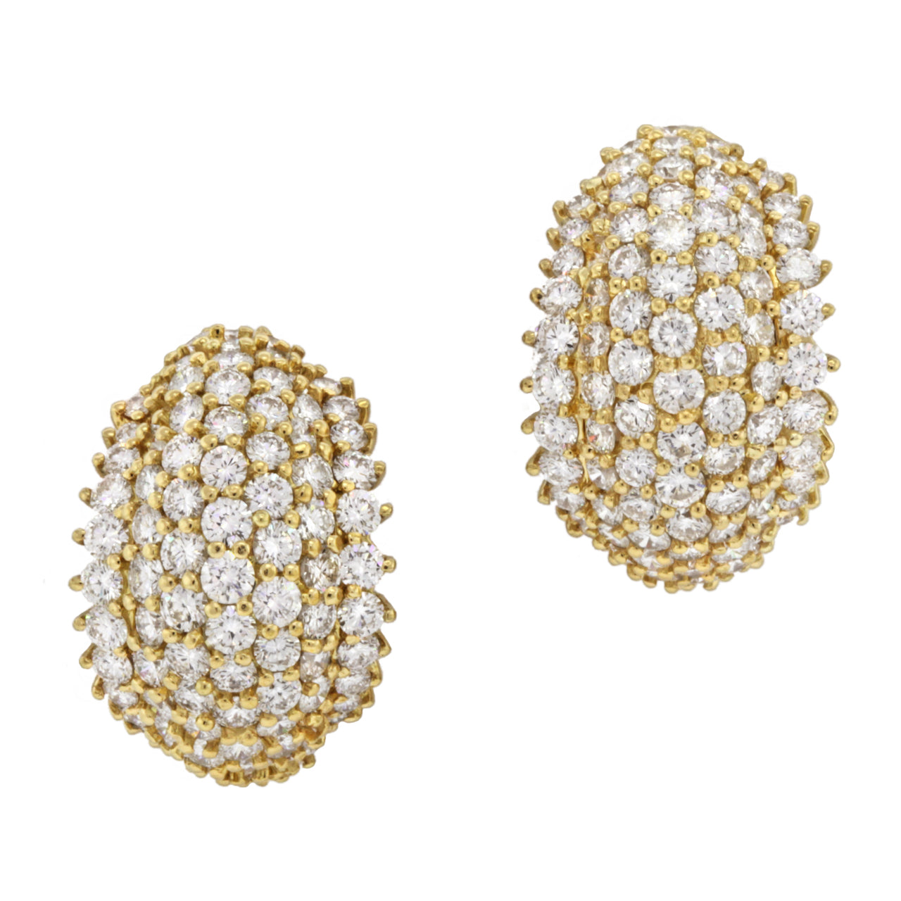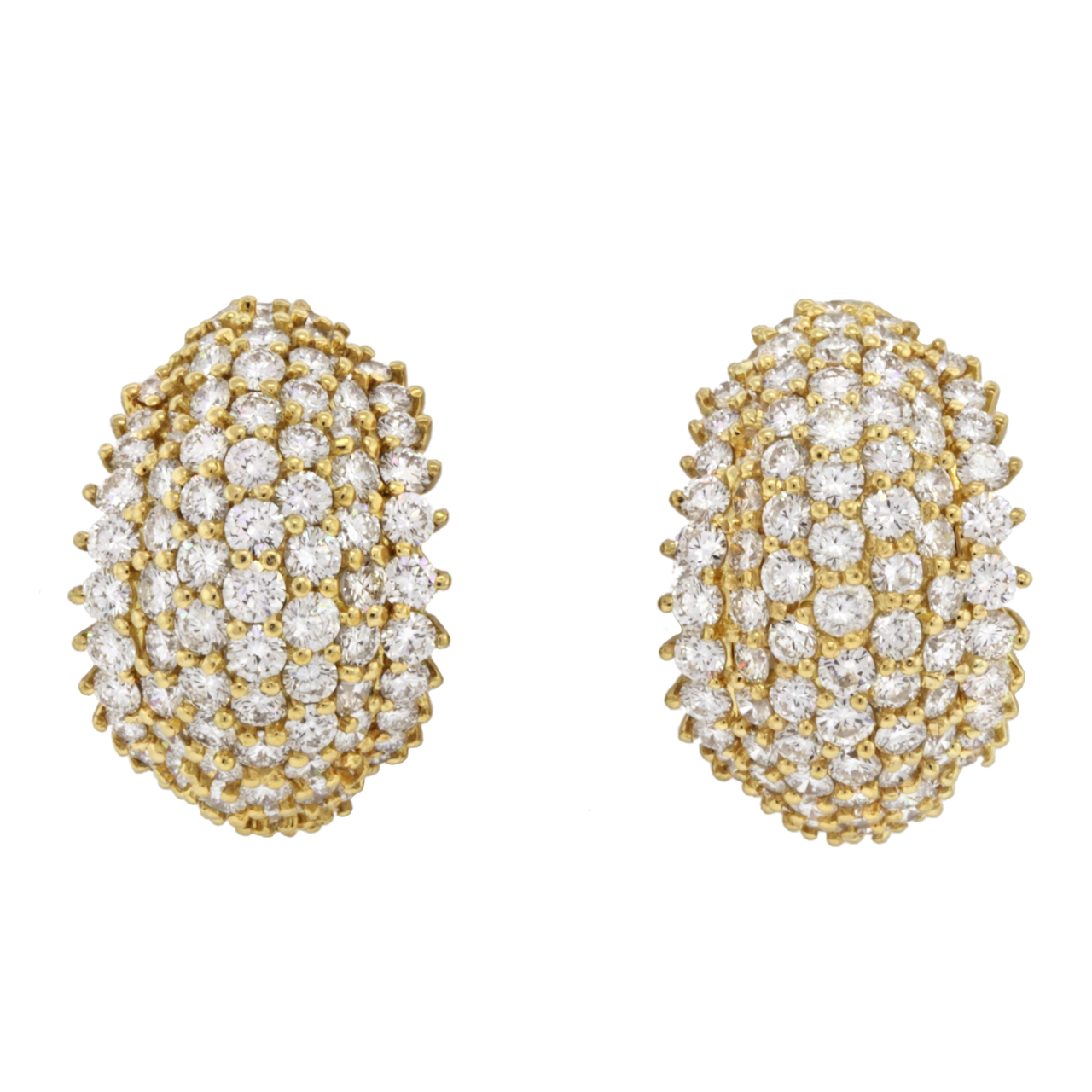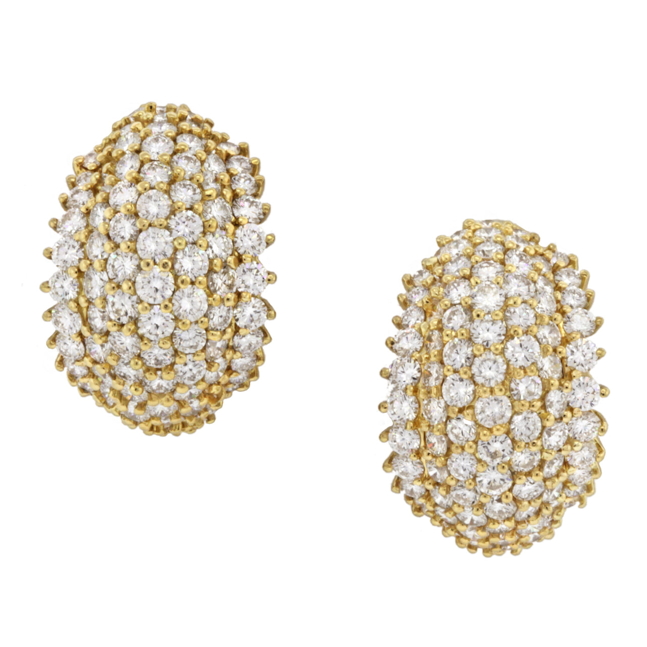 Circa 1960-70s, 18k, Hammerman Brothers, New York.  Diamonds, Diamonds, Diamonds!  Sometimes its just all about the diamonds! These resplendent earrings have it all -- style, quality, and luxury -- Oh! -- and did I mention the diamonds!  A classic look from one of America's premier jewelers, they are set with 8 carats of the finest white diamonds. Hammerman Brothers of New York has been producing jewelry of the best quality for over 70 years. Excellent condition.