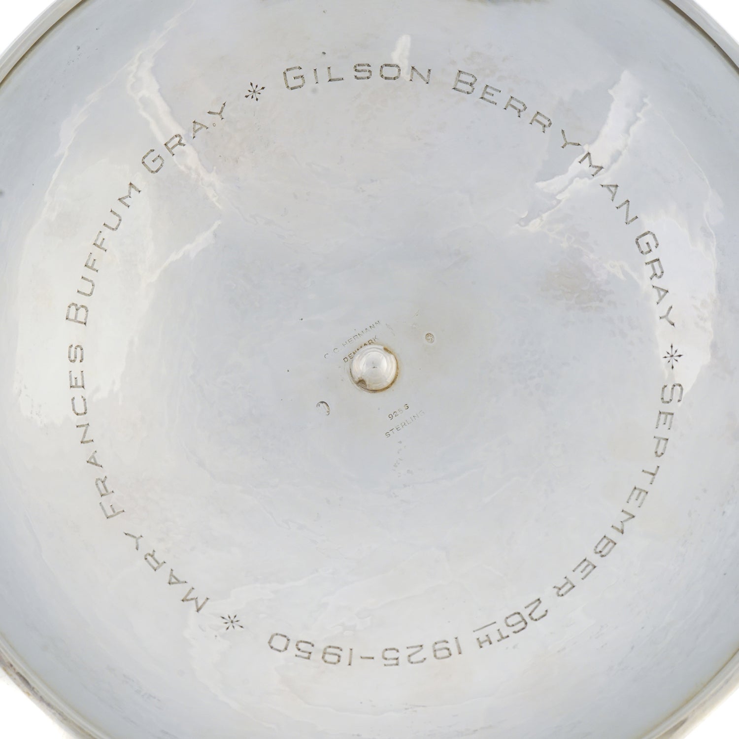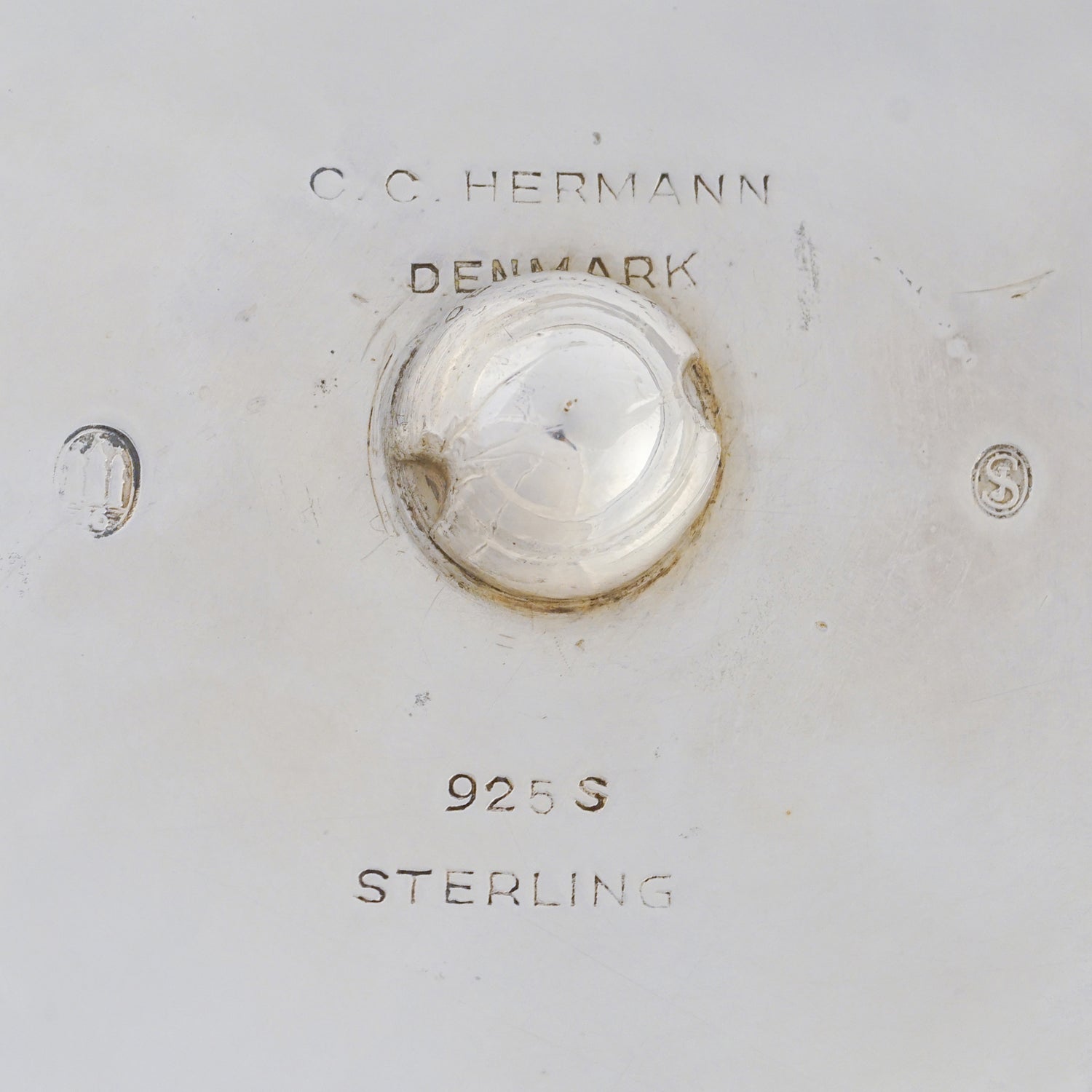 C. C. Hermann, Denmark, 925, Sterling, three tower 46 mark and Johannes Siggaard assay mark.  Lid underside inscribed "September 26th 1925-1950, Mary Frances Buffum Gray, Gilson Berryman Gray"