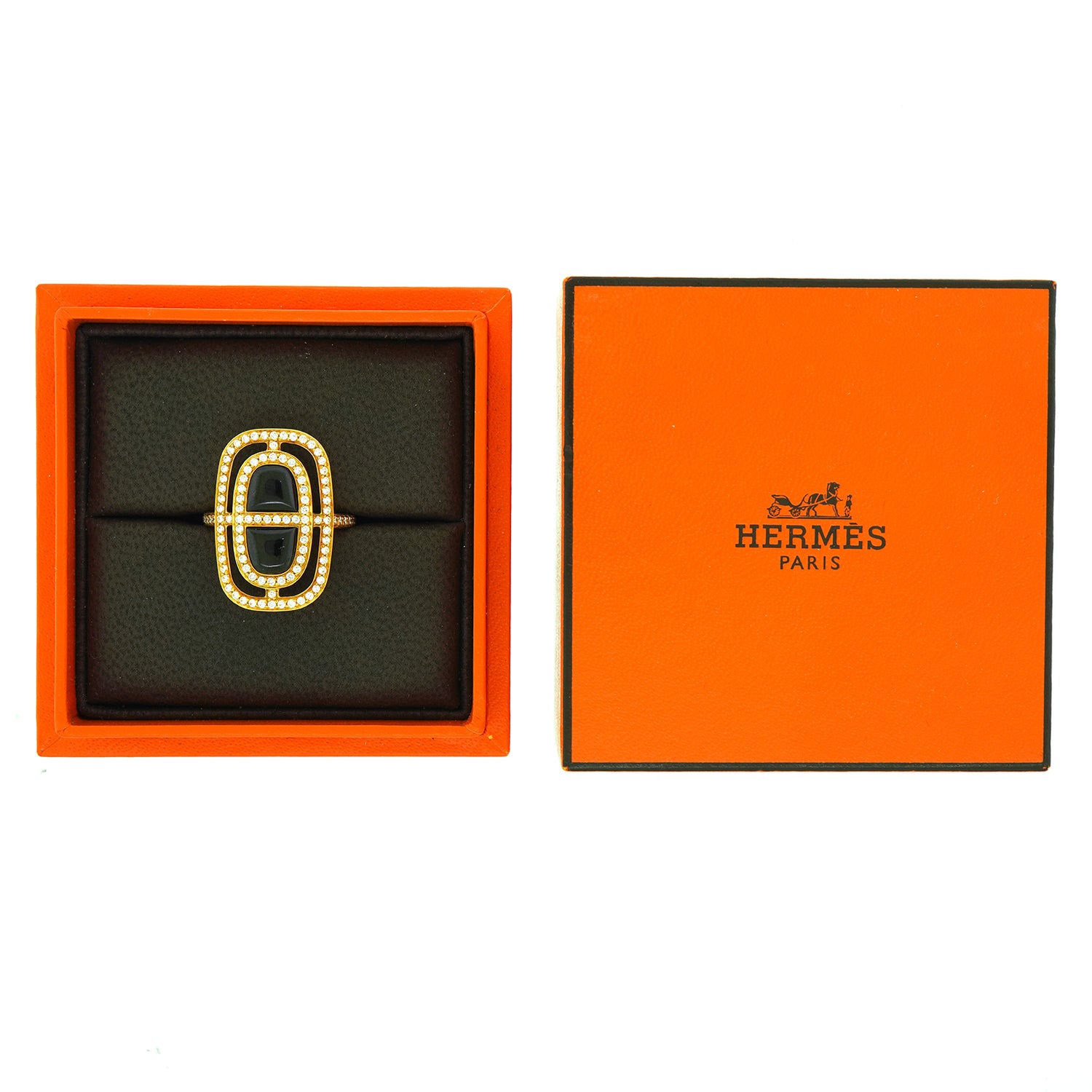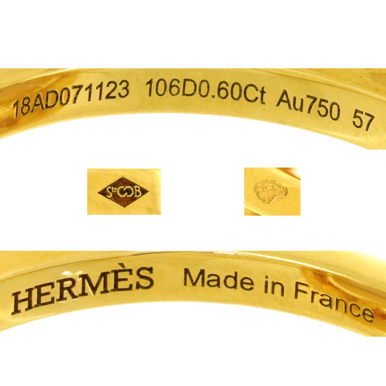 Hallmarks: HERMES, Made in France, registration number, 106DO.60Ct (diamond weight), 57 (ring size), and Au750 for 18k