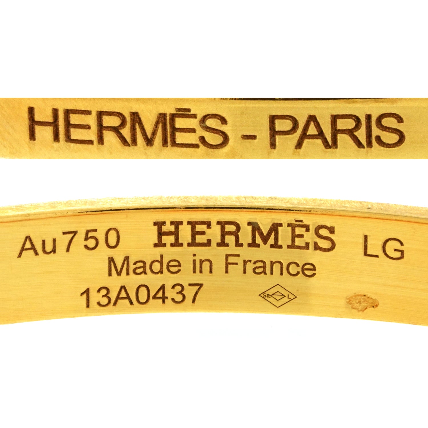 Hallmarks: Au750, HERMES, Made in France, Registration number, goldsmith mark, French eagle head for 18k. Hermes Paris on front