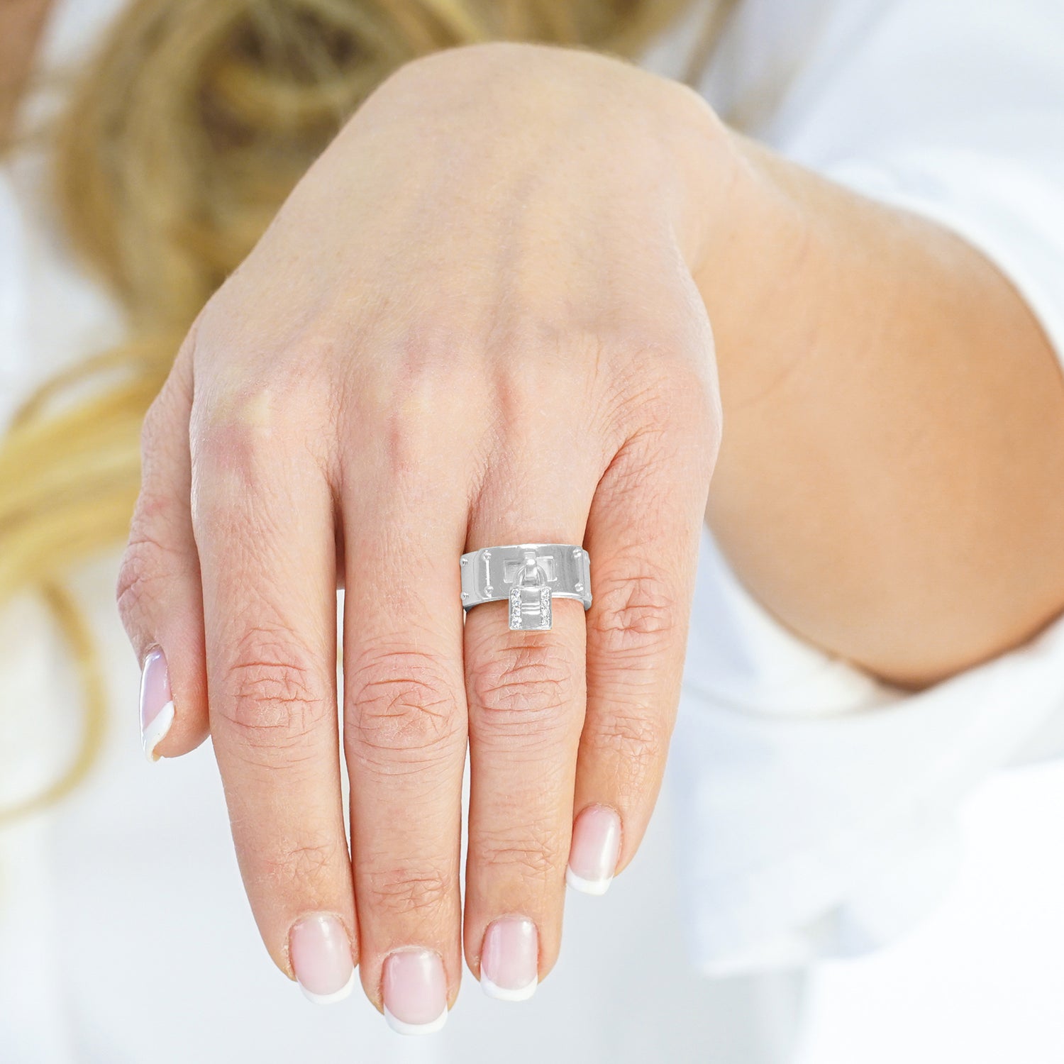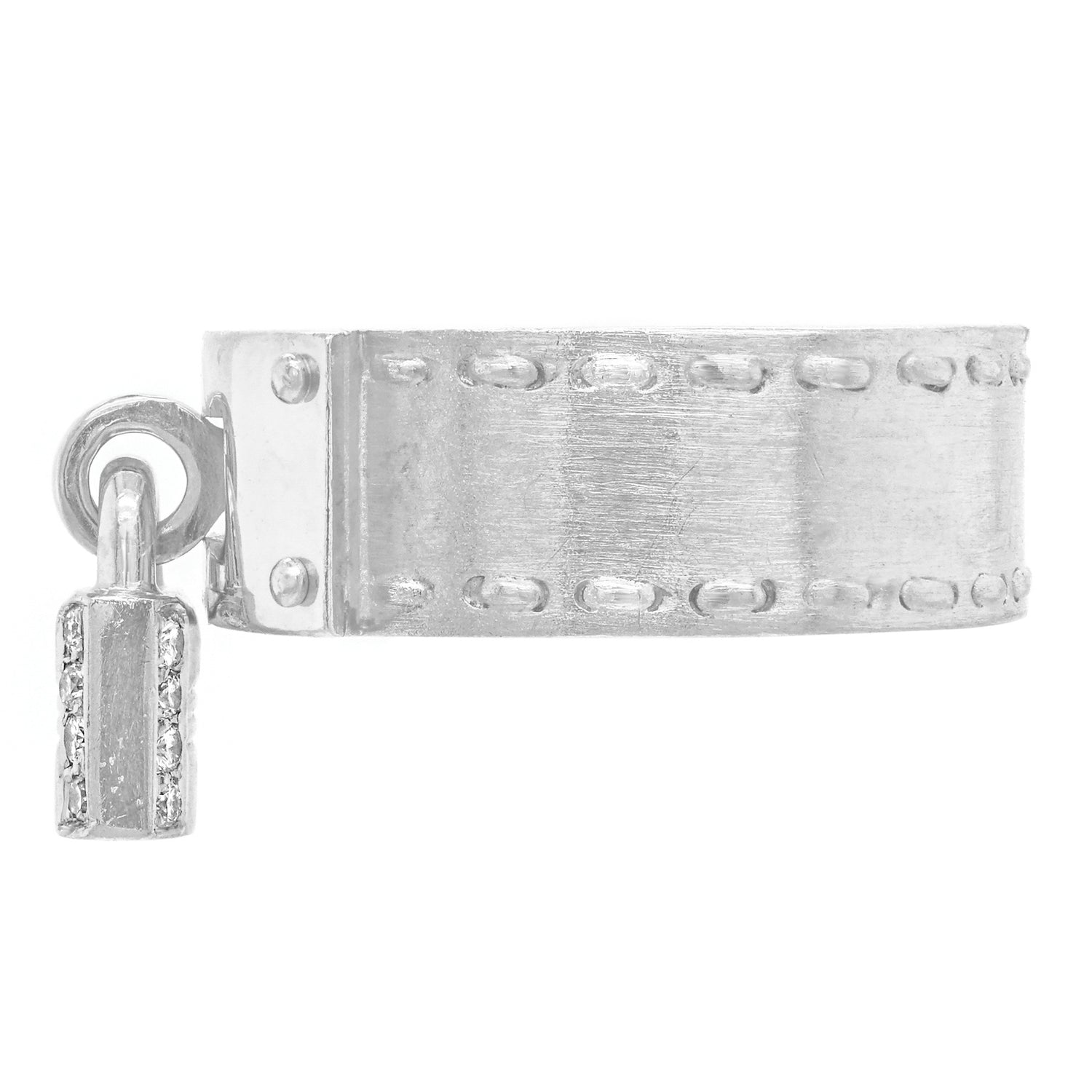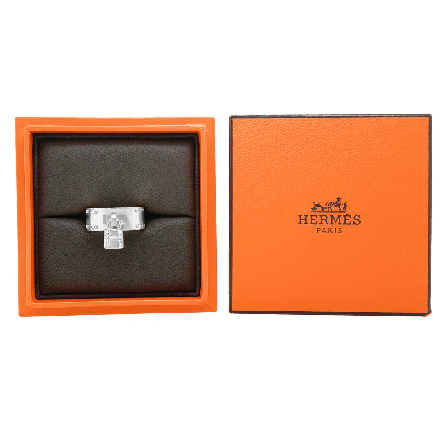 Circa 2000s, 18k, by Hermes, Paris, France. Fabulously French and brilliantly Hermes, this chic 18k ring in their iconic Kelly motif is extra "spiffy" with a diamond-set lock. From the sidewalk to the catwalk, dress it up or down to turn heads everywhere. This ring is well-made and in excellent condition.